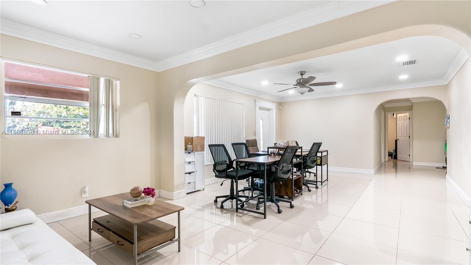 Oversized Wilton Manors corner home looking for a new owner to be able to emphasize the true hidden diamond in the rough, that only persons with a vison can see this through some simple touches. Coming home to your own private get away from it all in this almost 2000 sq ft solid concrete structure with a barrel tiled roof and enough parking to have a very large party. The home boasts arch ways throughout the unit, with 24x24" tile flooring. While the bedrooms host laminate floors in a beige colored wood. The Kitchen has a speckled granite countertop that accentuates the light-colored wood cabinets, still leaving room to add a large island. the home has a main double door entrance that leads into a hallway or use one of the other 2 entrance ways into your new home after you enter the gates.