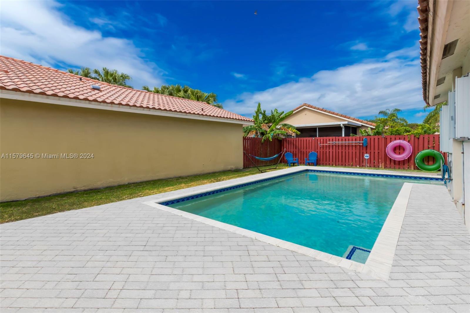 Great opportunity to own your own one-story Single Family home in western Davie on Weston Border in Vista Filare neighborhood. Vaulted ceilings, excellent east to west sunny exposure for sunny mornings & peaceful sunsets in your own private retreat, Fully fenced back yard. Beautiful Gunite 14 x 20 IG pool w/newer pool salt cell 2020. Paver patios surround pool, newer vaulted awning over deck area (2022). Primary bathroom w/double vanity, soaking tub & sep. shower. Two living areas: Family Room, Living Room, Ceramic tile flooring, newer S/S appliances. Remodeled hall bath features Shower and Tub combination. Accordian Hurricane shutters (2019). Newer Rheem HWHeater (2022).2 car garage driveway. Great schools & easy access location. Price reflects some TLC to make this your dream home!