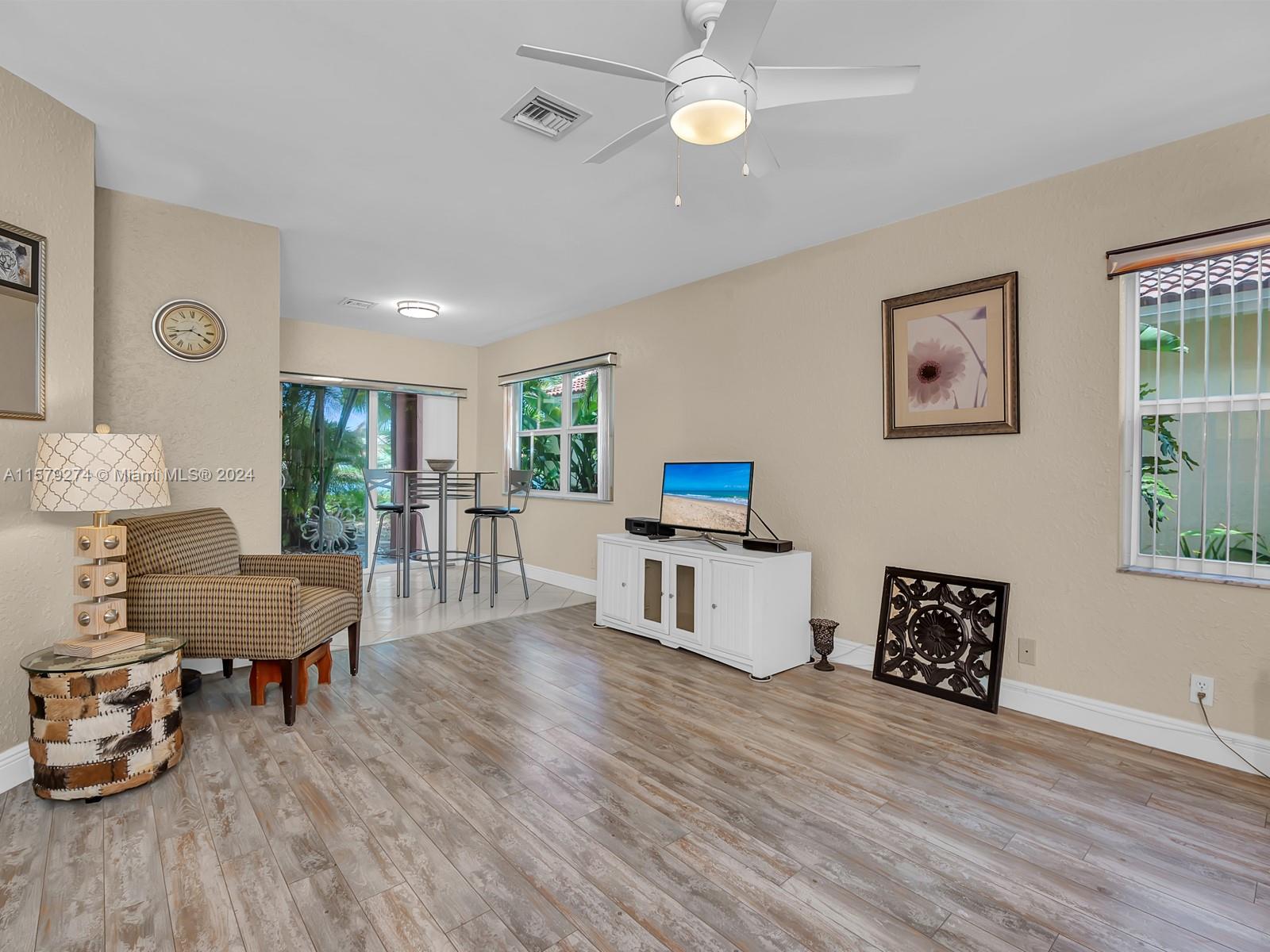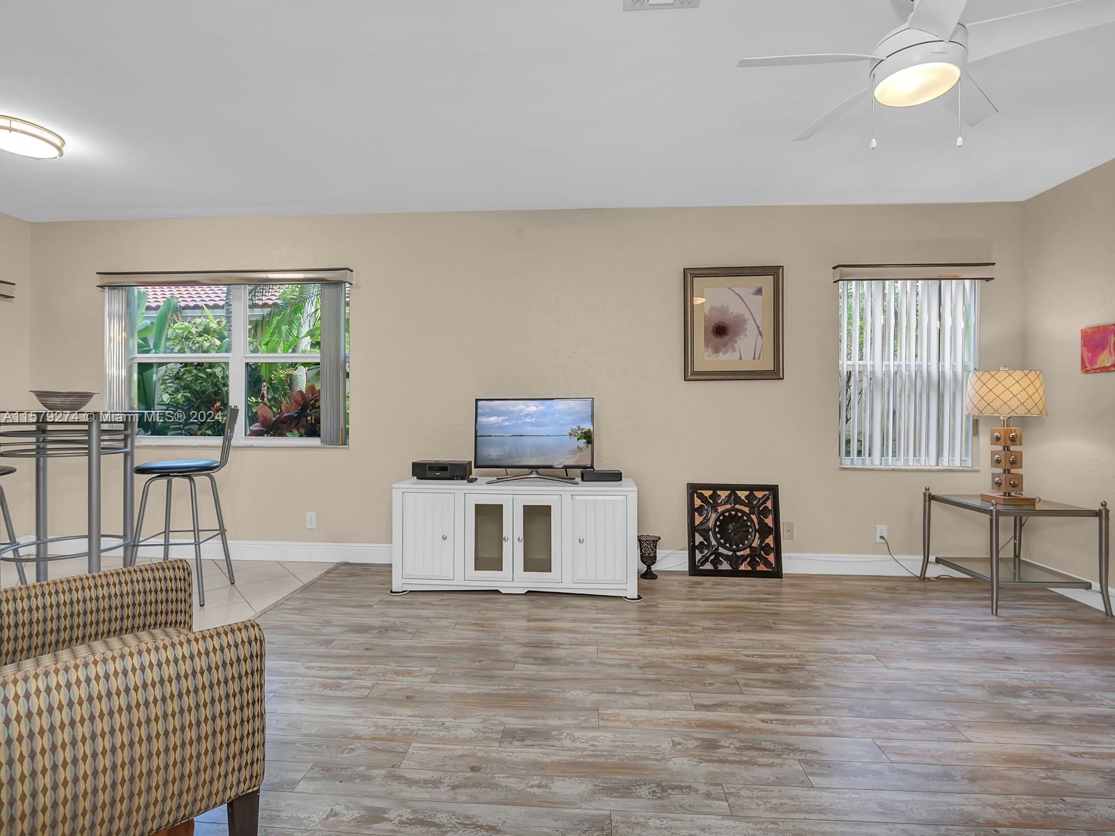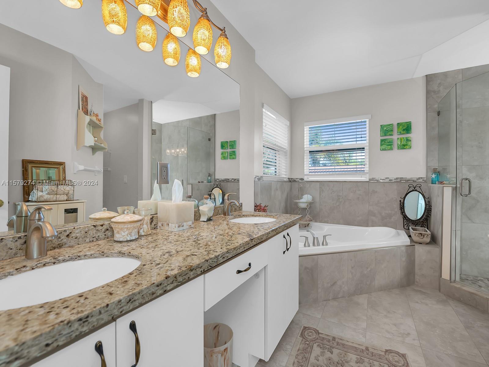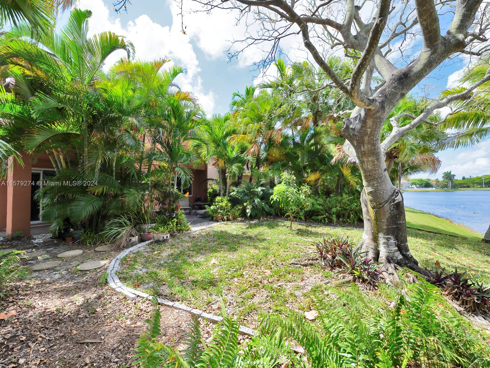 Beautiful landscape yard with a tropical garden in the backyard to enjoy dinner in the evening and with a great water view, impact windows and doors, alarm remodeled primary bathroom, roof and water heater 4 years old, new paint inside and out, no popcorn ceiling, community pool, close to shopping, hospital, highways and more!!