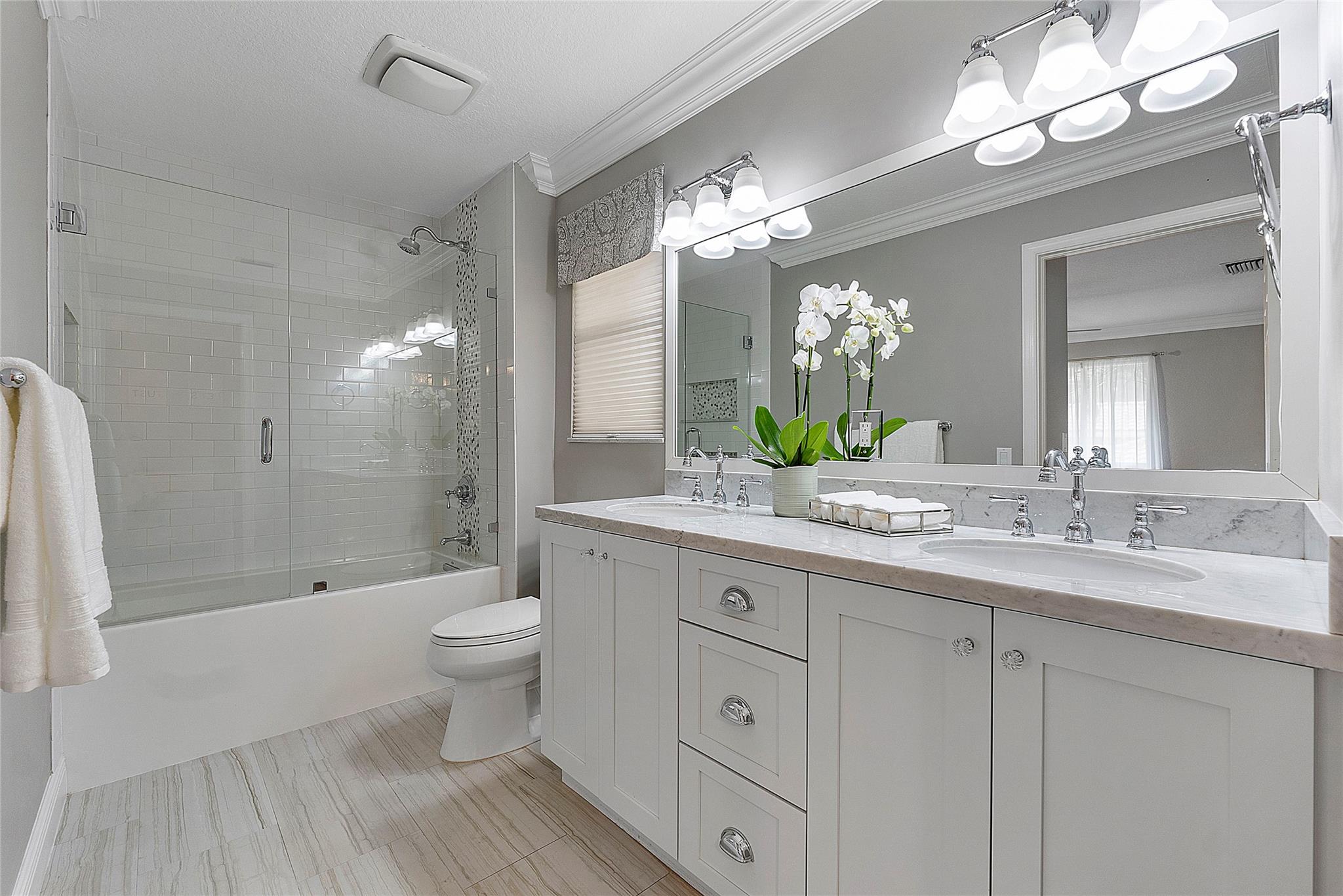 Welcome to The Landings! We have the Trifecta here ! Pristine & Glorious natural light throughout. 5 Bed + 4 Full Baths + the Coveted COURTYARD Triple split floorplan, Just OVER 3000 Sq ft, Gorgeous courtyard & pool views , UPGRADES include: NEARLY $100,000 IN RECENT UPGRADES INCLUDING: NEW ROOF 2023, NEW AC 2023, 2 NEW Electrical Panels 2023 New Pool heater 2022 ++. Beautiful Custom Kitchen, Spa-Like Primary Suite doors raised to 8 ft, All Baths updated, Consistent tile runs through the main house 1st floor & guest house. Baseboards & crown moldings upgraded throughout. Custom stair & balcony rails. Laminate flooring 2nd floor & SO much more. The Landings is A premier custom home communities OF 258 homes, Fabulous Private Park 2 Tennis/PICKLEBALL courts, Basketball, playground, picnic ++