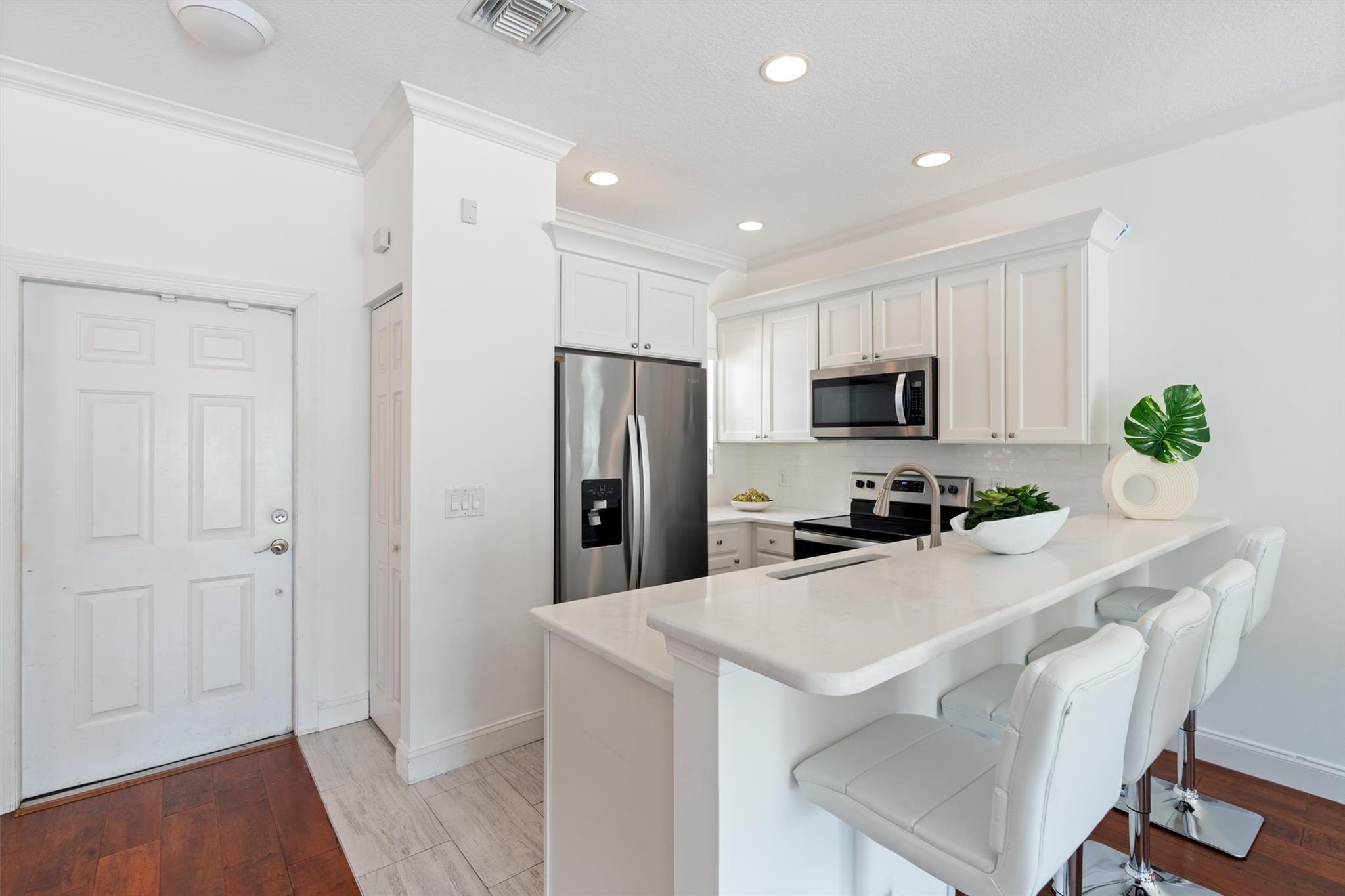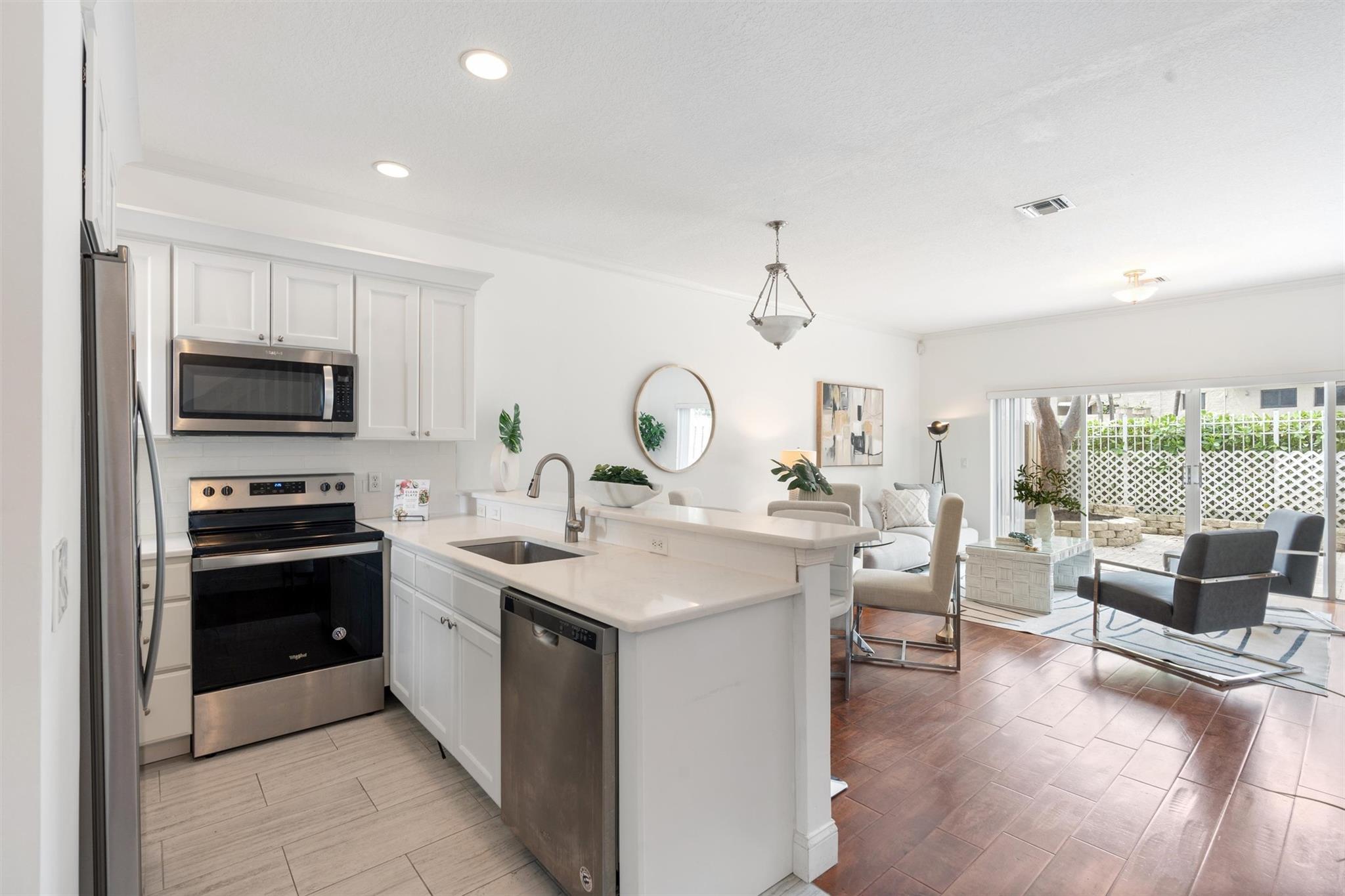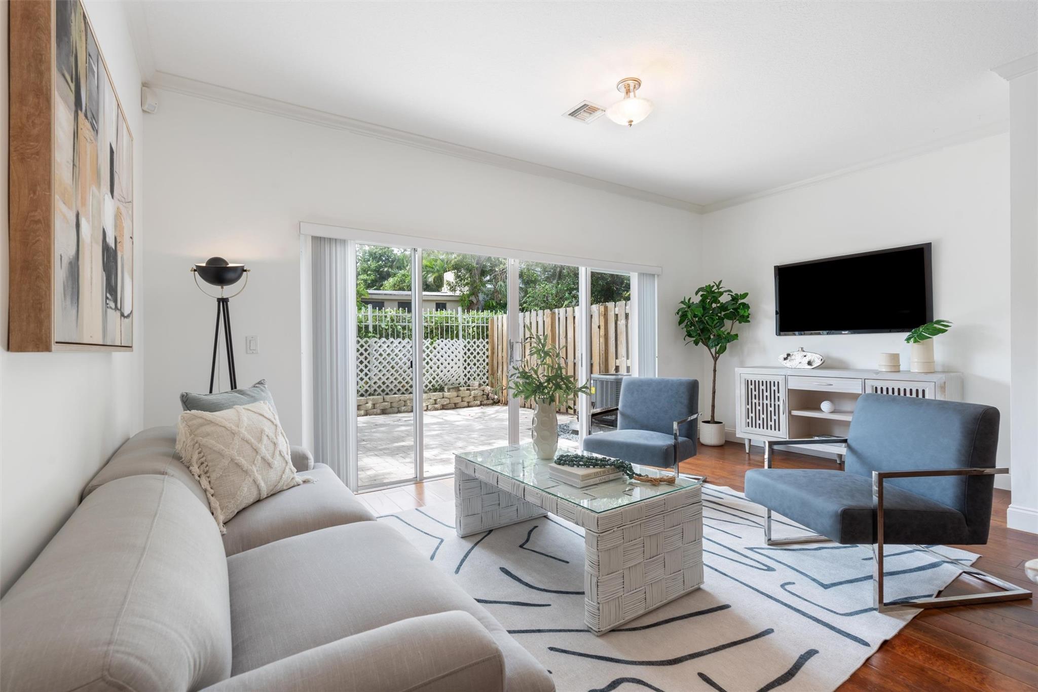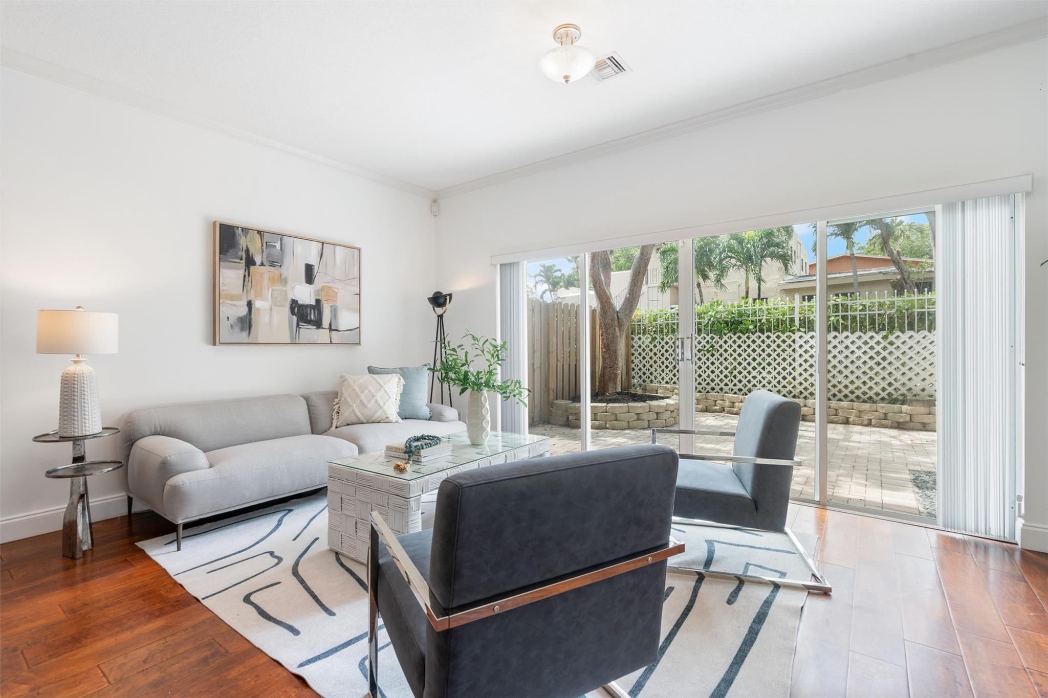New & Improved and newly priced! Best deal in Victoria Park! This gated townhome boasts an open concept kitchen with quartz countertops, a breakfast bar, SS appliances, and custom cabinetry. The main living/dining combo space boasts beautiful Brazilian Cherry hardwood floors throughout and a convenient half bath downstairs. Upstairs, you'll find two master suites with vaulted ceilings and private bathrooms . Washer & dryer are located upstairs for added convenience. Step outside to the great outdoor brick-pavered patio, perfect for BBQs and entertaining. You'll have 2 parking spaces right in front of the unit. Live in East Victoria Park, close to Downtown Las Olas Blvd, The Galleria Mall, popular Fort Lauderdale Beach, and more! Don't miss out on this fantastic opportunity!