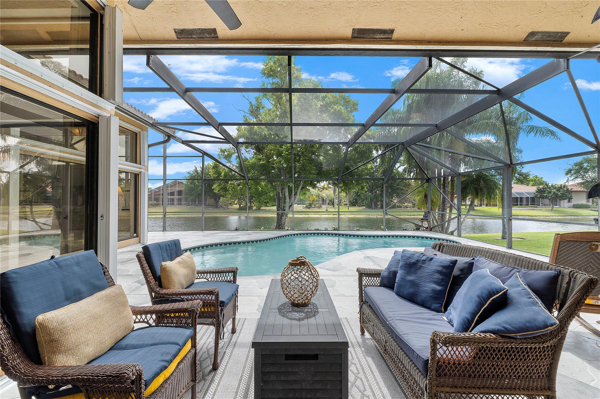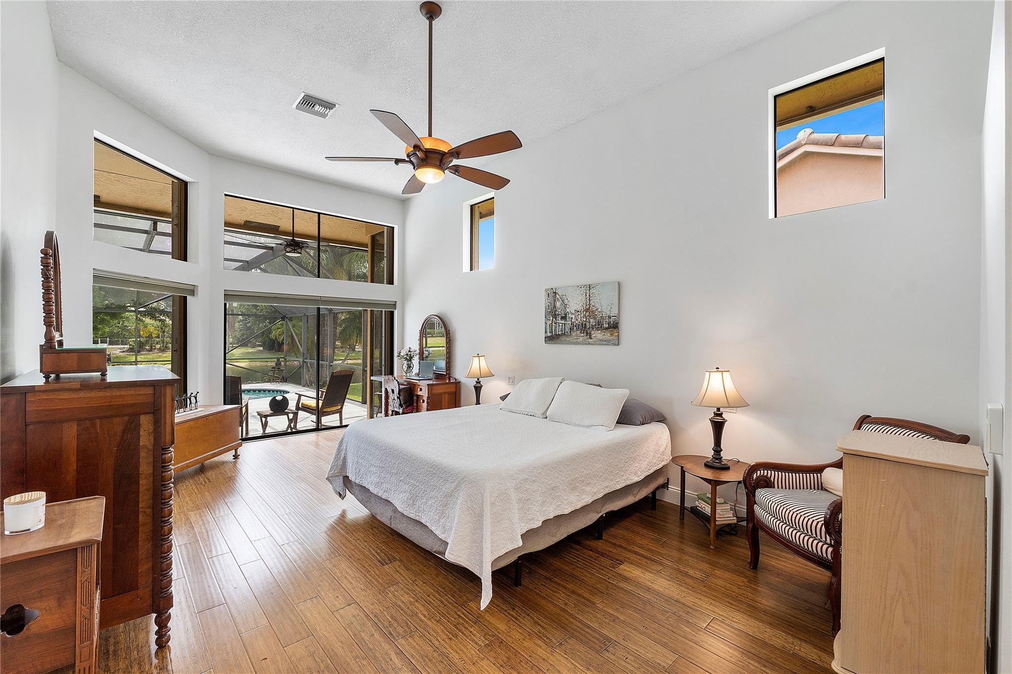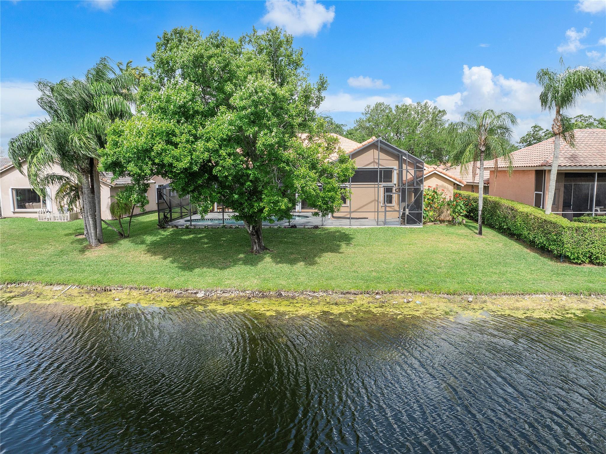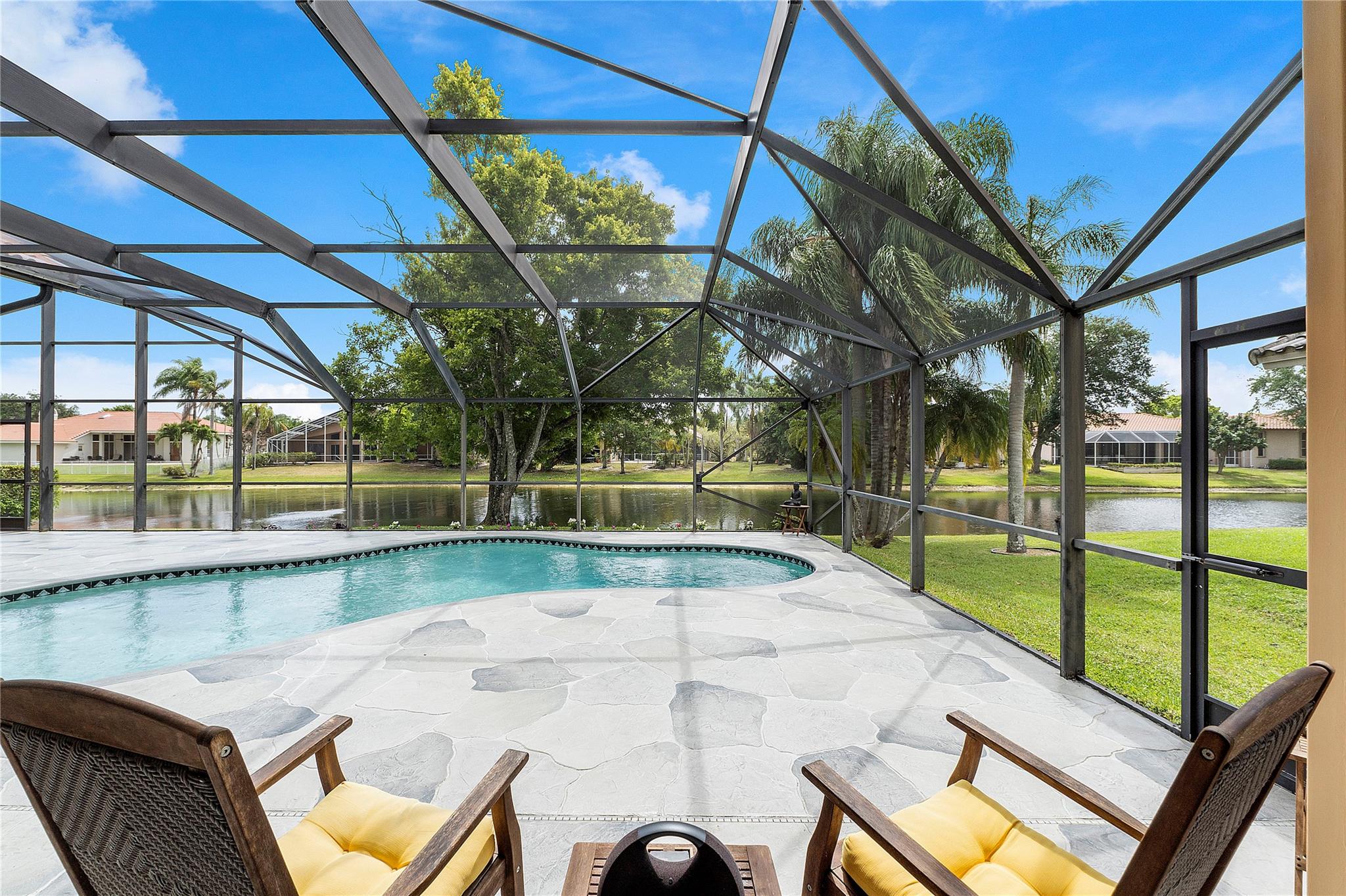 True pride of ownership! Well-maintained, bright, & spacious Brookside Gem! 4-BR, 3-BA, 2-CG, wide-water, screened-pool home w/extended lanai offers an open floor plan w/18 x 18" tile in the living areas & bamboo wood flrs the BRs. Feat: triple-split flr plan, paver DW, accord shut, updated kitch w/built-in wine cooler, SS Appl, Granite count, wood cabinets, & captivating water views from every angle. Updated BAs exude contemporary design. 2024 WH, 2007 S-Tile Roof, no popcorn ceil, 2024 A/C in Primary wing. An abundance of natural light, a large, screened, stamped concrete patio w/a spacious overhang beckons you to savor the breathtaking waterfront & pool views, rain or shine. This home offers the perfect balance of modern luxury & serene outdoor living. A+ Schools!