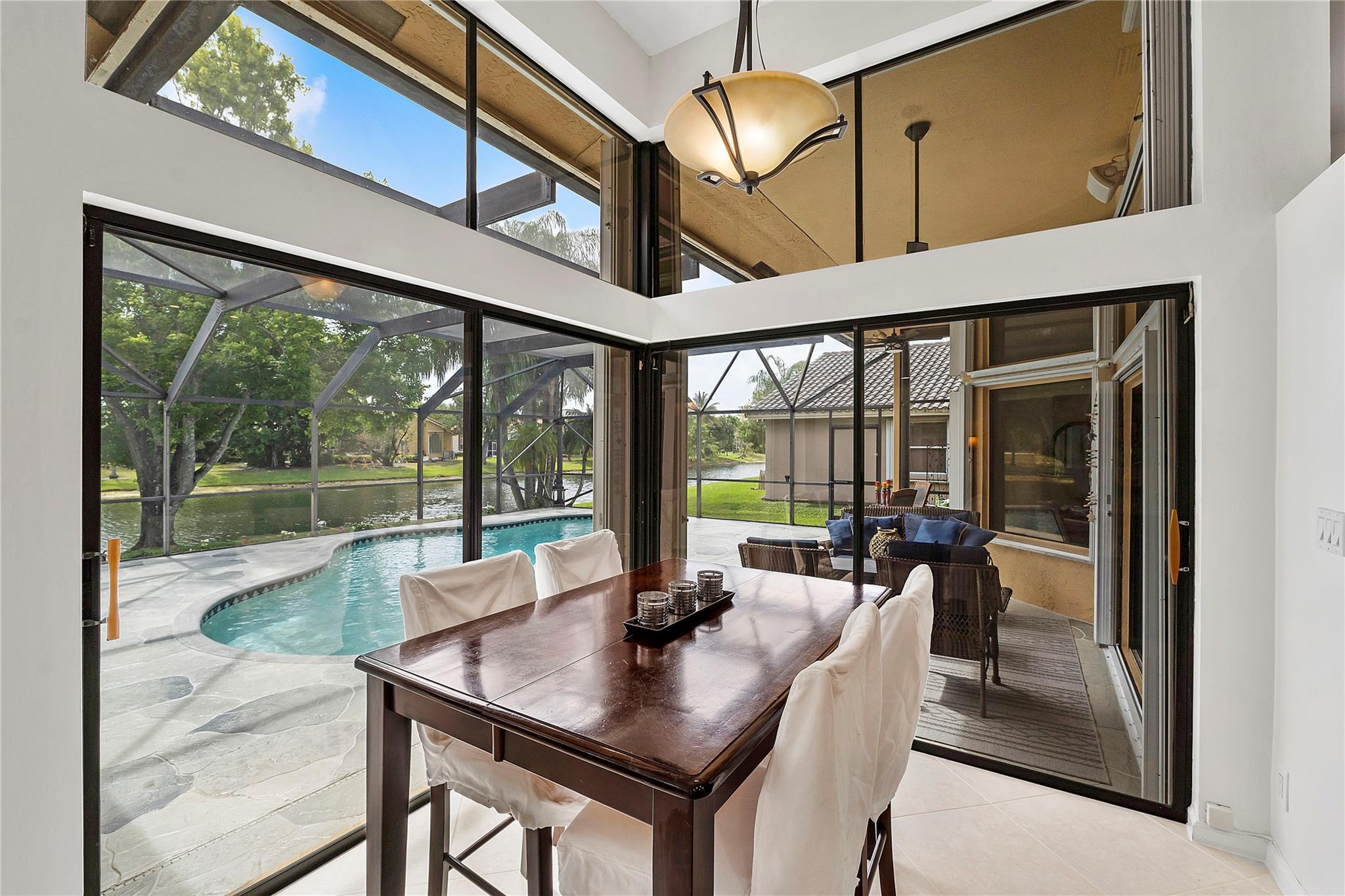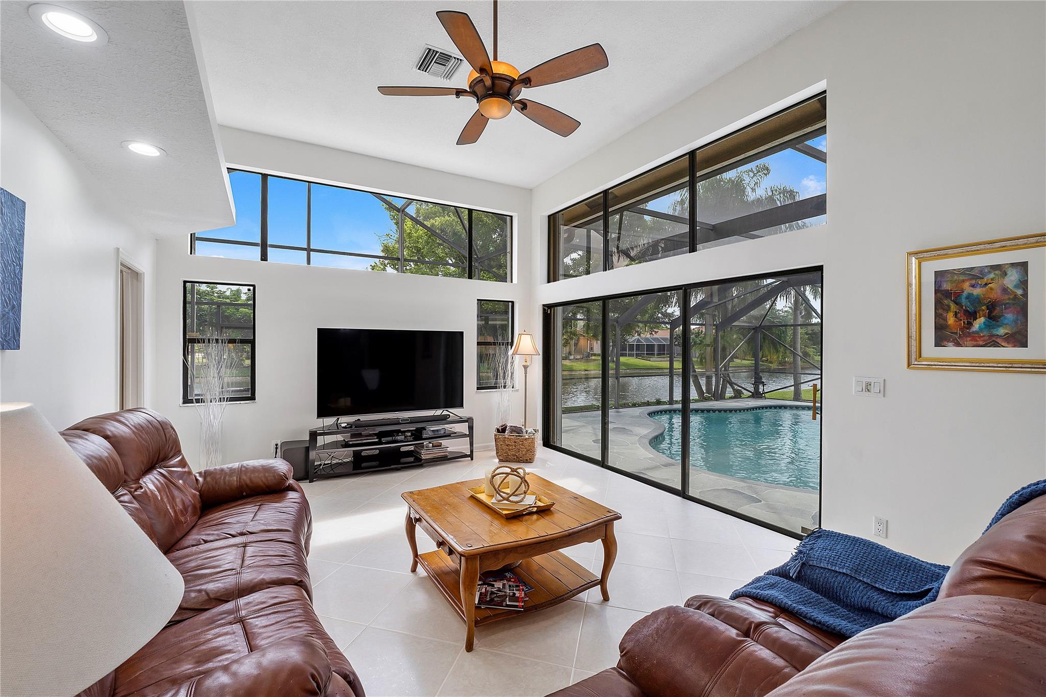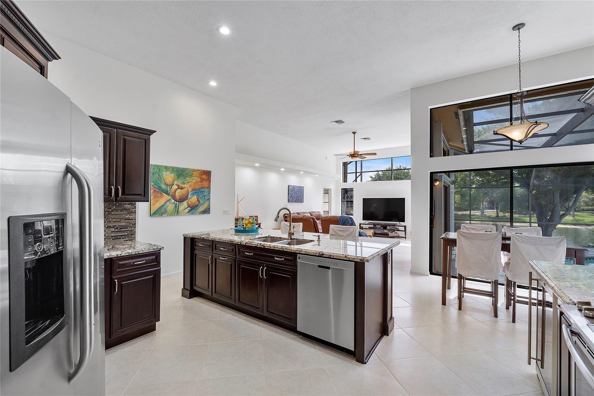 True pride of ownership! Well-maintained, bright, & spacious Brookside Gem! 4-BR, 3-BA, 2-CG, wide-water, screened-pool home w/extended lanai offers an open floor plan w/18 x 18" tile in the living areas & bamboo wood flrs the BRs. Feat: triple-split flr plan, paver DW, accord shut, updated kitch w/built-in wine cooler, SS Appl, Granite count, wood cabinets, & captivating water views from every angle. Updated BAs exude contemporary design. 2024 WH, 2007 S-Tile Roof, no popcorn ceil, 2024 A/C in Primary wing. An abundance of natural light, a large, screened, stamped concrete patio w/a spacious overhang beckons you to savor the breathtaking waterfront & pool views, rain or shine. This home offers the perfect balance of modern luxury & serene outdoor living. A+ Schools!