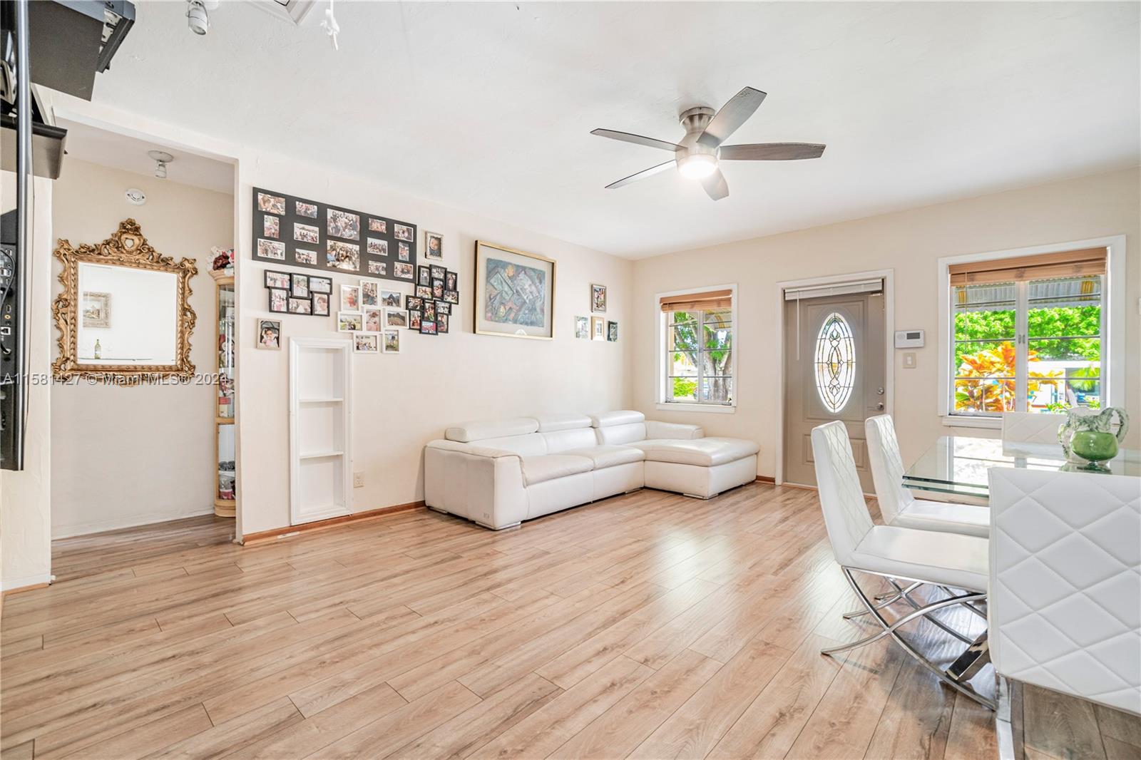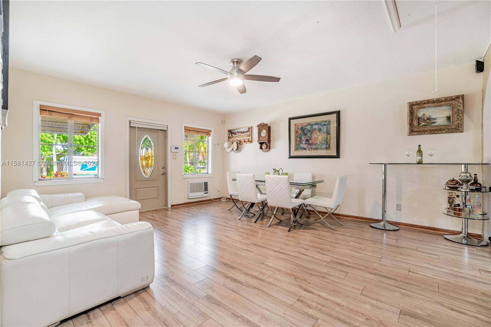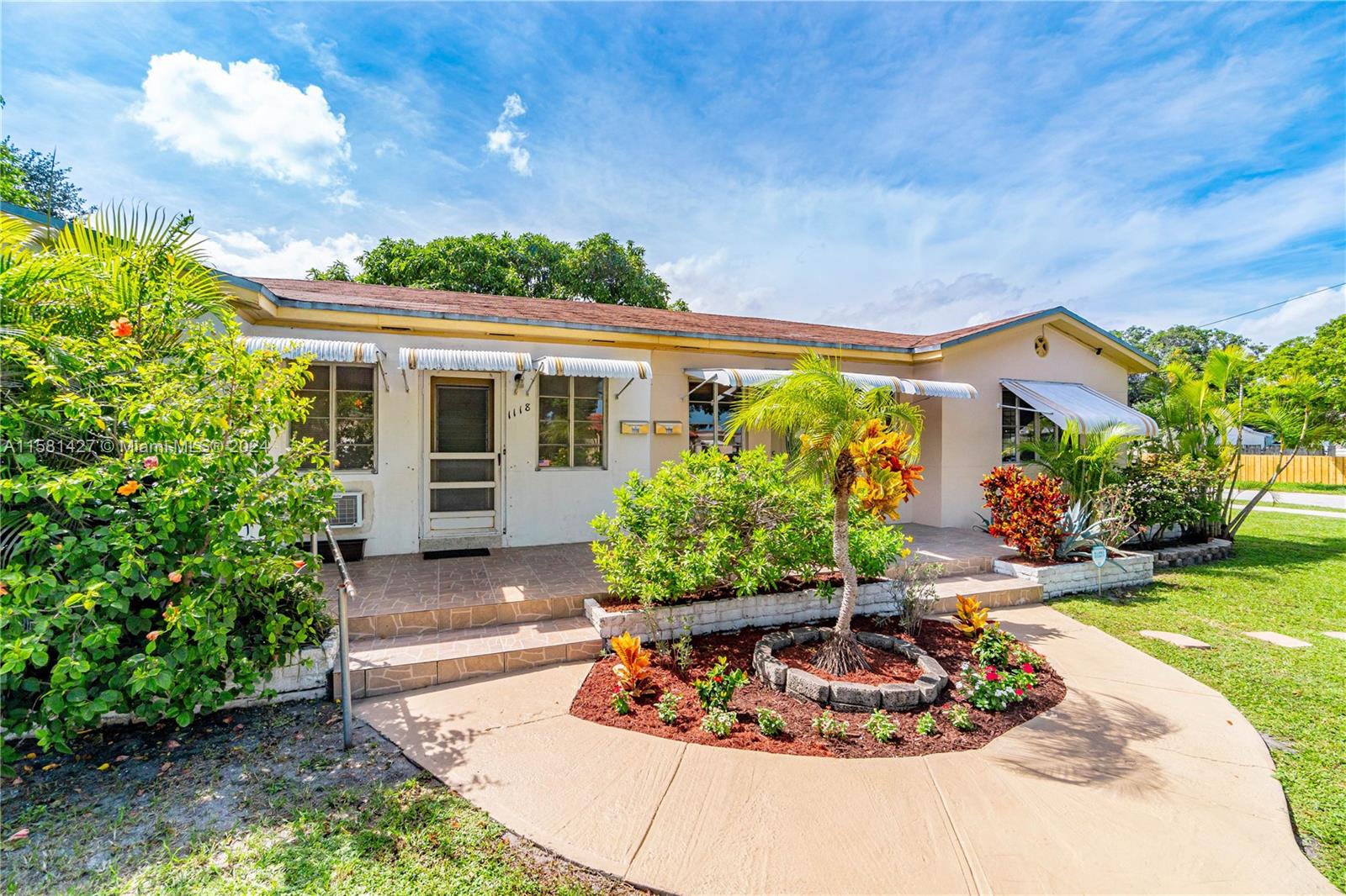 Charming one story half a Duplex featuring 2 BD, 1.5 BA and 960 sq ft of living area sitting in a 3,522 Sq. Ft corner lot and nice size exterior yard. This home has many upgrades including new roof and stone patio in front, fine laminate floors and new vinyl waterproof flooring in kitchen & crown molding in living room, recently painted, spacious and nicely upgraded kitchen with wood cabinets, backsplash and granite counters, new appliances, tankless water heater, upgraded baths with tile floors, new vanities, shower panel in the full bath, LG Washer & Dryer and an outdoor patio. Parking for 2 cars, Water & Sewer are City (no septic). Very well maintained home, it will go fast in a short inventory area with high demand. Great location, close to downtown Hollywood and easy access to I-95.