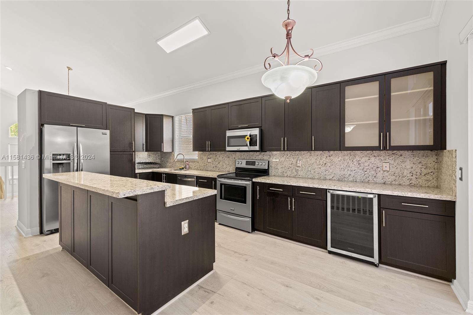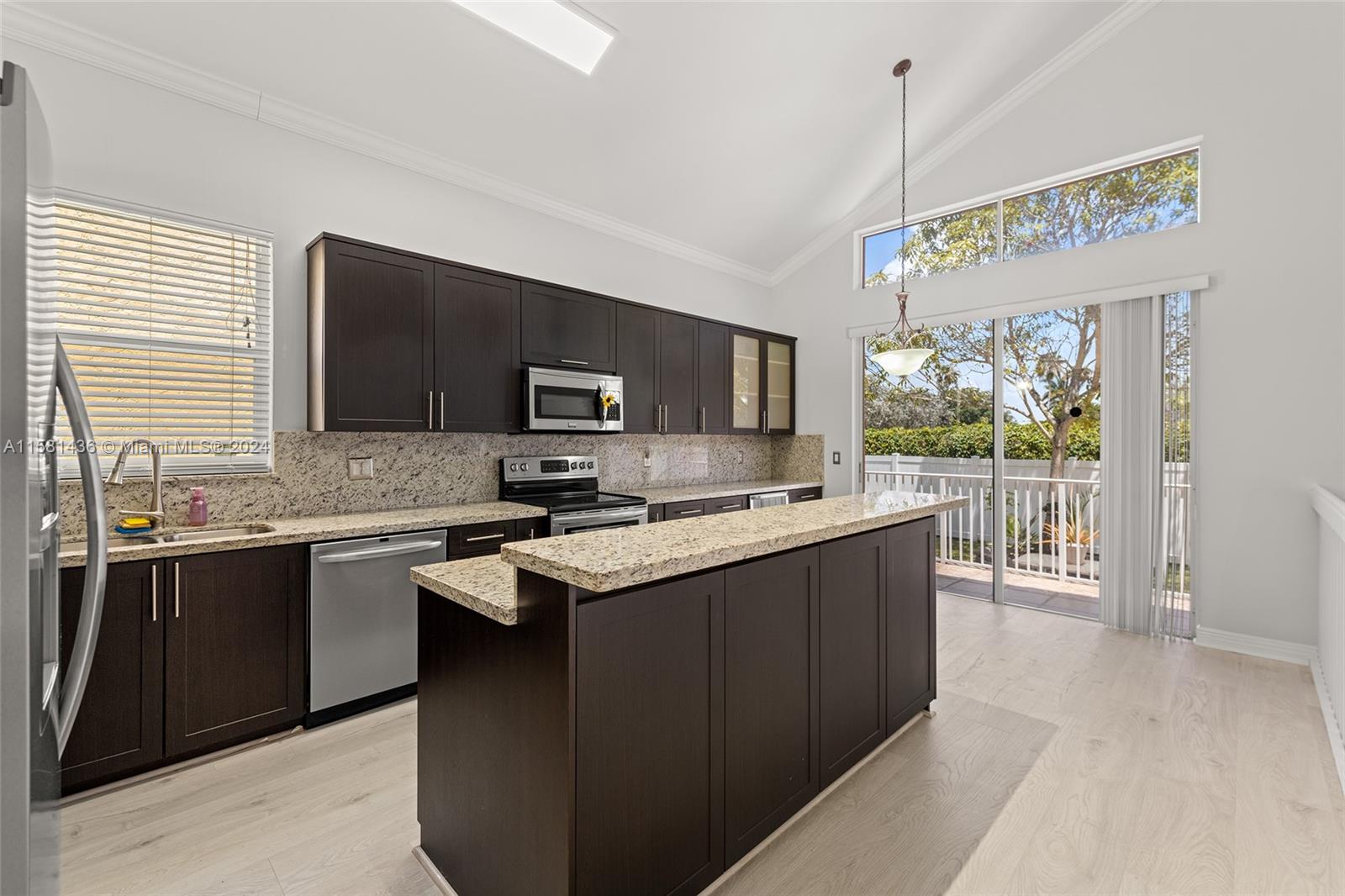 Beautiful, 2 story, 4 bedroom and 3-bathroom home in the Towngate community of Pembroke Pines. Large backyard patio and area with multiple screen doors, gorgeous dining room area with stair entrance, semi-open kitchen area with breakfast area, granite countertops and modern cabinetry, stainless steel appliances, wood flooring, high vaulted ceilings, and great lighting. One bedroom and one bathroom downstairs. Close to highways, shopping centers and parks.
