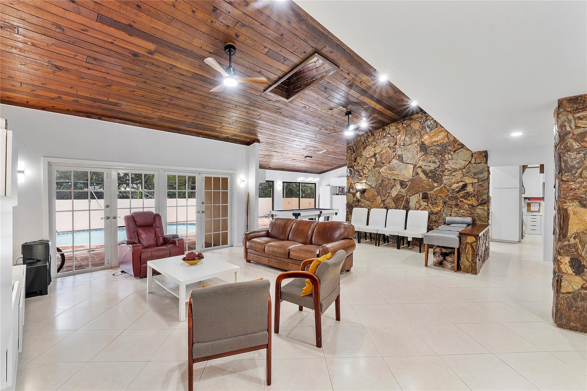 Introducing this exquisite 4 Bed/3 Bath estate nestled in the heart of Plantation Acres, boasting a gorgeous pool with a guest house on over a 19,900 sq ft lot. Meticulously crafted, this residence combines comfort with timeless elegance. The main house features a lavish a master suite with dual closets, private office, a gourmet kitchen complemented by a spacious pantry/laundry area, and a generous living area opening to the in-ground pool with screened enclosure space. Plus, maximize your investment potential with the guest house ideal for family/friends or offering yourself passive income opportunities. An expansive tropical landscape and grassy area enhances privacy and comfort allowing this home provides the perfect setting for entertaining and relaxation.