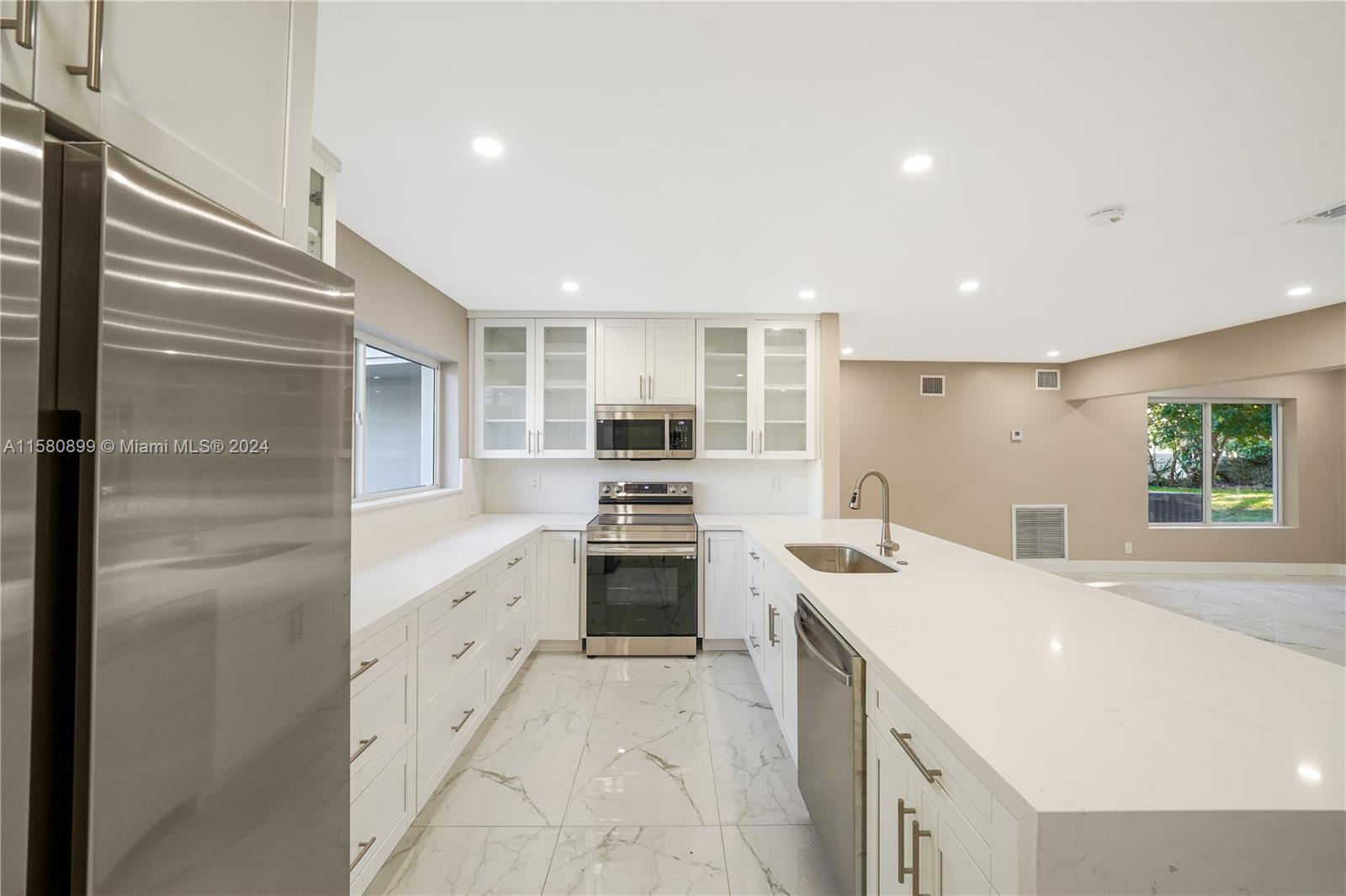 This lovely house was just renovated. LOT IS 18,912 SqFt. House is 2,116 SqFt, has 3 BR, 2Bath, a sizable office/den that may also be used as a fourth bedroom. One step out to the backyard and you will be welcomed by the majestic trees providing shade as well as a large patio, resort-style pool fruit trees, and a shed. New ceramic floors, new 2 A/C, washer & dryer and appliances. NO HOA. ONLY 10 minutes to the beach, dining, shopping, highways, Fort Lauderdale Airport (FLL), and Port Everglades. Step away from preschool and only 5 minutes driving from the Pine school. Huge parking lot. Bring your RV, boats and trailers and enjoy the prefect property for the Florida Lifestyle.