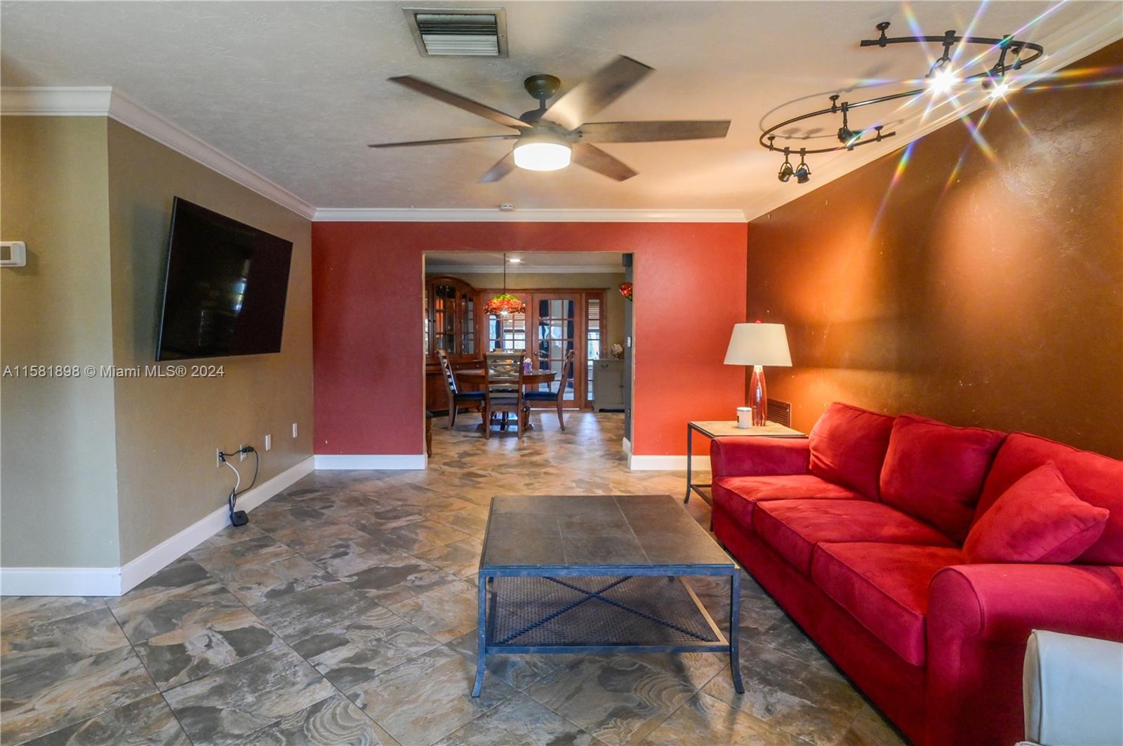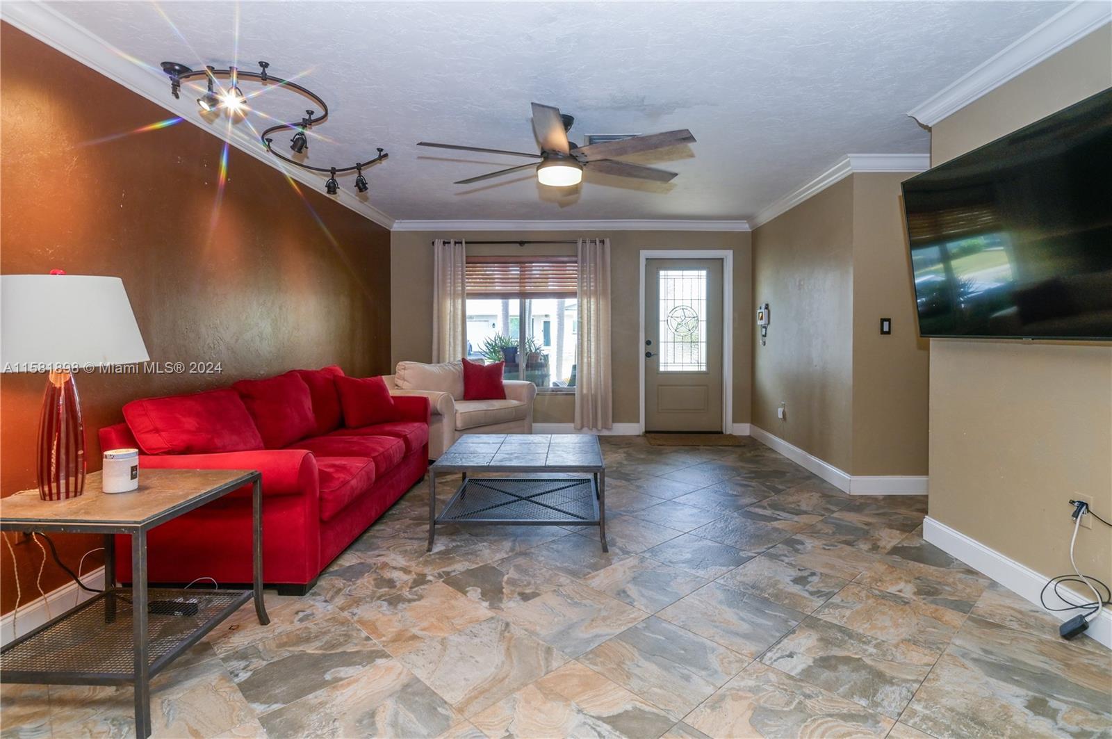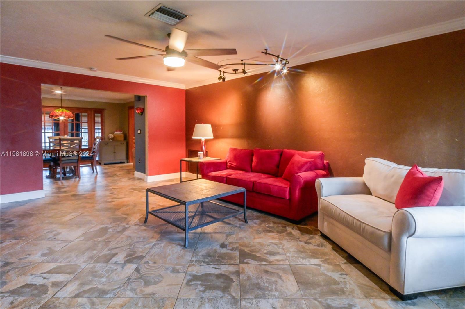 Come See This Beautiful 4 BEDROOMS 2 BATH W/Additional SPACIOUS ENCLOSED BONUS ROOM & Covered Screened In Patio. Relax Overlooking Your Gorgeous Pool & Fenced In Private Back Yard. Large Yard Offers Plenty Of Space For Outdoor Entertaining. Beautiful Porcelain Tile Flooring From Spain In Your Main Living Areas. Kitchen Has Custom Millwork, Custom Cabinetry W/Granite Countertops & Stainless Steel Appliances. Large Kitchen Island Perfect For Entertaining!!! Spacious Dinning room with Plenty Of Room For All Your Family Gatherings. IMPACT WINDOWS & DOORS. Renovated Baths. Crown Molding & Baseboards. Flat Roof Replaced (2022). ENJOY THE SOUTH FLORIDA INDOOR/OUTDOOR LIFESTYLE. Home Centrally Located & Just Minutes To Calvary Chapel, Schools, Roadways, Stores & Restaurants. A MUST SEE!!
