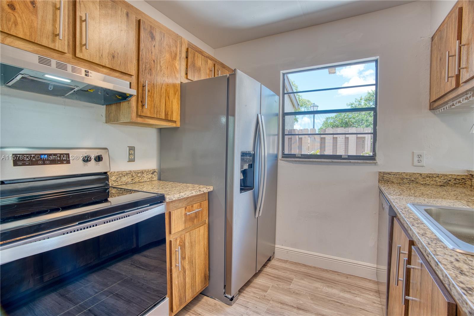 The Escape at Arrowhead is a wonderful community in Davie situated next to The Town of Davie Golf Course. This stunning remodeled 2/2 vaulted ceiling lake view and pond front unit located in a cul-de-sac. New roof, new air conditioner with thermostat, 2021 hot water heater, new appliances with warranty. Assigned parking space with plenty of guest parking. Resort-style amenities including heated pool, kiddie pool, playground, barbecue grill, tennis and basket ball court, pickle ball, library, office with 2 maintenance guys on site. Plenty of reserves. Great Investor opportunity. No seasoning on rentals.