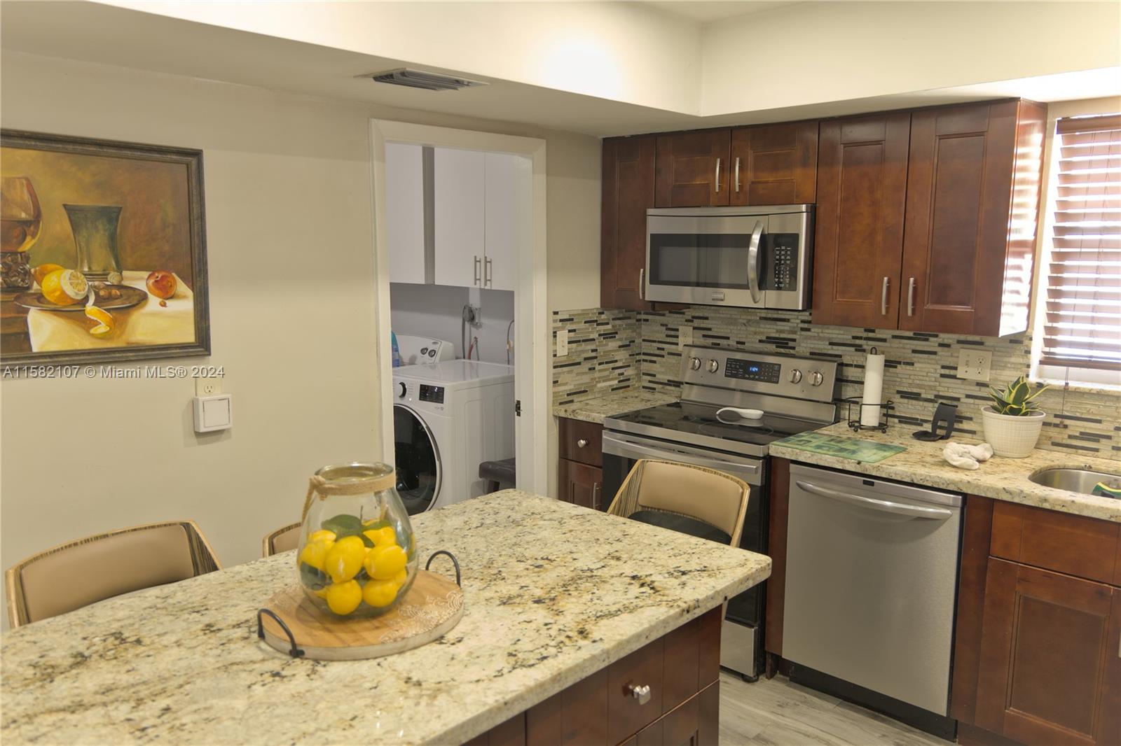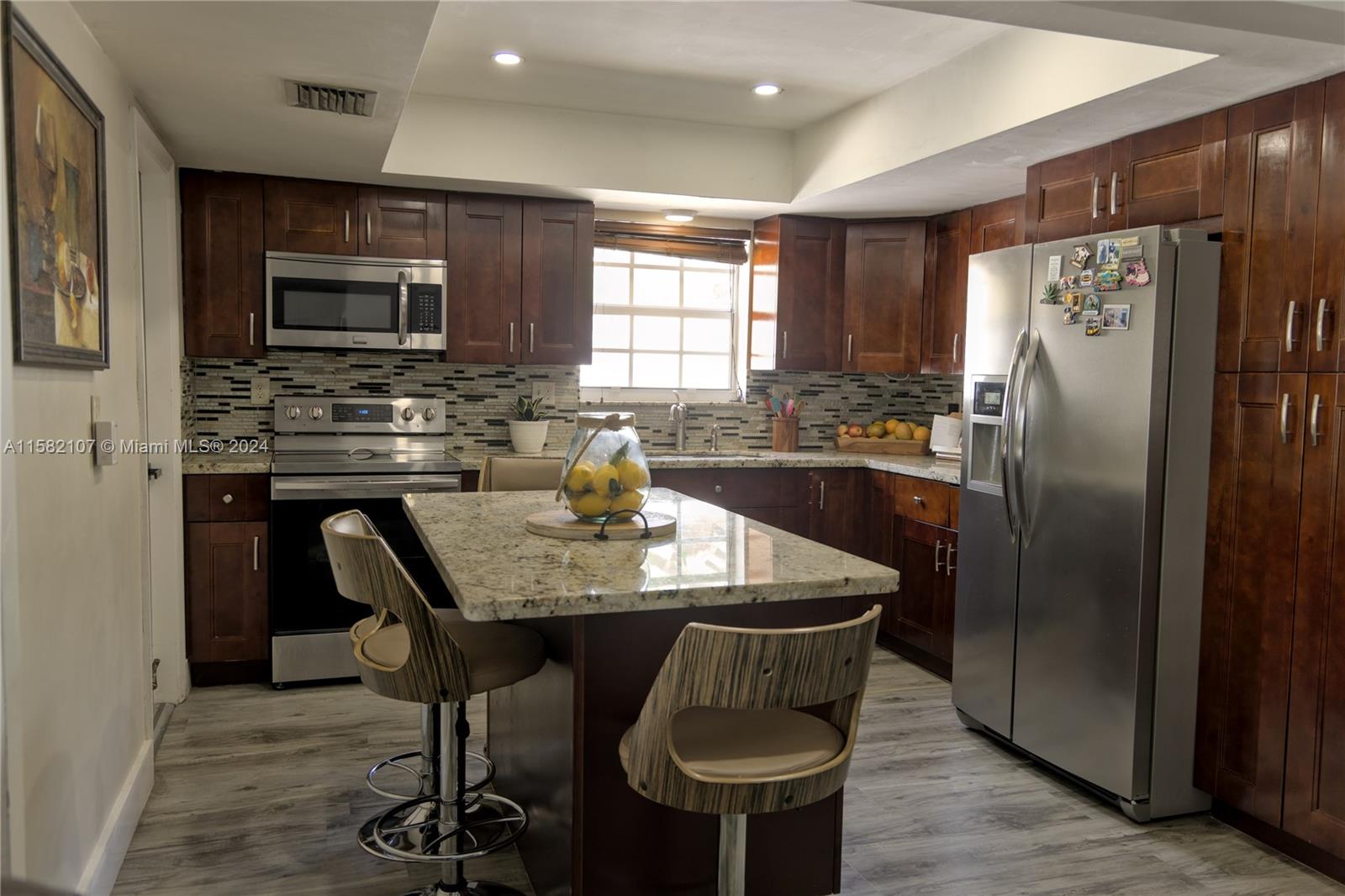 "Pasadena Lakes South" Pembroke Pines, 3 bedroom, 2.5 bath, guest room, working area, laundry, newly resurfaced pool, A/C is less than 6 years old. NO HOA! Newly renovated vinyl floors, open concept, beautiful kitchen with island, new main bathroom, very modern, accordion shutters, impact french door and french door to patio with beautiful roof covered terrace next to pool. Located minutes from major roads, schools, parks, restaurants, malls, casinos and beaches. Easy to see! Garage has been converted to work area, but can be easily converted back to garage.