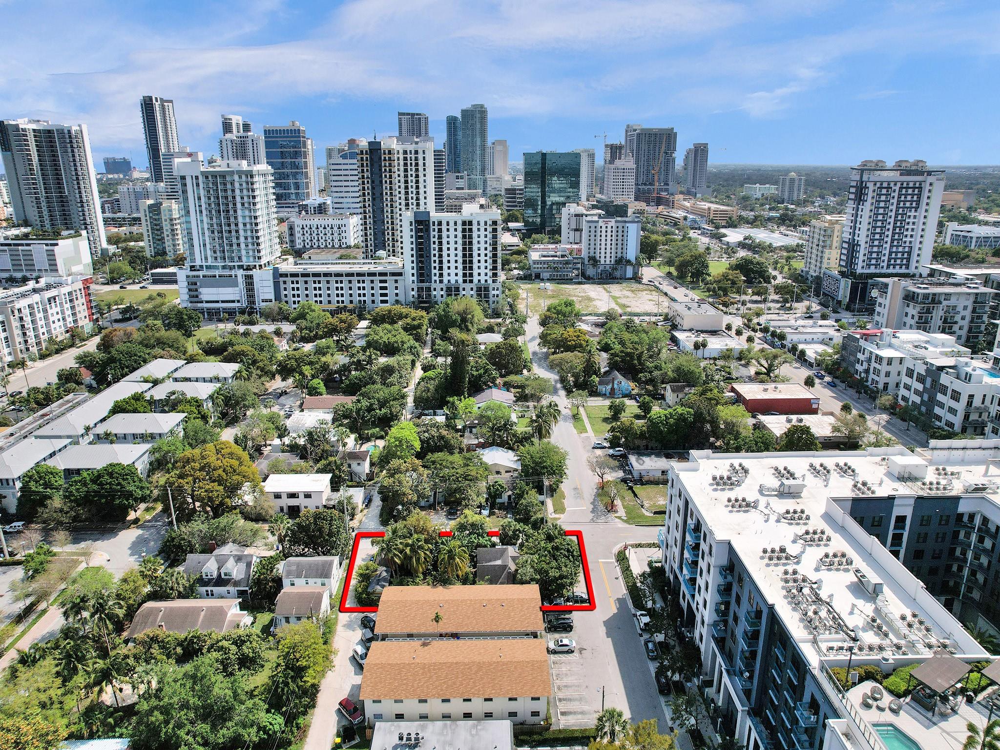 Nestled in the heart of Flagler Village, this charming single-family home seamlessly blends residential comfort with commercial opportunities. With two bedrooms, a bathroom, and exposed wood beam ceilings, this property exudes character, “Old Florida” charm, and warmth. Previously utilized for a business, it offers a versatile space ideal for a home office or boutique enterprise. Most windows and doors have hurricane-impact glass. Step outside to a serene private yard with mature fruit trees. Located near downtown Fort Lauderdale, the Brightline Station, and one block away from the highly anticipated Hines Development in FAT Village – this property presents an enticing opportunity for those seeking a unique blend of urban living and entrepreneurial flair. Surrounded by new developments!