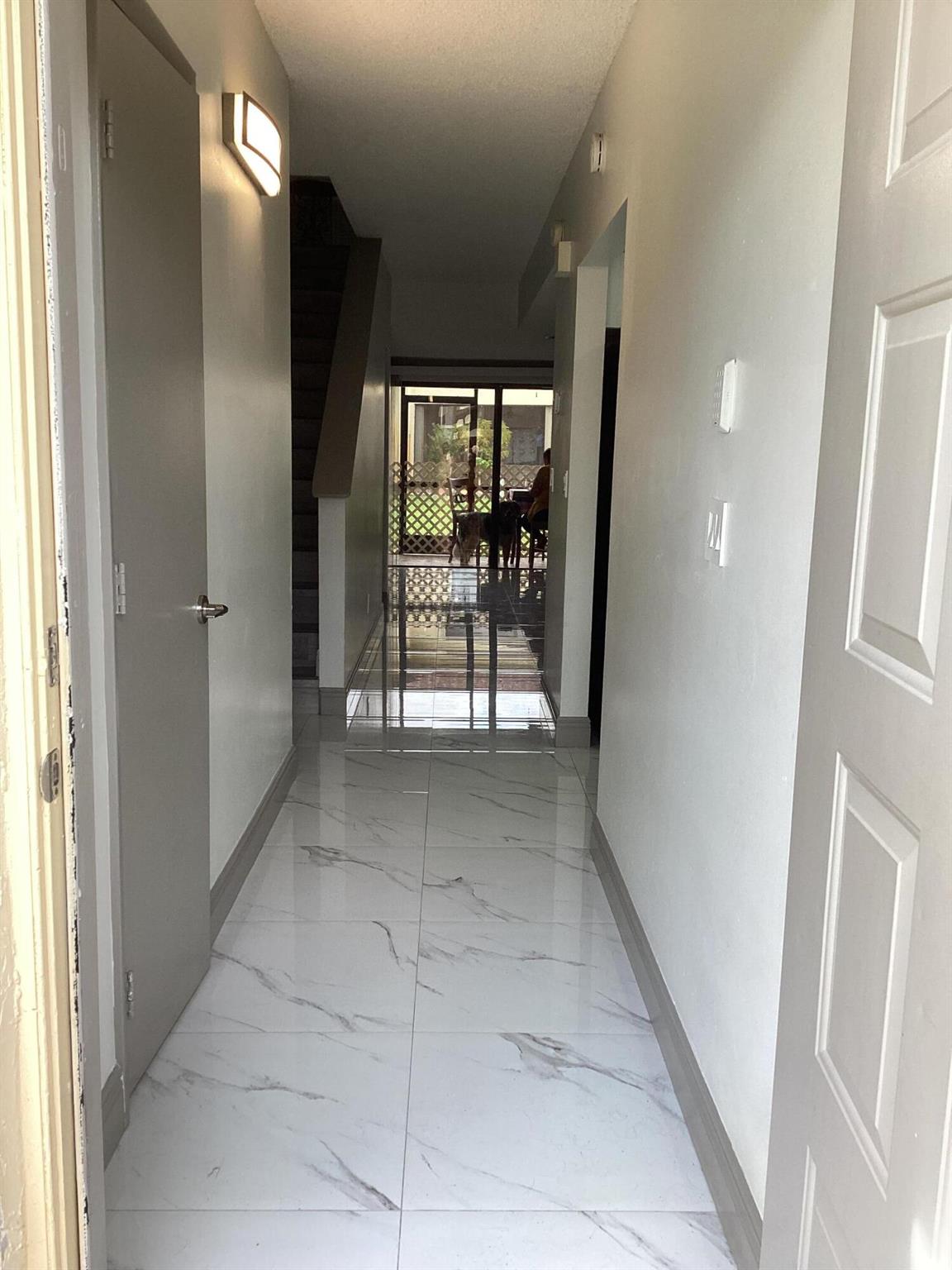 This stunning 3-bedroom, 2.5-bathroom townhouse is an exceptional Sunblest community. Step into an inviting interior boasting new Italian porcelain floors that seamlessly guide you through the main level, it is a beautifully remodeled kitchen. Complete with new stainless-steel appliances, Quartz countertops, and a central island with additional cabinetry, this kitchen is built for convenience and function. A newly updated half bathroom. Additional updates include fresh paint on the first floor, new baseboards, a new A/C motor, and practical accordion shutters for peace of mind. Outside it is private screened patio. As a corner townhome have two dedicated parking spaces in front of the unit, guest parking near the community pool, playground and basketball c. Pets are ok and yes can lease.
