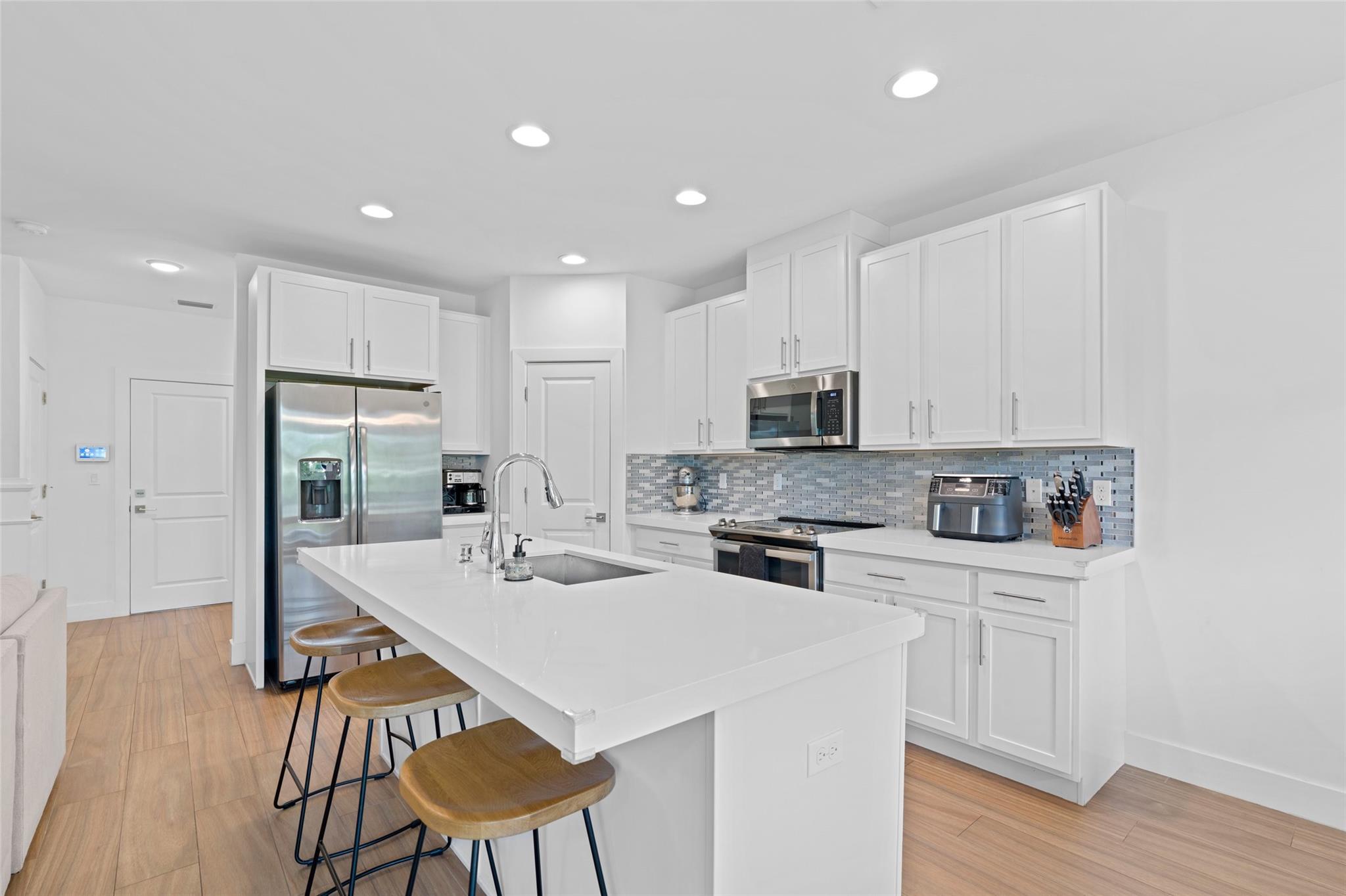 Welcome to luxurious South Florida living. This spacious 3 bedroom, 2.5 bath townhome was built in 2020 to the highest standards of comfort. The oversized master bedroom features a sitting area and private balcony. The spa like en suite bath features dual shower heads and sinks. The main floor showcases a desirable open floor plan with modern appliances and a built in electric fireplace. Grill your favorite meal on your private, sunset facing patio. Nestled in the sought after Aqua Bella dockside community, this gorgeous unit is conveniently located to Fort Lauderdale, Dania Beach, major highways, FLL Airport, Hard Rock Casino, and Dania Pointe Shopping Center. *White chandelier in secondary bedroom does not convey. Garage gym & equipment negotiable.*