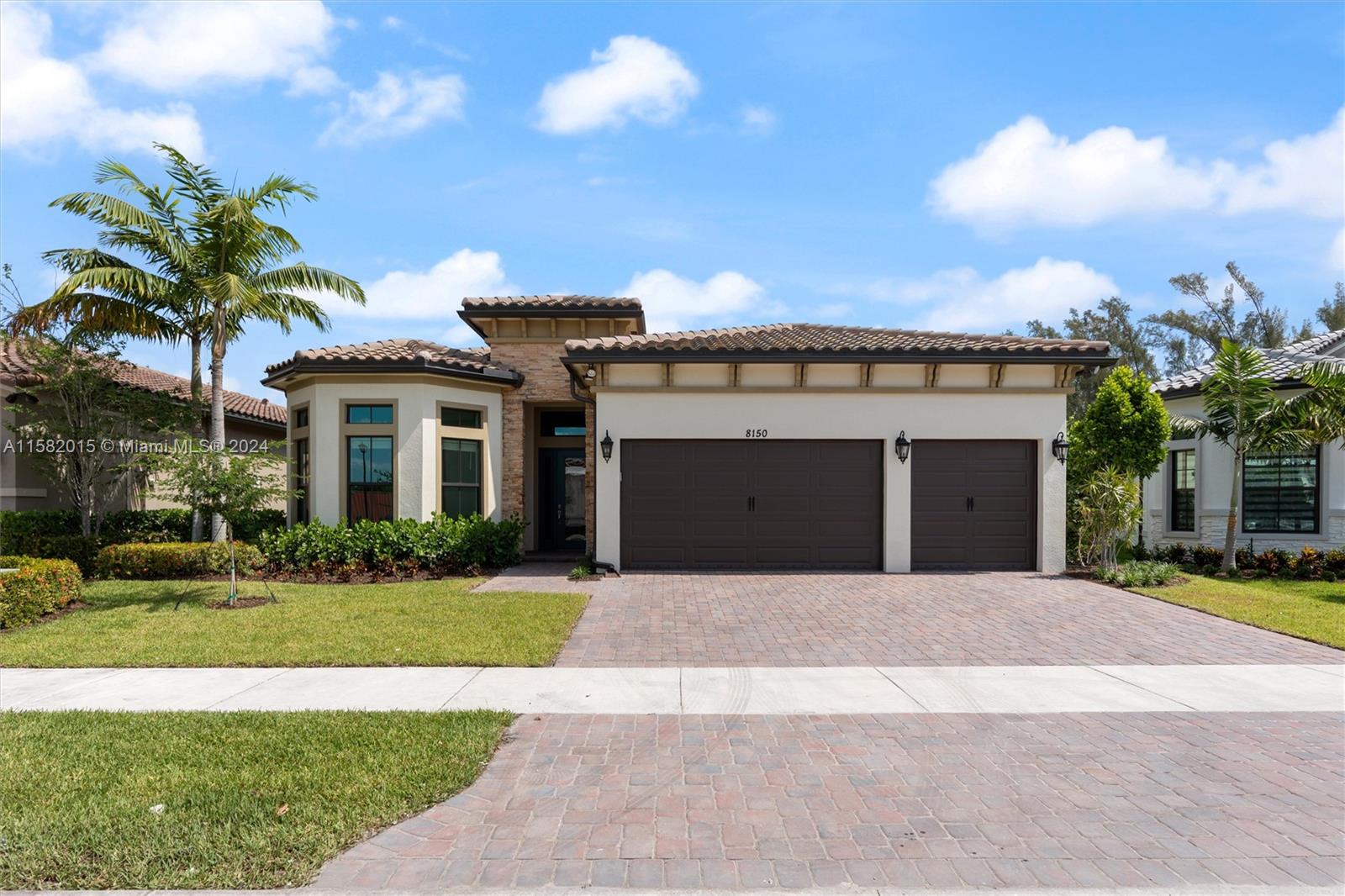 Located on a quiet cul-de-sac in Parkland’s newest and most desired Active Lifestyle (55+) community. This new, never been lived in, 3 bed 3 bath home has an elegant dining room, 3-car garage, and spacious patio with pergola. Beautiful open floor plan with volume ceilings, tall impact windows, and crown molding throughout. Gourmet kitchen features a large island, quartz countertops, under cabinet lighting, large pantry, and new stainless steel appliances. Unique floor plan offering dual master suites each with spacious walk in closets, dual sinks and oversized frameless walk in showers. The gated community features a 24,000 sqft clubhouse with resort style amenities including; pool/hot tubs, pickleball, lawn-bowling, theatre/ballroom, card/billiards rooms, fitness center, lounge and café.
