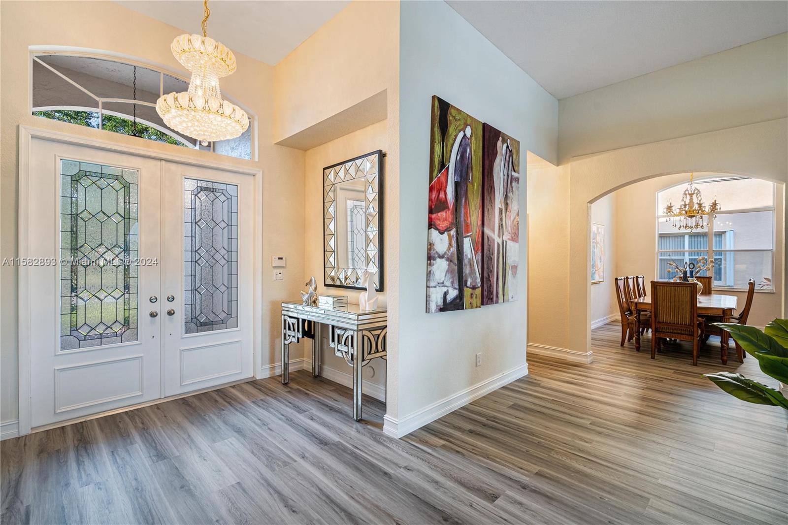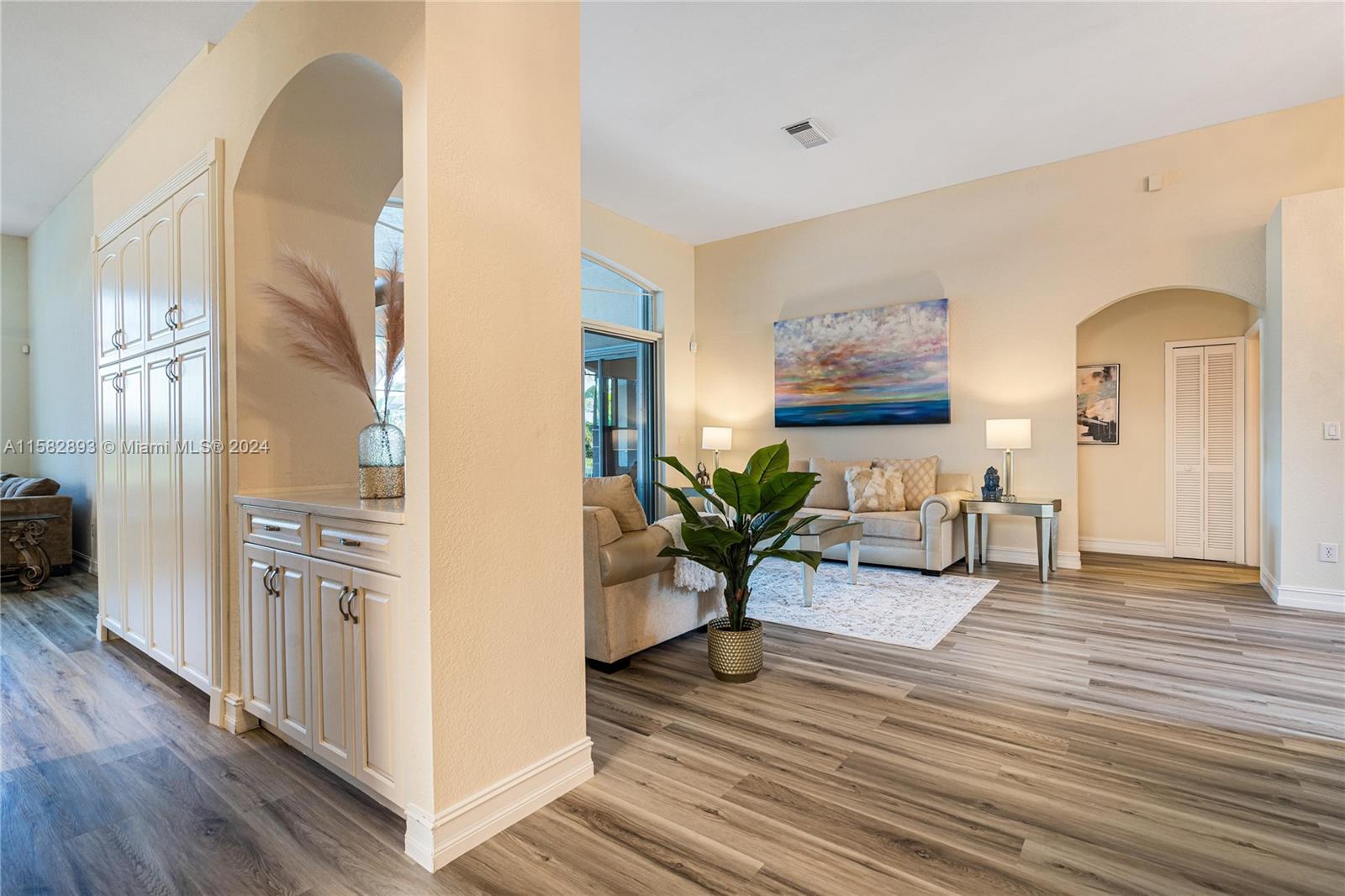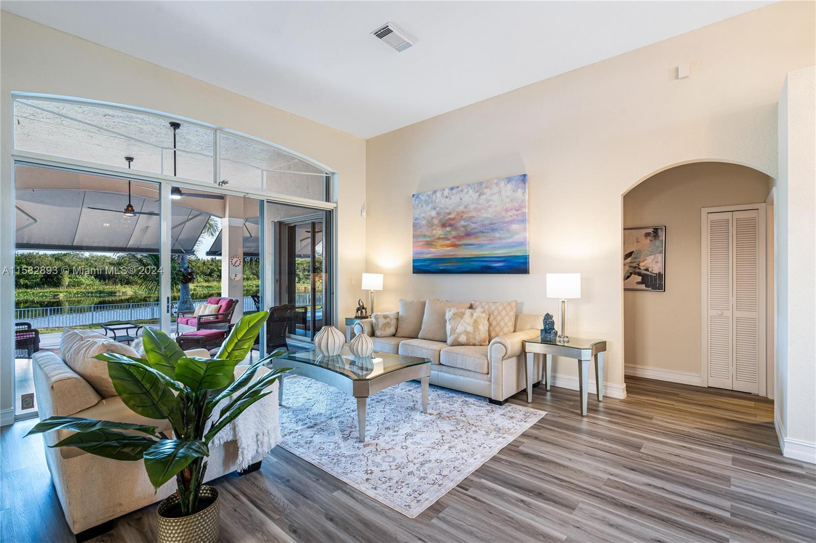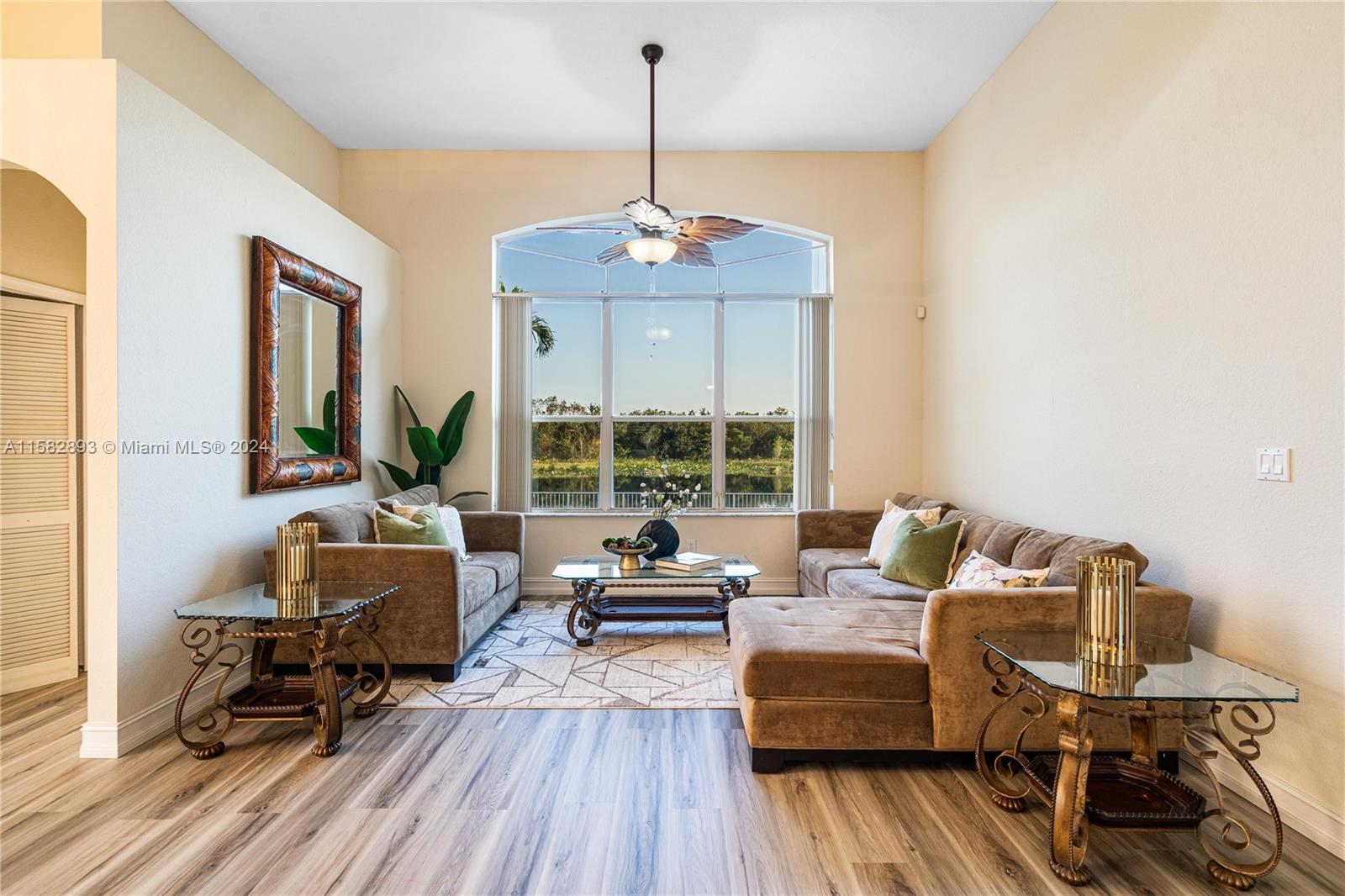 "Explore the freshly remodeled 'CLARIDGE' model, located lakeside with views of a vast preserve. This home offers lake panoramas from the master bedroom, living room, and kitchen/family area—ideal for entertaining. The layout includes split bedrooms for privacy, a formal dining room, and a chic bar area. The updated kitchen boasts advanced appliances and extensive storage. Additional features include a modernized laundry, ample closet space, and a private backyard for serene sunset views. Located in the gated Estancia community, the home benefits from a lake-fed sprinkler system, ensuring lush landscaping."