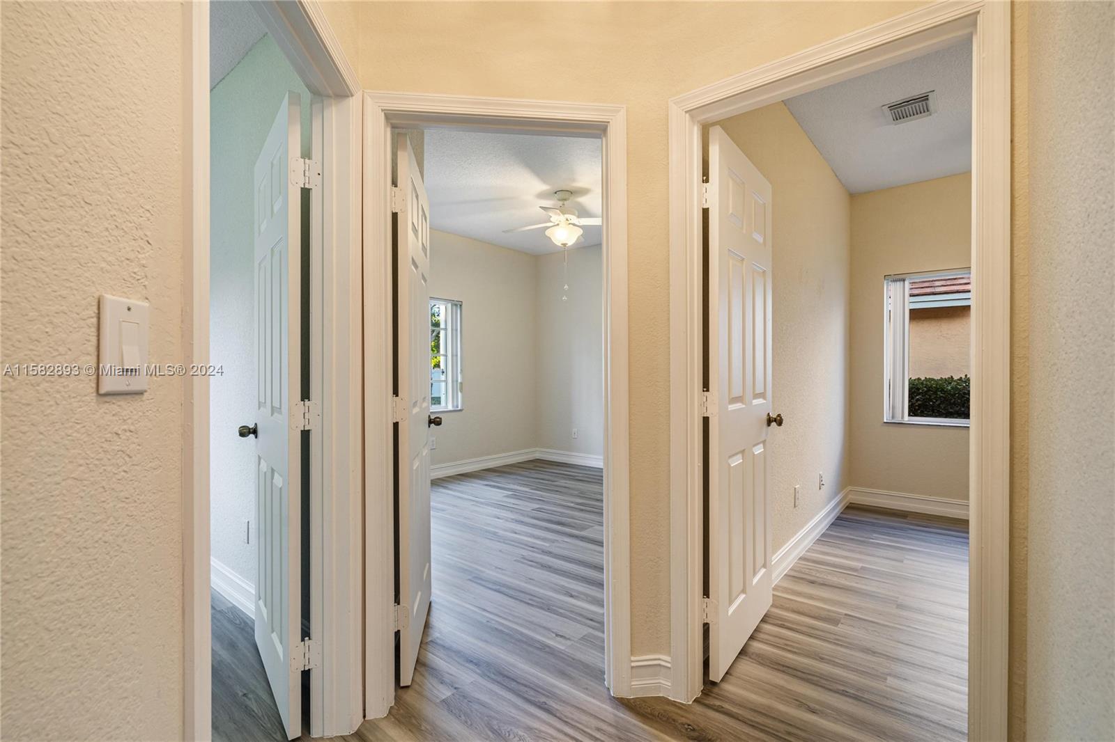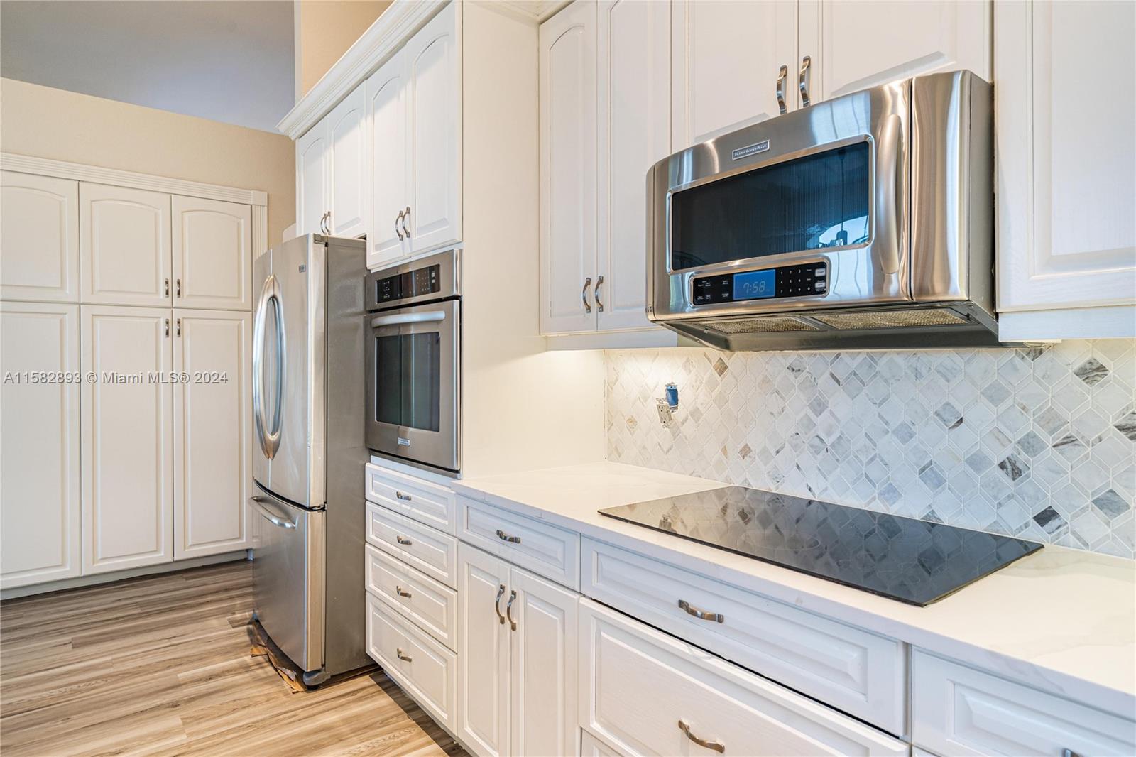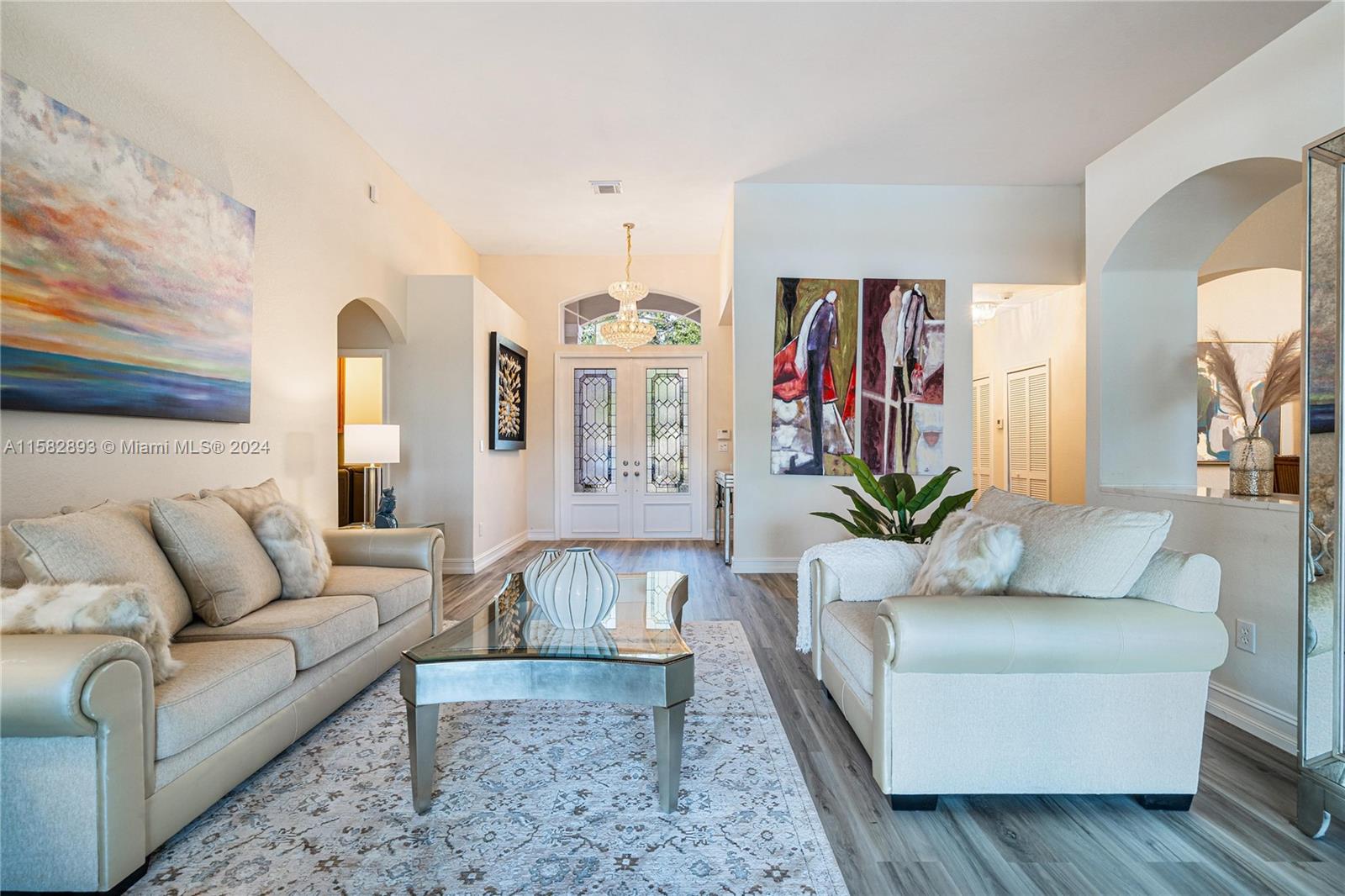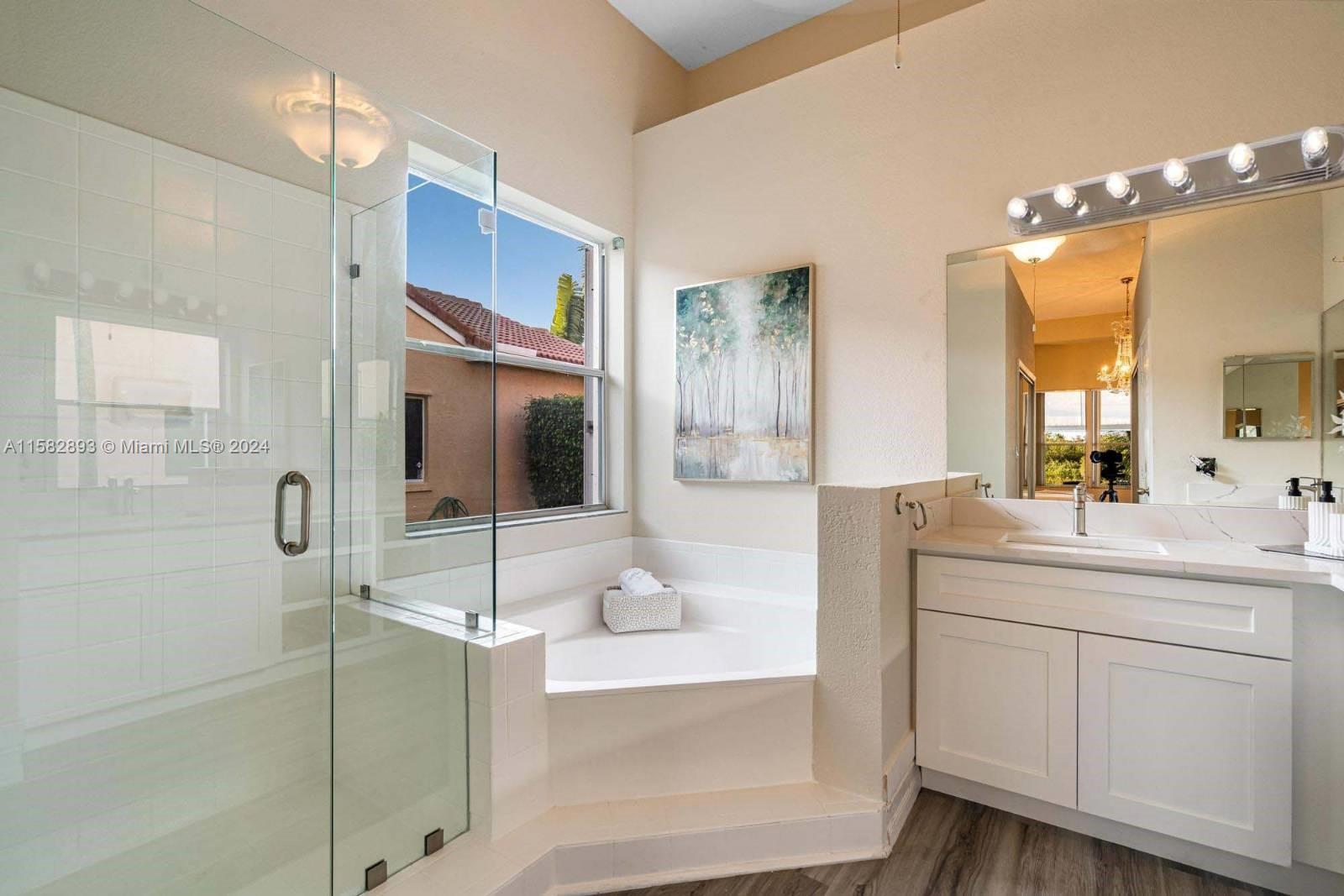 "Explore the freshly remodeled 'CLARIDGE' model, located lakeside with views of a vast preserve. This home offers lake panoramas from the master bedroom, living room, and kitchen/family area—ideal for entertaining. The layout includes split bedrooms for privacy, a formal dining room, and a chic bar area. The updated kitchen boasts advanced appliances and extensive storage. Additional features include a modernized laundry, ample closet space, and a private backyard for serene sunset views. Located in the gated Estancia community, the home benefits from a lake-fed sprinkler system, ensuring lush landscaping."