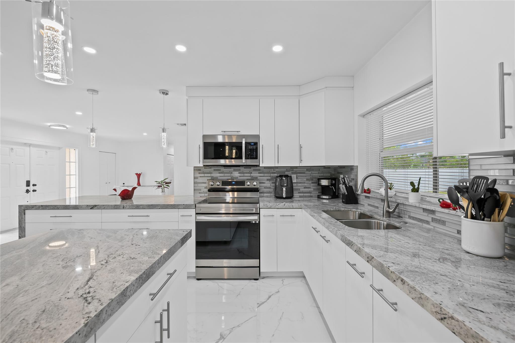 Welcome to your dream home! This meticulously upgraded house boasts every modern convenience you could desire. Step into this recently upgraded home with impact windows ensuring peace of mind and includes security system. This home features brand new kitchen, bathrooms, lighting, flooring, and ceiling. The convenience continues with an included brand-new washer and dryer and two car garage. Roof is 10 years old, and A/C is from 2023. Owner - job relocation.
