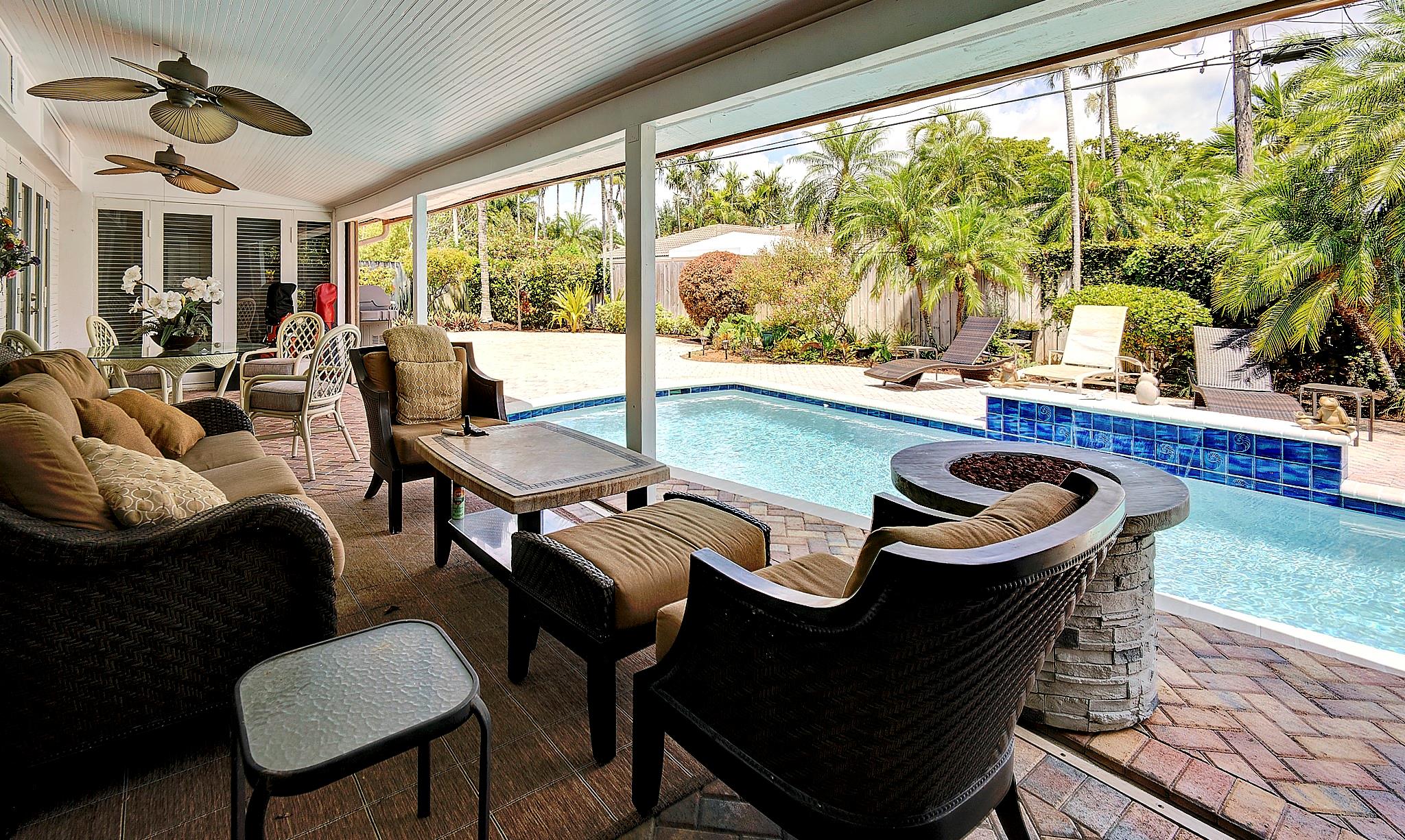 Fantastic Coral Ridge Country Club home with lush Botanical like gardens. Great room floor plan with a wall of French doors leading out to a gorgeous covered huge patio w/ private pool area surrounded by pavers. Spacious bedrooms are split. White kitchen is located in front of the house with a great island in the middle. New metal roof in 2022. New A/C. New salt water filtration and heater for pool. The oversized backyard is beckoning you to enjoy the Florida life!