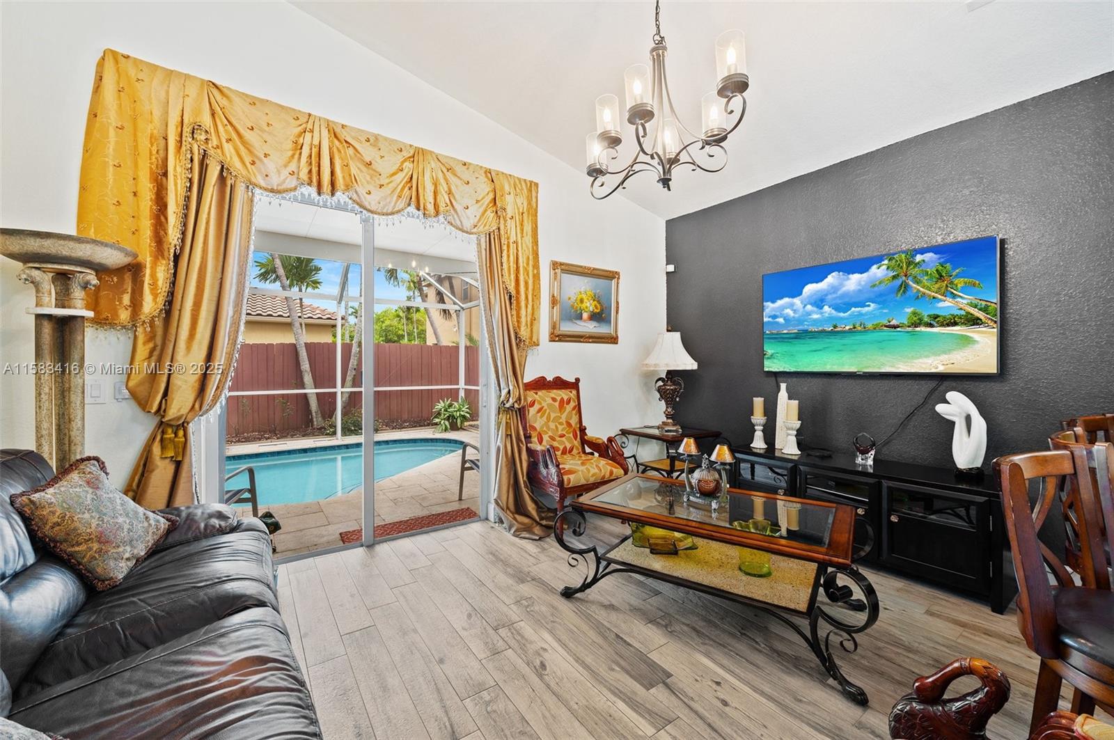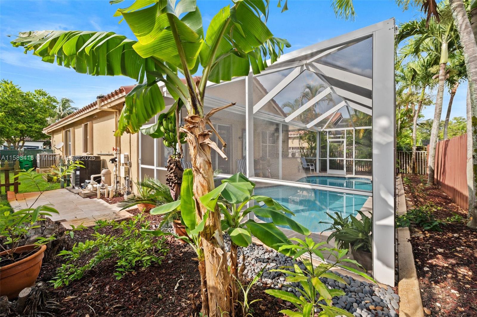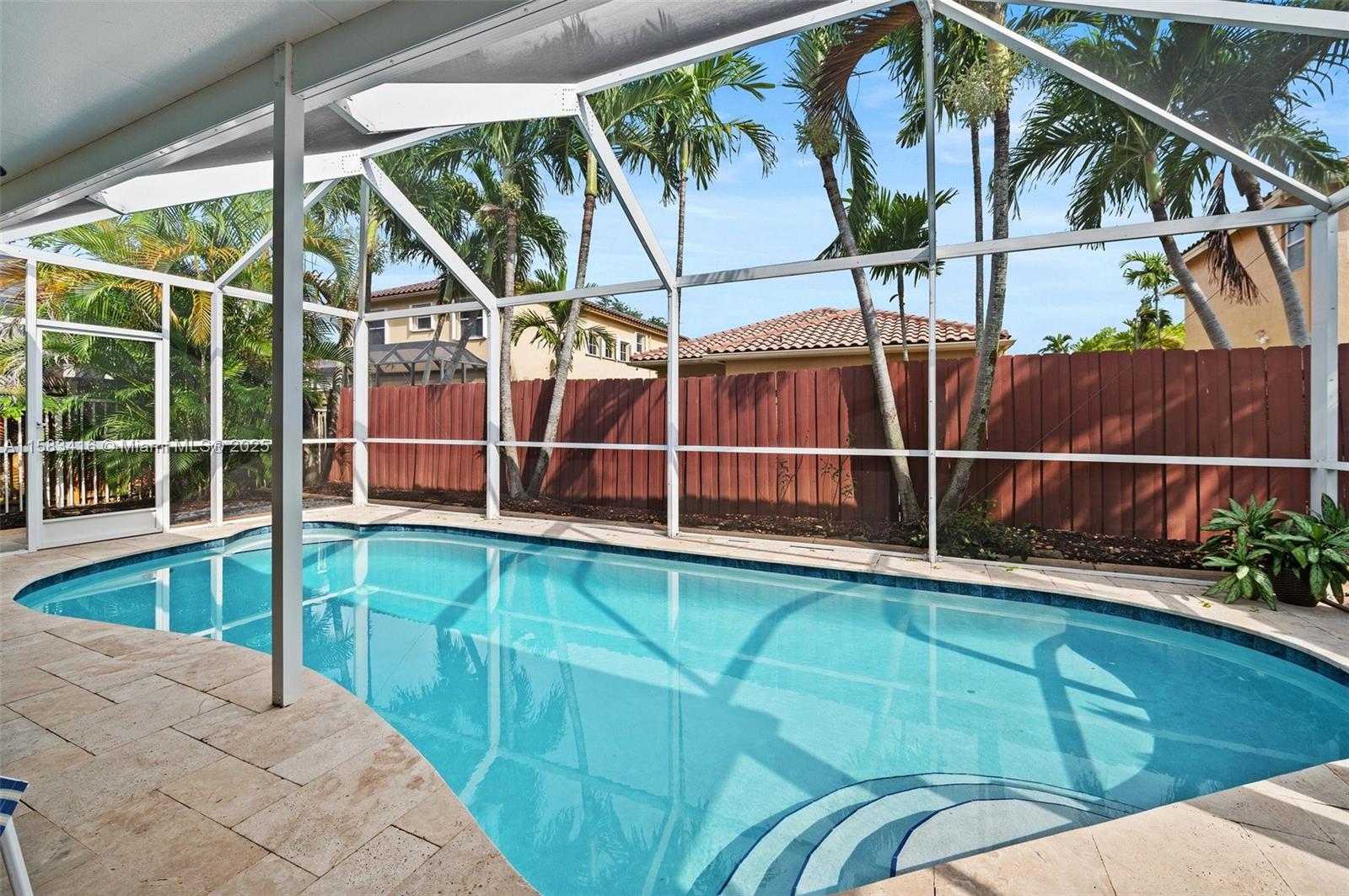 GORGEOUS SINGLE STORY HOME WITH SCREENED-IN SWIMMING POOL PERFECT TO STAY COOL IN THIS HOT SUMMER! FEATURING NEW DIAMOND BRIGHT FINISH AND ELEGANT TRAVERTINE FLOORING. INSIDE, INDULGE IN THE SEAMLESS FLOW OF PORCELAIN WOOD FLOORS THROUGHOUT, ADDING WARMTH AND SOPHISTICATION TO EVERY ROOM. COMPLETELY REFRESHED WITHIN THE LAST 24 MONTHS, THIS HOME IS THE EPITOME OF MODERN ELEGANCE. SOLAR PANNELS FOR POOL & NEWER POOL HEATER, UPGRADED TILE FLOORING THROUGHOUT THE LIVING AREAS, ELEVATING THE AMBIANCE OF EACH SPACE. EXPERIENCE LUXURY IN EVERY DETAIL WITH METICULOUSLY UPGRADED BATHROOM FIXTURES AND STUNNING POOL SCREENINGS. DELIGHT IN THE UPGRADED KITCHEN FEATURING GRANITE COUNTERS AND A BEAUTIFULLY CRAFTED BACKSPLASH, ADDING BOTH STYLE AND FUNCTIONALITY TO YOUR CULINARY HAVEN.