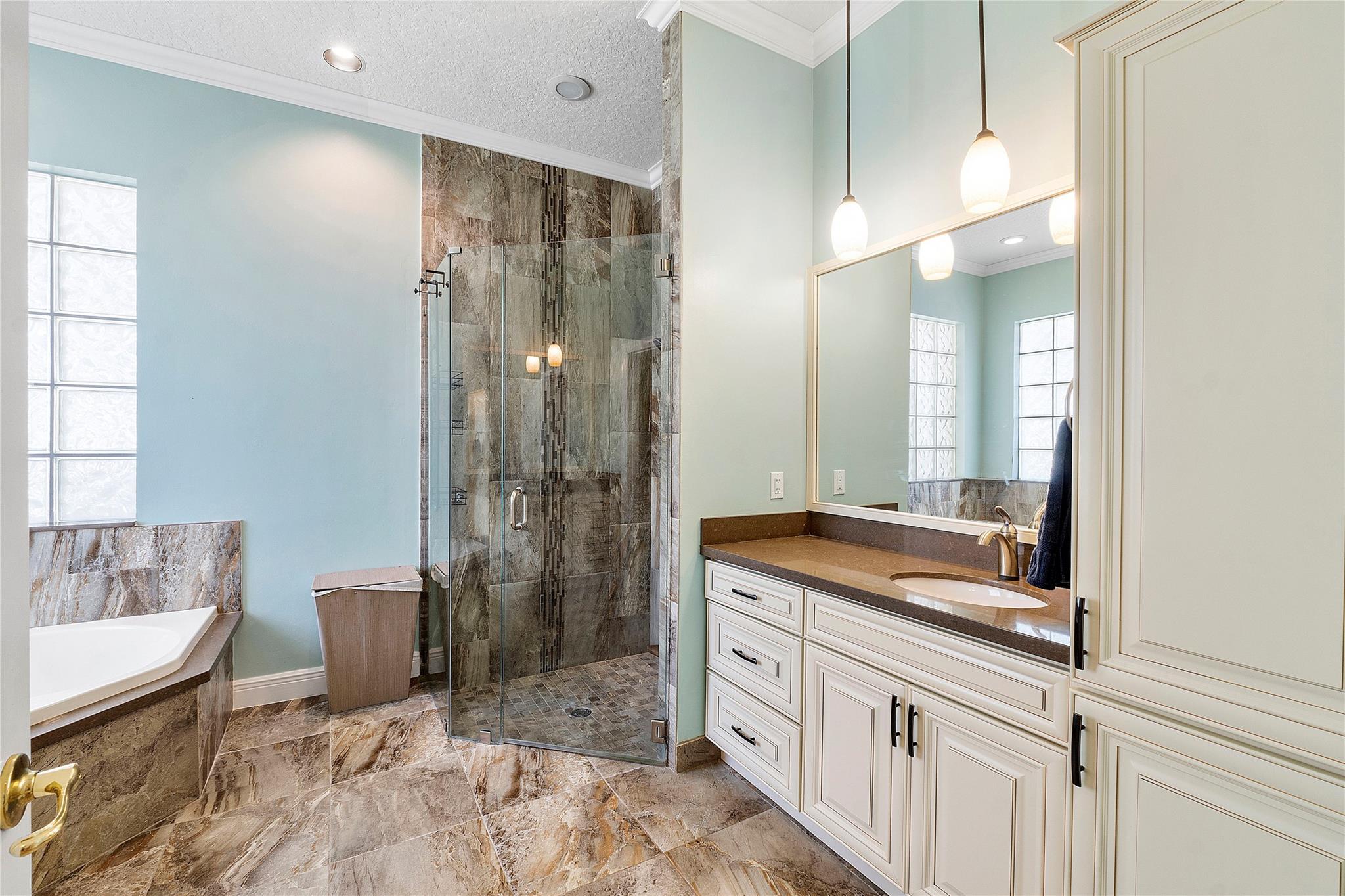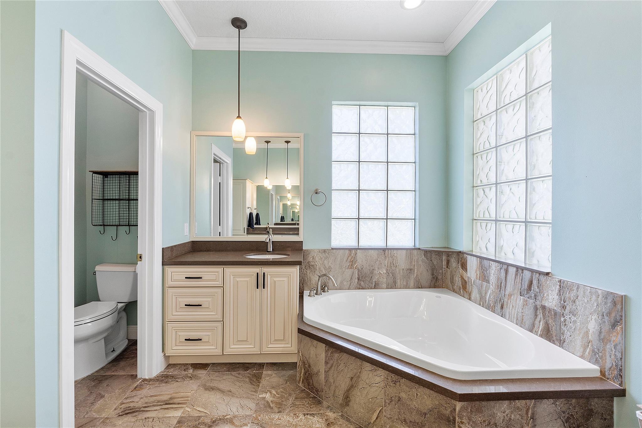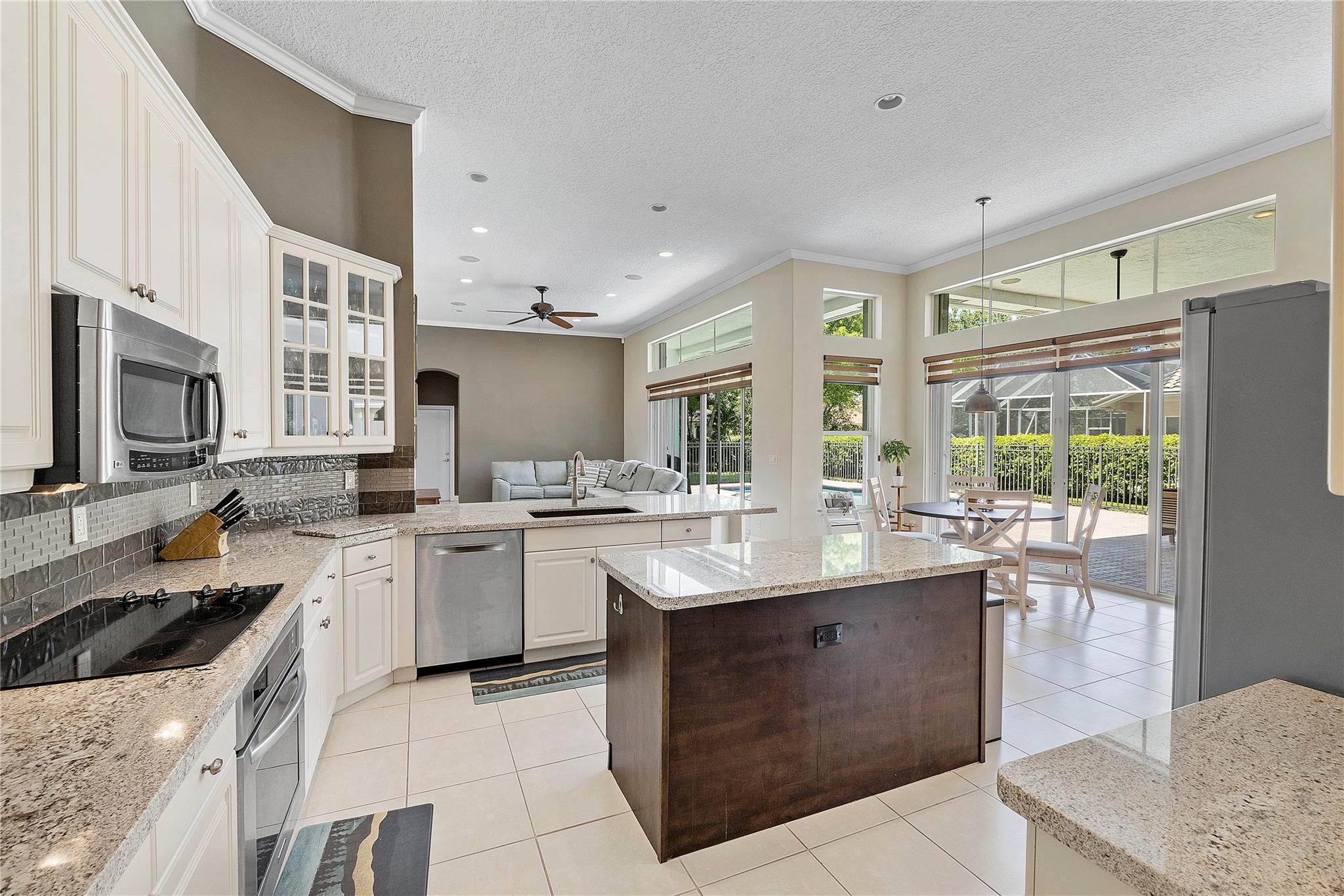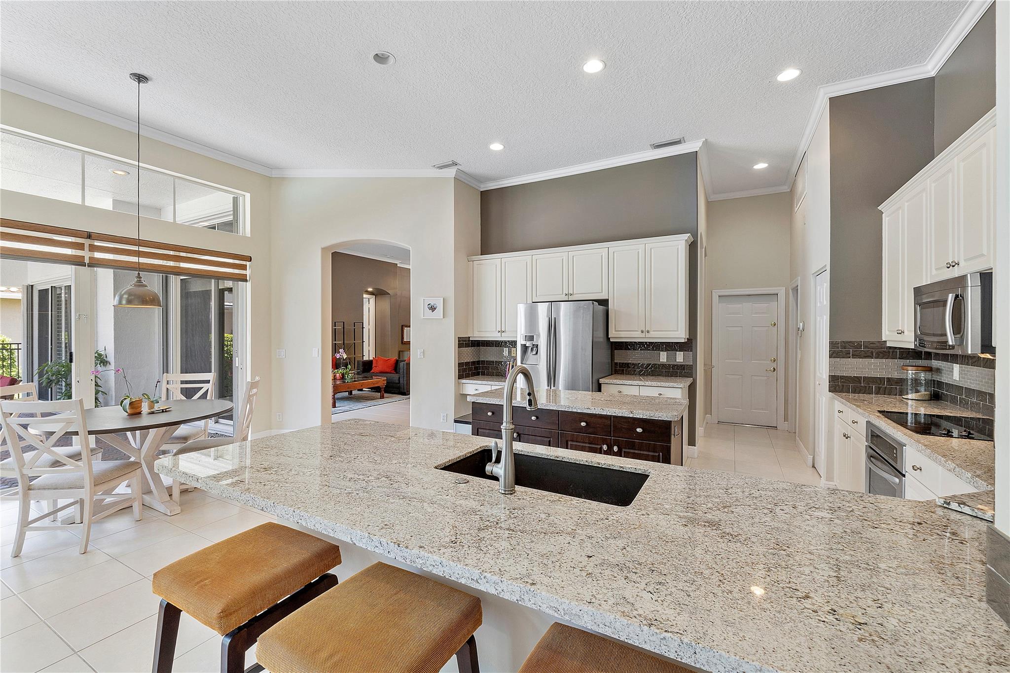 Welcome to your dream home in Kensington Glen! This spacious 5/3 residence with 3 car garage boasts modern updates, including renovated bathrooms with a luxurious glass walk-in shower & dual sinks with touchless faucets in the primary, complemented by a soaking tub. Primary suite features 2 walk-in closets with custom built-ins. Volume ceilings & crown molding allow natural light to flow in. Stainless steel appliances & a contrasting island in kitchen, overlooks the living room, perfect size for gatherings. Enjoy breakfast with a pool view or step outside to bask in the oversized 12,000+ sqft lot. New roof (2022), A/C (2021/2022), this home offers comfort & peace of mind. Near top-rated schools, shopping, & highways, this property promises luxury, convenience, & the Florida lifestyle.