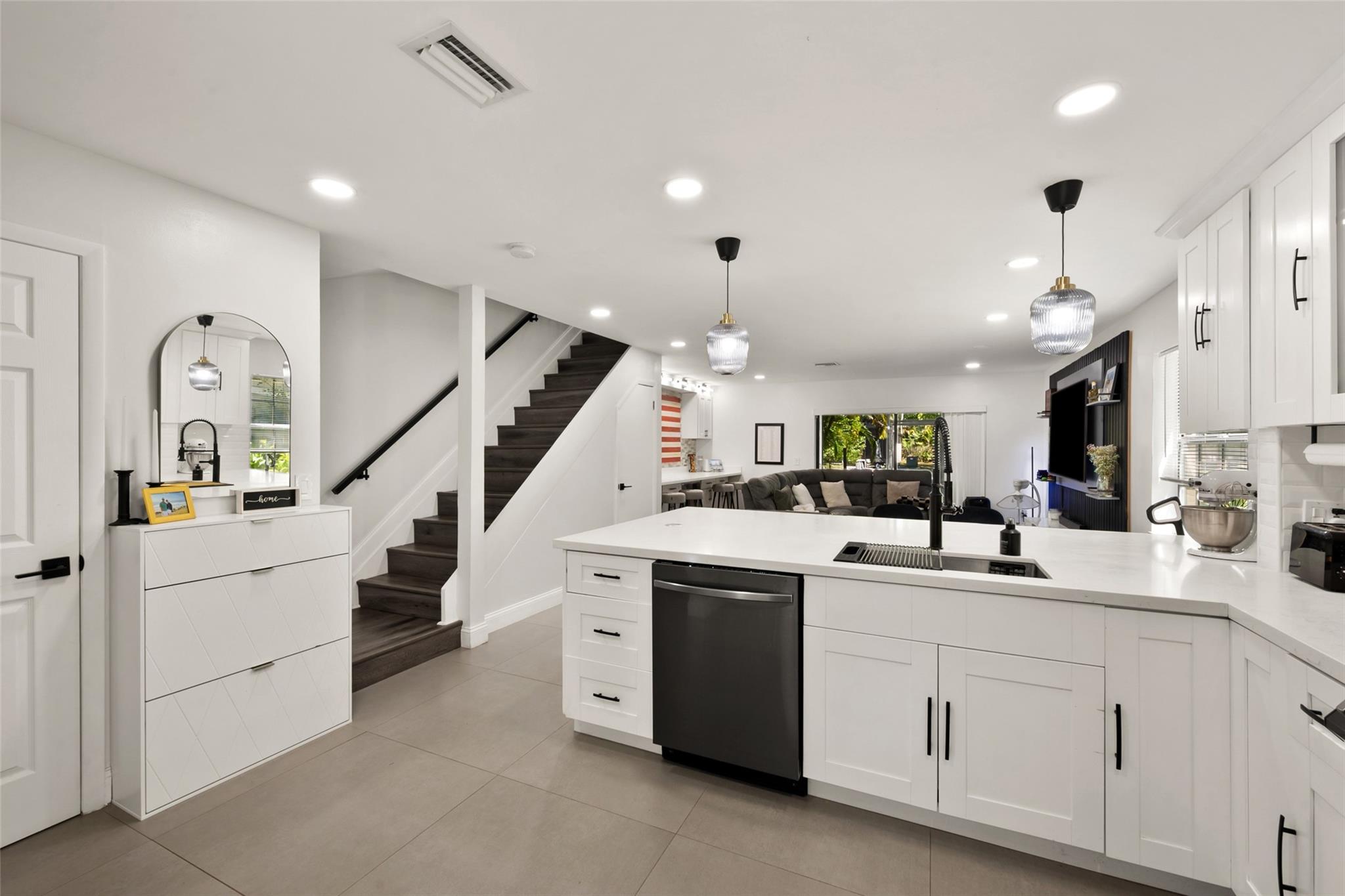Your dream home! Best location in plantation! 3 bed 2.5 bath townhome on a lake. Home features large tile floors downstairs and all new luxury waterproof vinyl floors upstairs. Completely updated Kitchen features new smart Samsung appliances, double sized quartz kitchen counter with double sided cabinets, and crown molding. Living area has custom built bar and entertainment center for the perfect get togethers. Master bedroom and second bedroom have custom designer closet. Master bathroom is completely renovated huge walk-in shower and smart hand sensor faucet. Home has screen patio, lovely lake view. 10-minute drive to NSU and Broward college. This home is at the heart of midtown plantation walking distance from the new plantation walk.