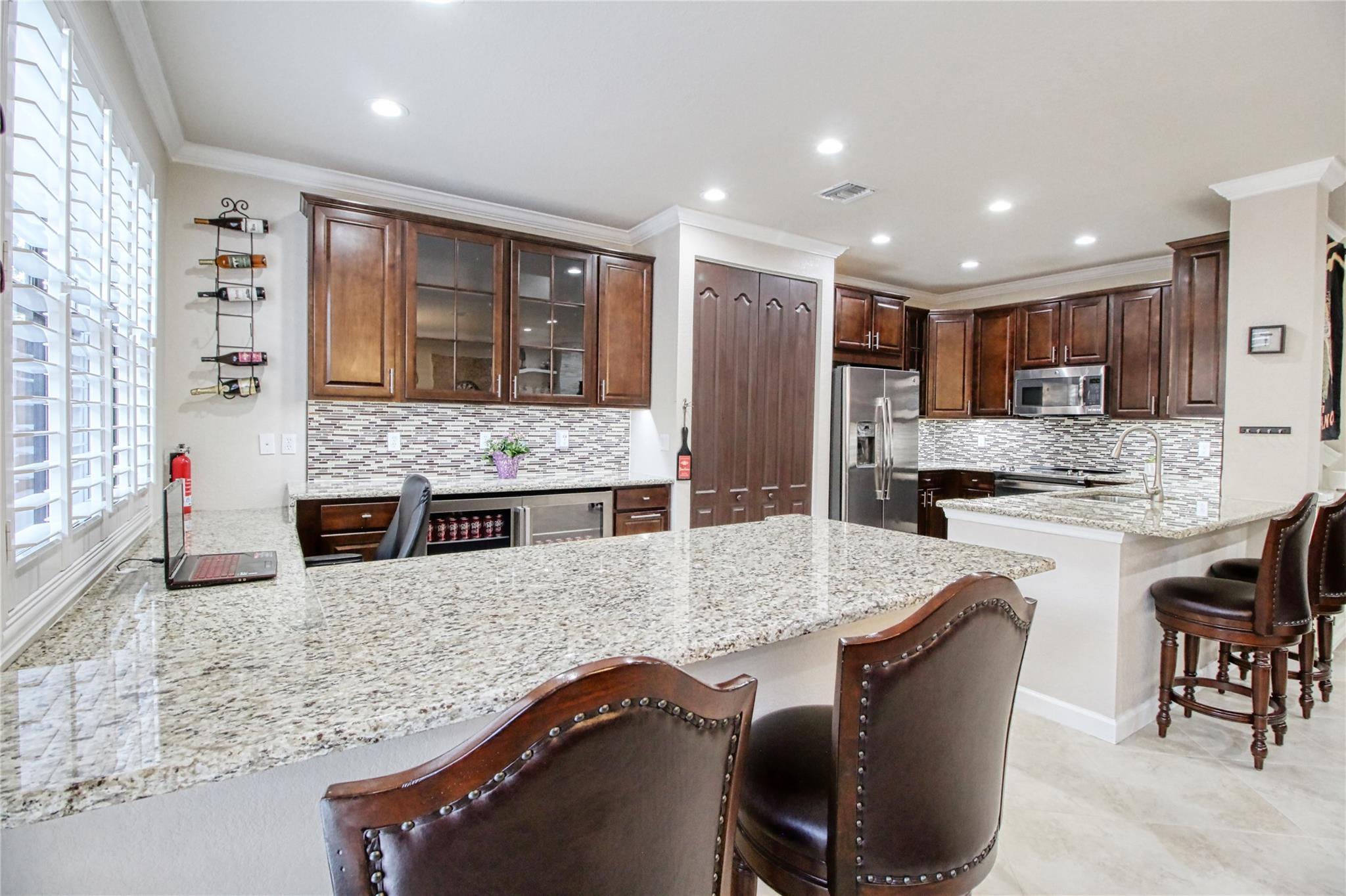 Beautifully upgraded townhouse in sought-after TownParc in Miralago at Parkland. Bright and open floor plan with crown moulding and tile flooring throughout. Custom kitchen boasts an expanded pantry, two seating bars, and built-in desk with beverage coolers and granite countertops. Additional seating in custom-built kitchen/dining room seating. All bathrooms upgraded with granite countertops, mount sinks, and brushed nickel fixtures. Master bedroom features a walk-in shower with a separate soaker tub, dual sinks, and a separate toilet water closet. Closet equipped with a ClosetMaid built-in closet system. Outside, a large patio with expanded pavers and a built-in outdoor kitchen with gas grill and smoker with matching stone veneer. Ideal for entertaining and enjoying the Florida lifestyle.