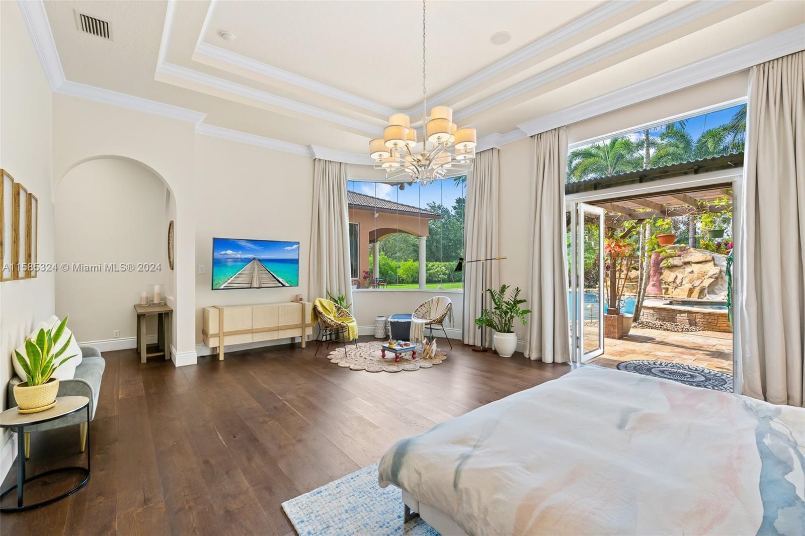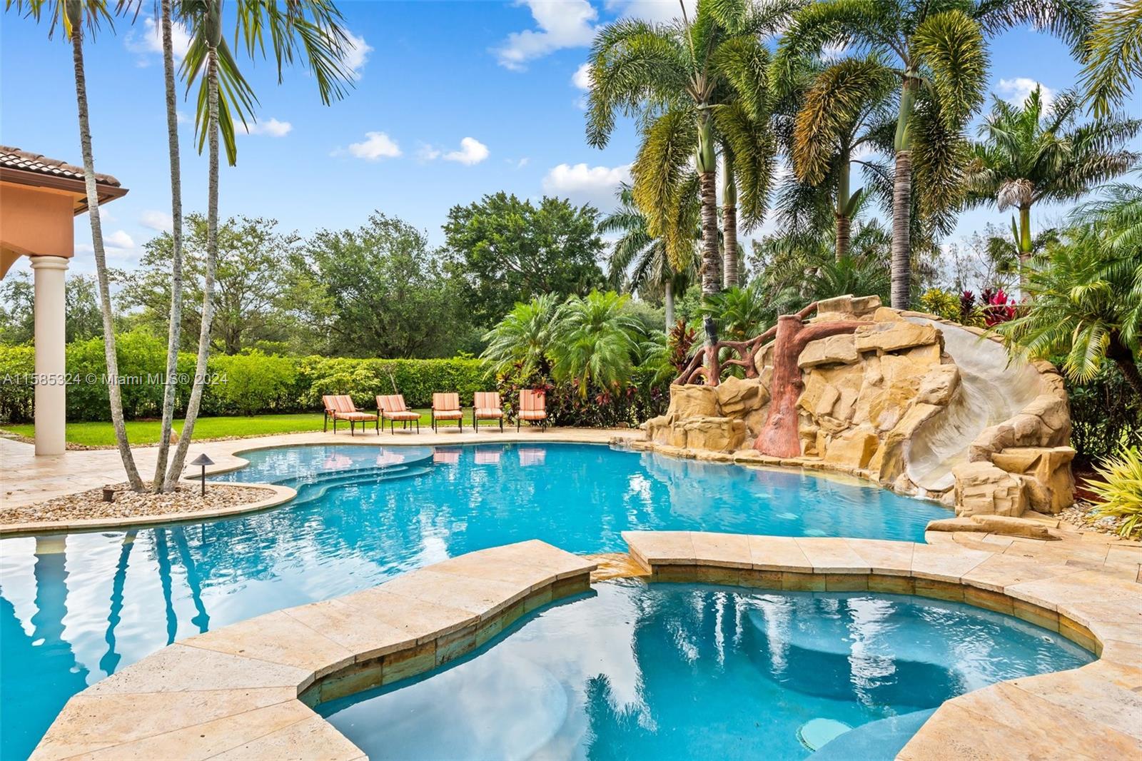 Welcome to the Exclusive Upscale Equestrian Gated Community of Stonebrook Estates. This Executive custom-built 6 Bed 7.5 Bath home on a builder's acre offers first class sophistication. You are greeted by a grand entryway with a fairytale winding staircase and vaulted ceilings. Custom kitchen cabinetry with commercial grade & gas appliances, modern primary suite with his & hers accommodations. Features include marble & wood floors, California closets, security system, surround sound, central vacuum, resort style pool with waterfall, whole house generator, water softener system, upstairs & downstairs laundry rooms, impact windows & doors, 4 car garage, home office, bar, & a movie theatre. Community Clubhouse with gym, playground, tennis, pickleball, volleyball, and basketball courts.