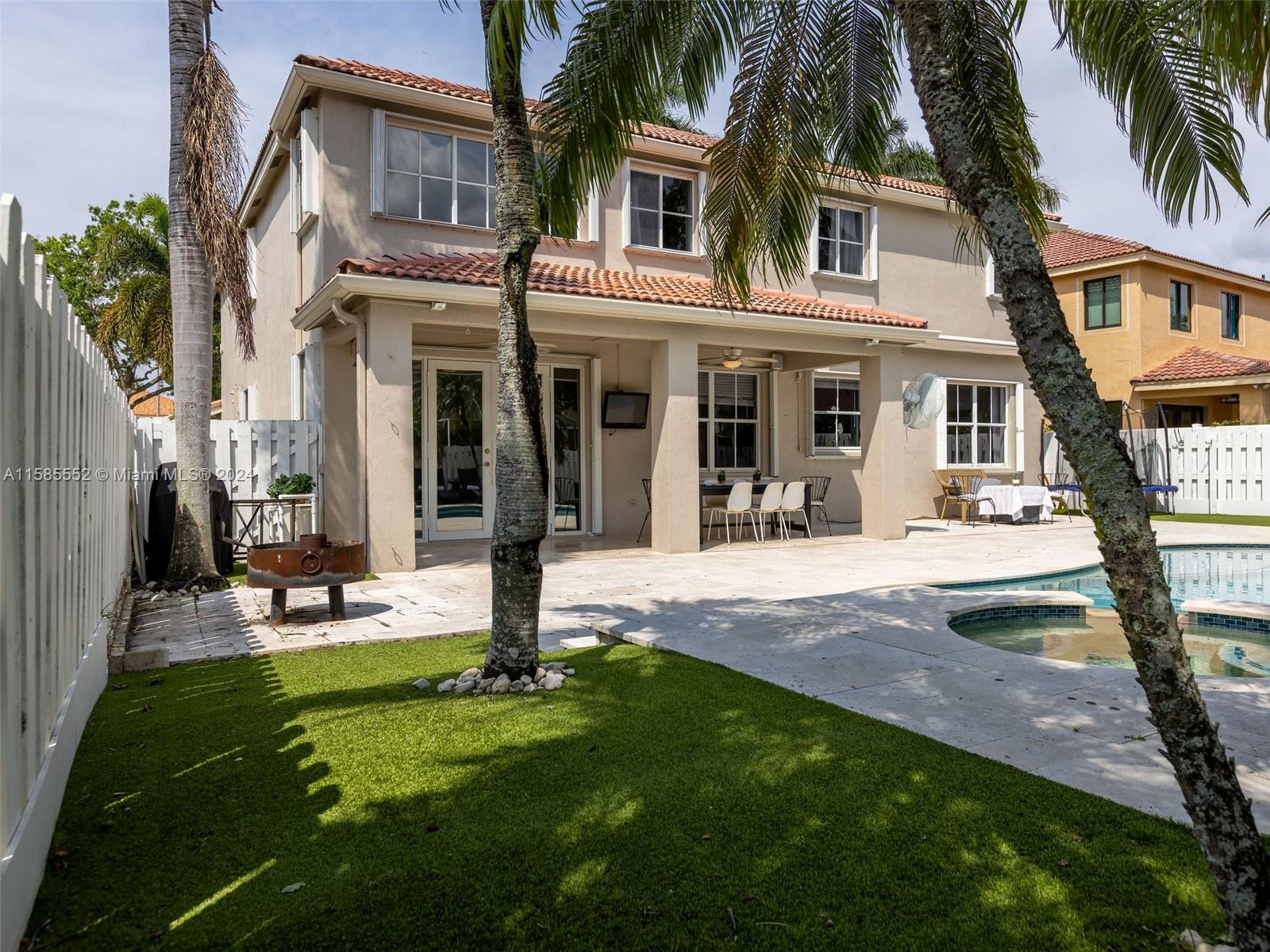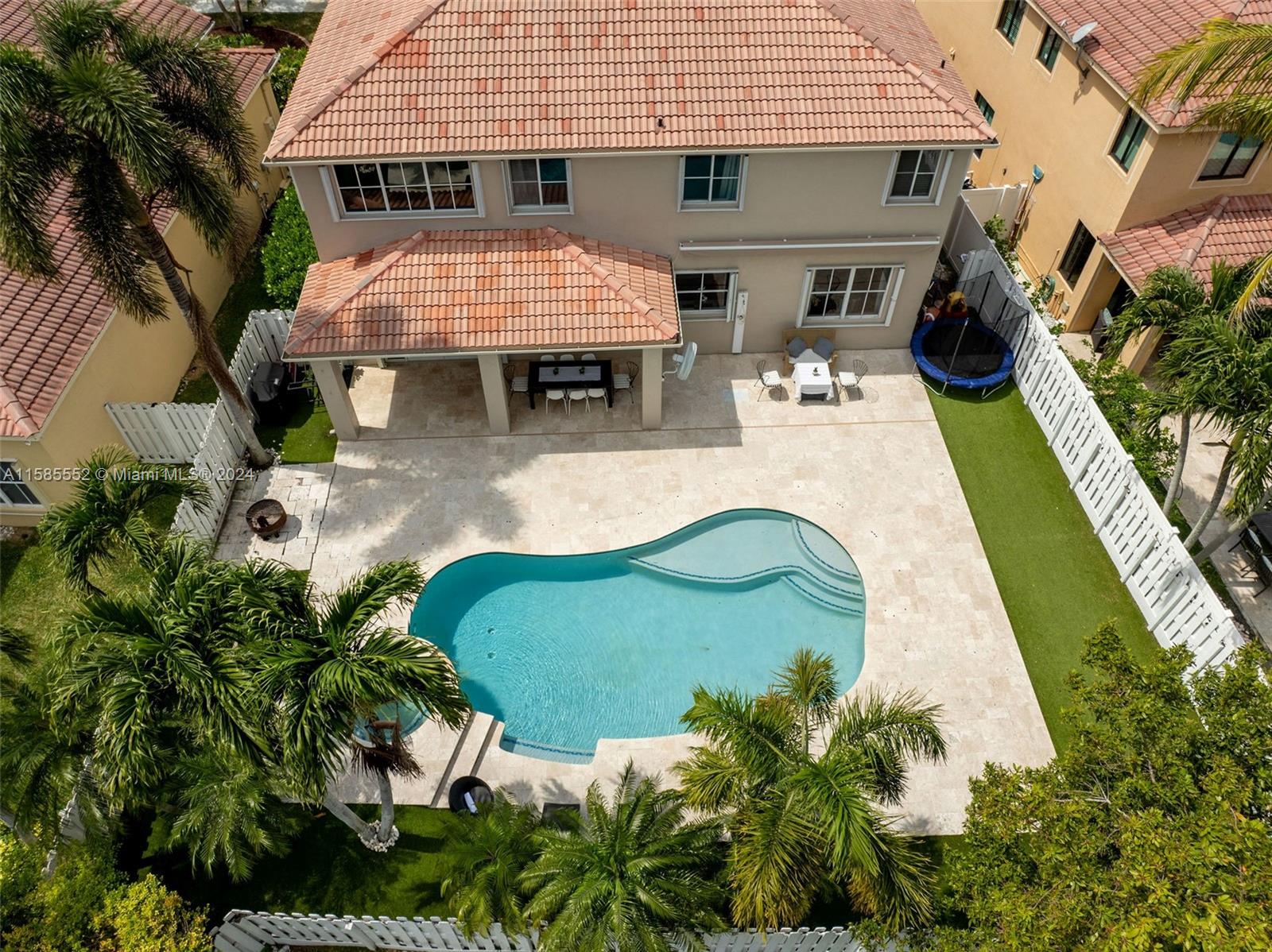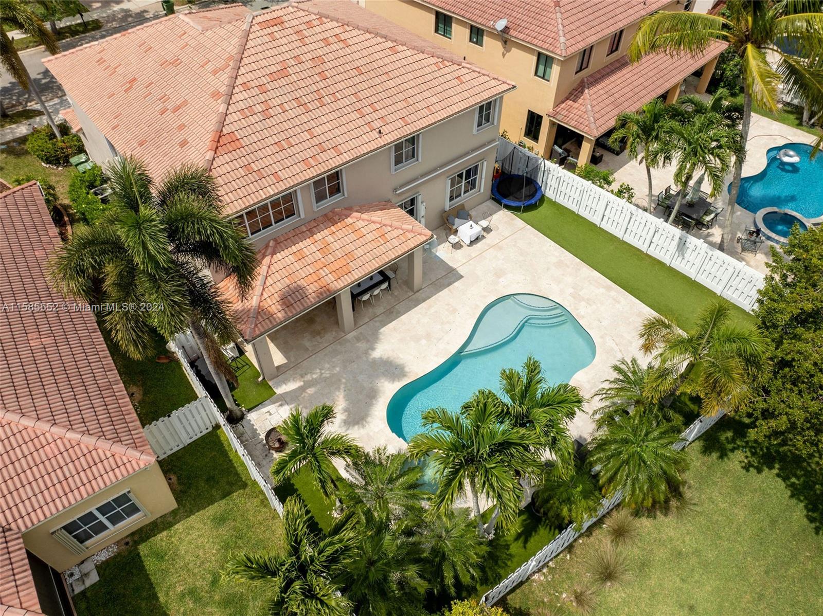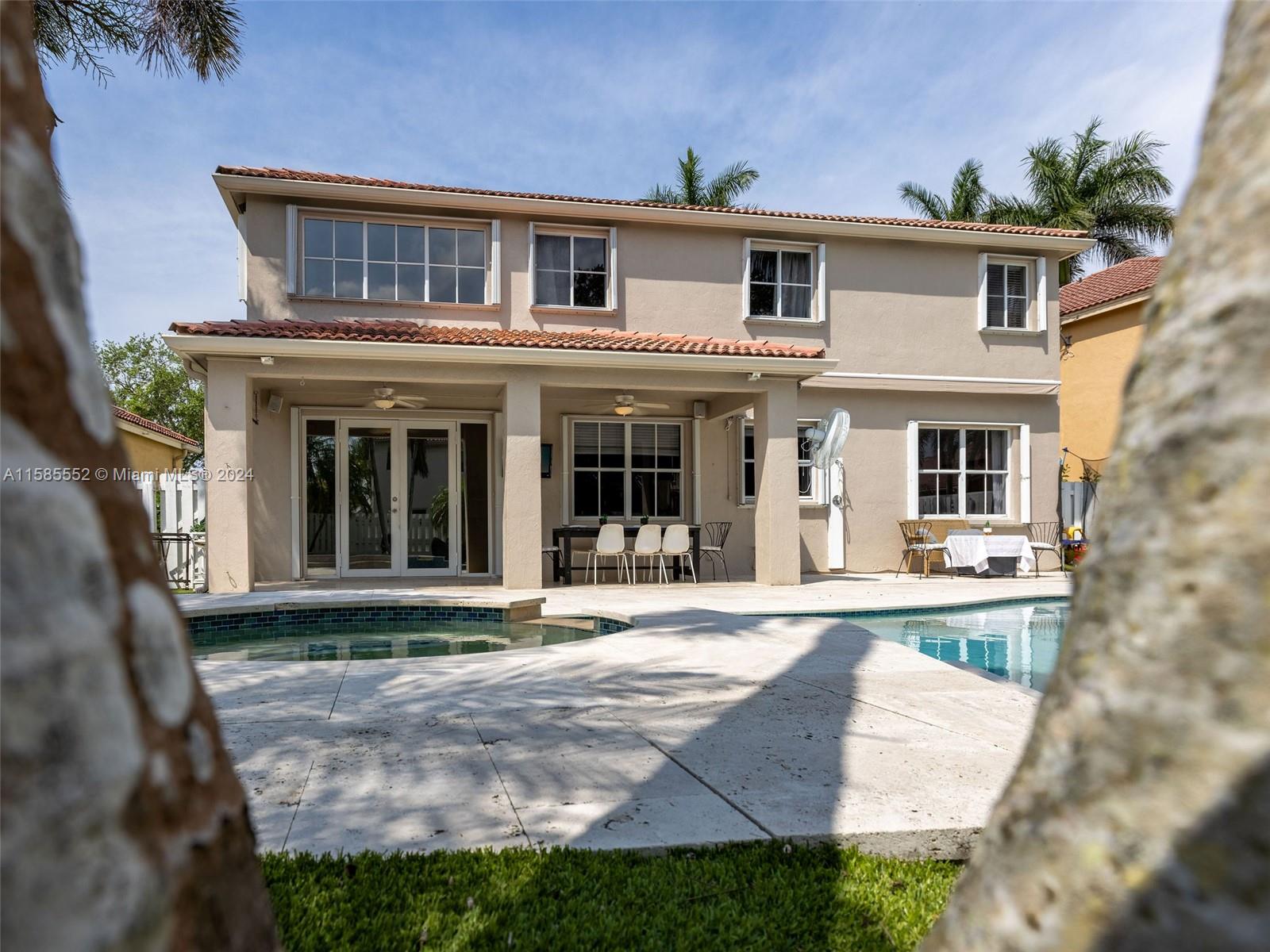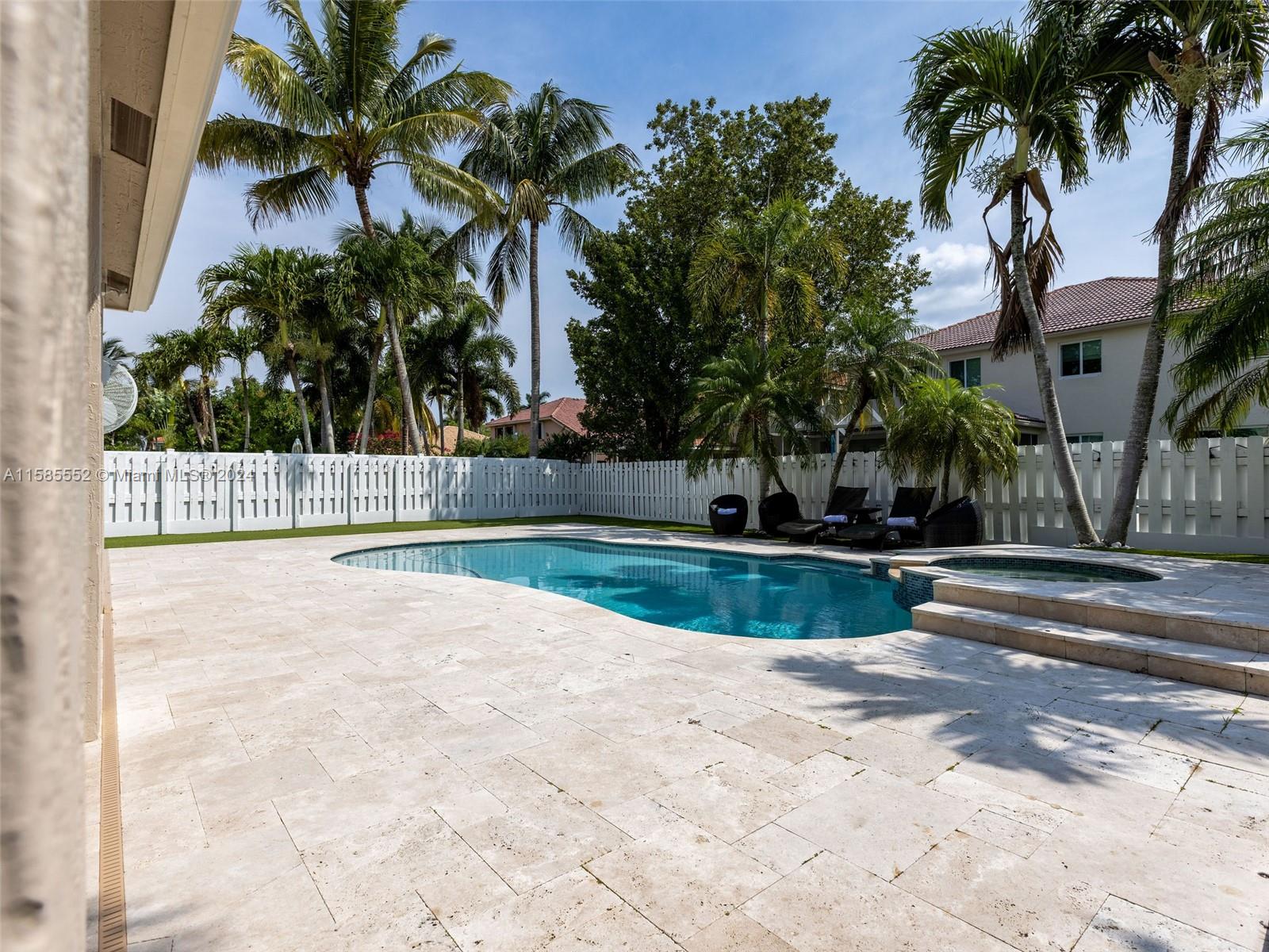 Amazing 5 BEDROOM PLUS OFFICE Home at The Meadows, one of Weston's gated communities! Double height ceilings in living room and family room, great floor plan, full of light, spacious kitchen with an island, perfect for entertaining! Family room with volume ceilings overlooking spacious backyard with amazing palm trees, renovated pool and spa, beautiful modern travertine pavers, covered patio plus awning, great for family events! 1 bedroom and 1 full bathroom on first floor, ideal for guests. 2nd floor primary bedroom with his and hers walk-in closets plus attached room perfect for office/gym/dream closet. Big 3 car garage and more parking space on driveway. Community offers pool, playground and sports court. A + Weston schools: Gator Run Elem., Falcon Cove Middle School, Cypress Bay High.