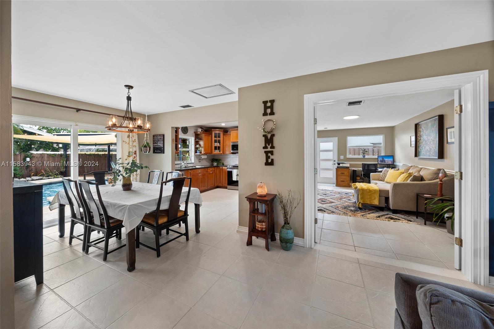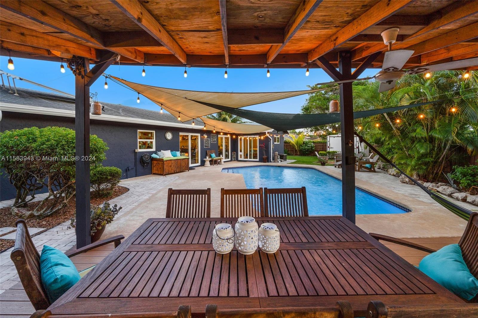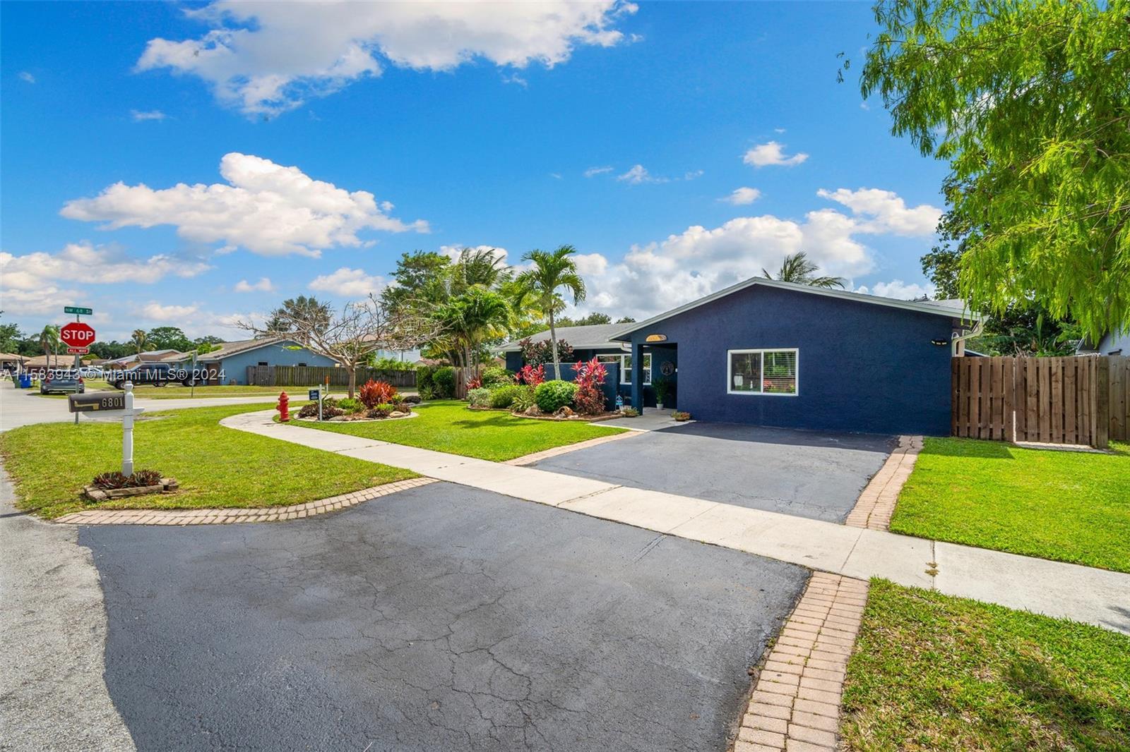 Discover your dream home nestled on a sprawling corner lot in a family-friendly neighborhood. Inside this elegant 4-bedroom, 3-bath gem features a spacious open layout, stainless steel appliances, additional family room, mother-in-law suite with its own entrance, a separate laundry room and hurricane impact windows and doors throughout. Step outside to a landscaped backyard paradise fully fenced in with a saltwater pool, covered dining area with a built-in BBQ bar, flagstone firepit area, and ample of exterior lighting - perfect for entertaining. Utilize the backyard trailer for a workshop or extra storage. With a garden box, solar water heater and an electric car charging source, this home blends luxury with sustainability. Truly a well maintained impeccably appointed home is a must see!