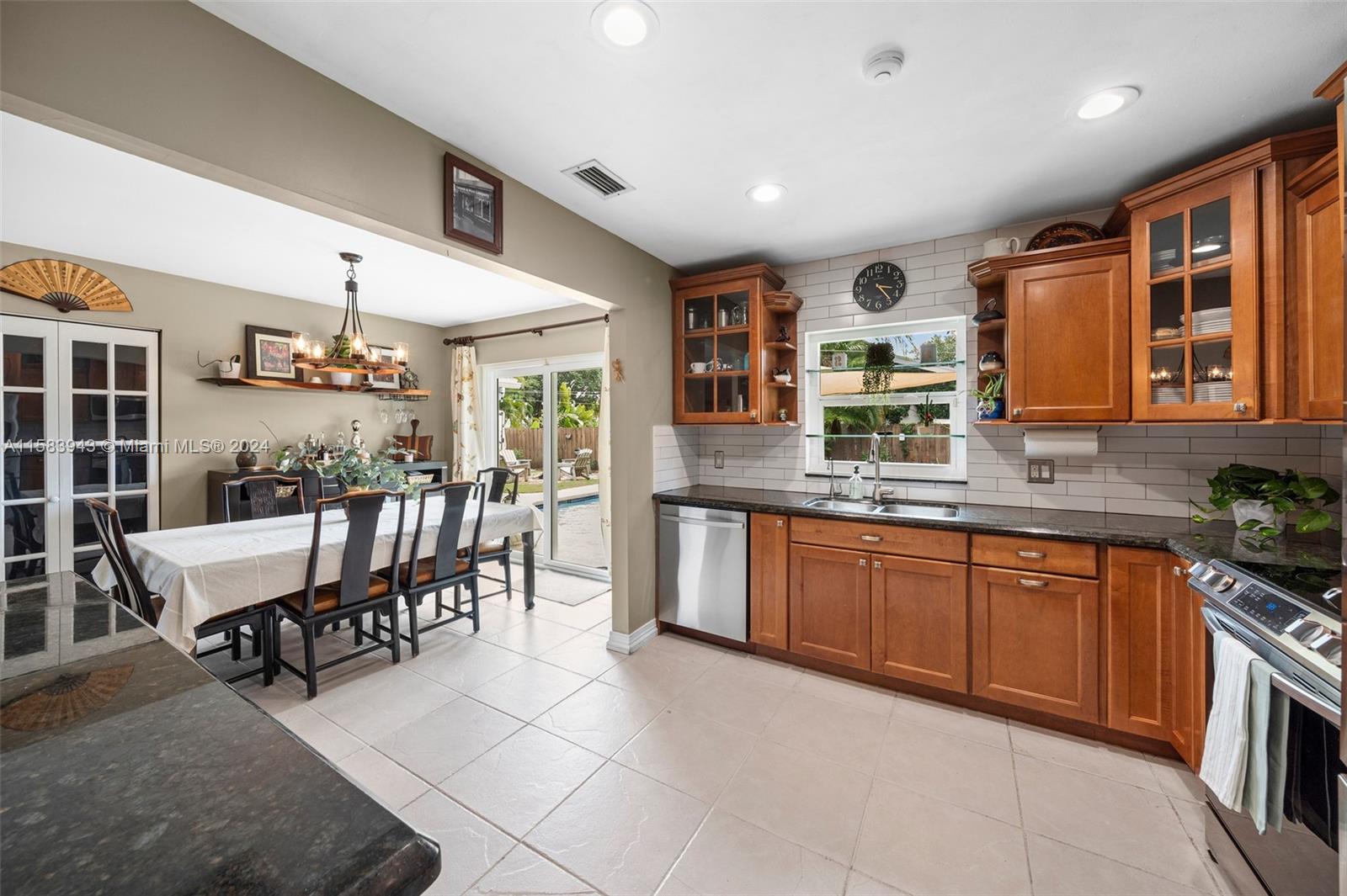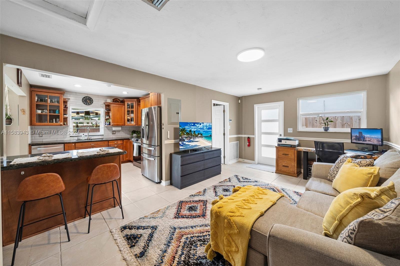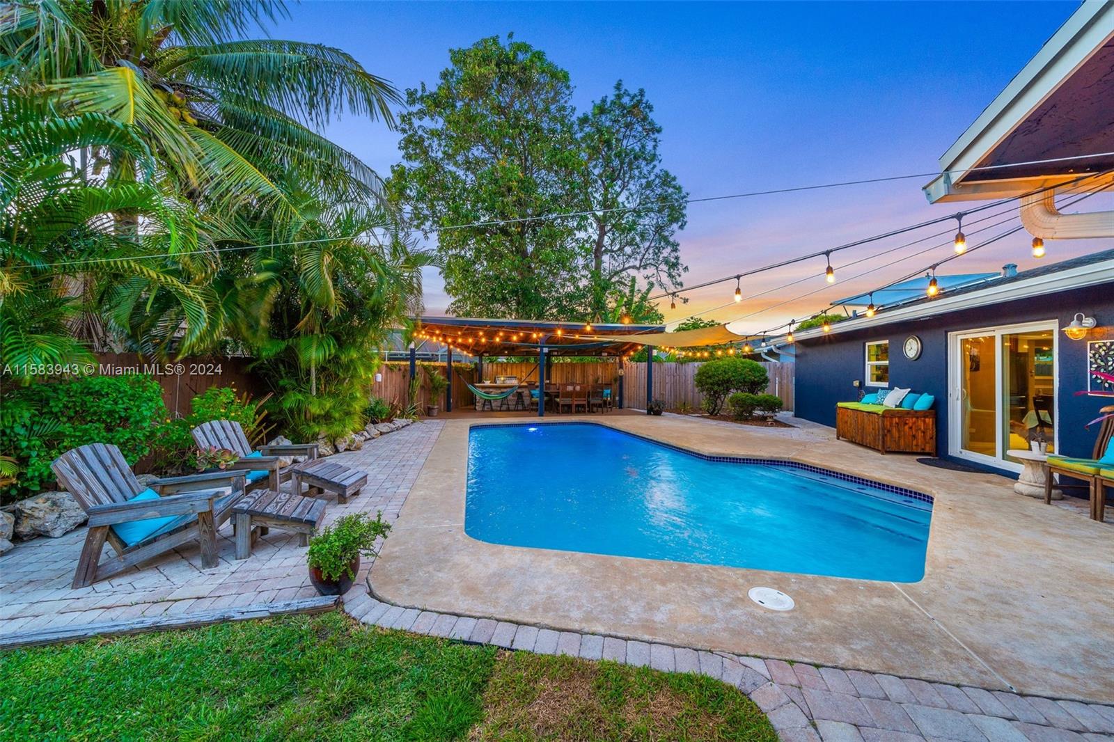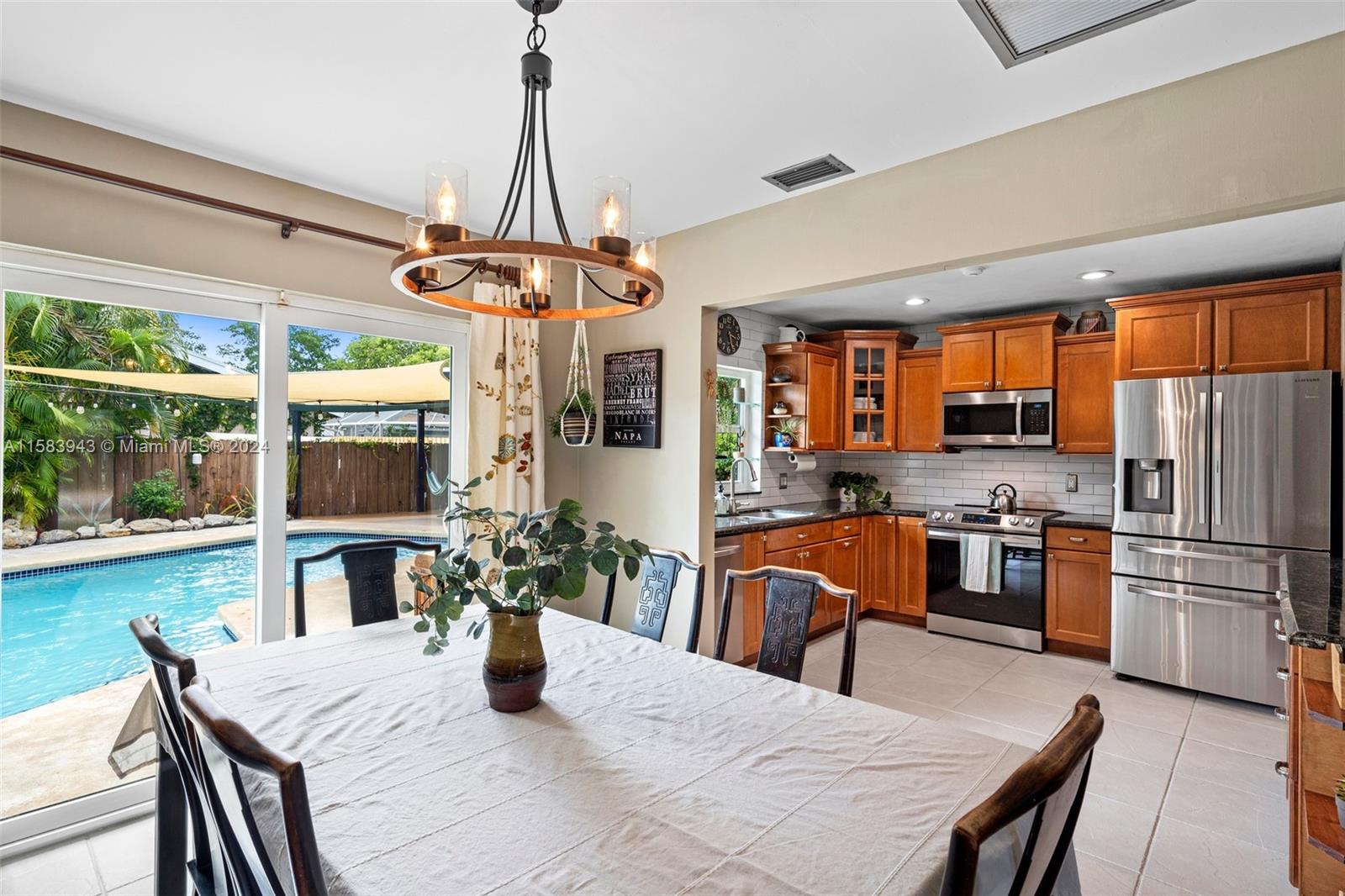 Discover your dream home nestled on a sprawling corner lot in a family-friendly neighborhood. Inside this elegant 4-bedroom, 3-bath gem features a spacious open layout, stainless steel appliances, additional family room, mother-in-law suite with its own entrance, a separate laundry room and hurricane impact windows and doors throughout. Step outside to a landscaped backyard paradise fully fenced in with a saltwater pool, covered dining area with a built-in BBQ bar, flagstone firepit area, and ample of exterior lighting - perfect for entertaining. Utilize the backyard trailer for a workshop or extra storage. With a garden box, solar water heater and an electric car charging source, this home blends luxury with sustainability. Truly a well maintained impeccably appointed home is a must see!