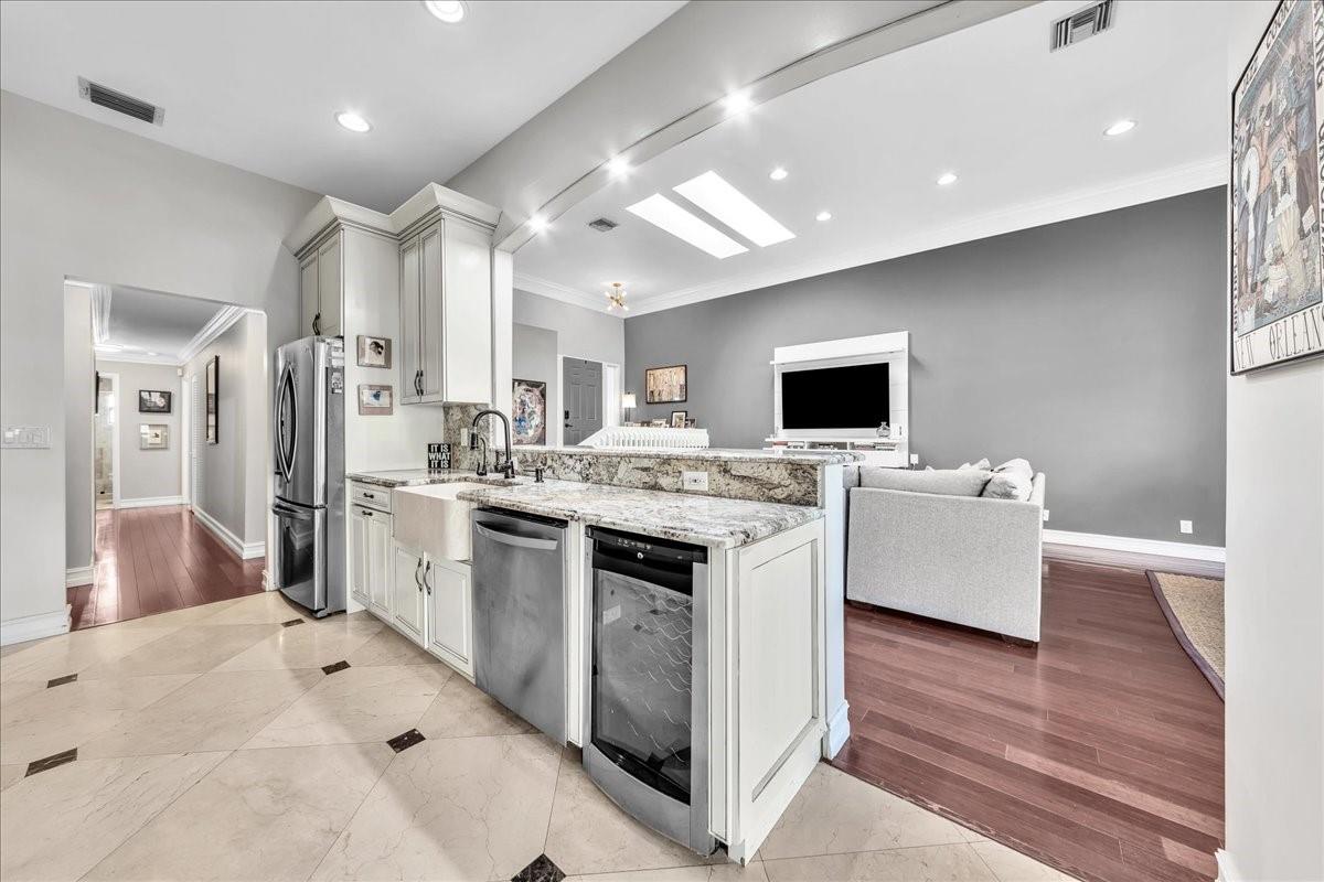 Perfect home on a corner lot! Privacy fencing surrounding the backyard. room for a POOL. Peaceful screened in patio. 3/2 UPDATED home with solid BAMBOO and MARBLE FLOORING. Home has a great wide open floorplan with lots of light. Kitchen has timeless solid cabinets and polished stone counters. High end LG appliances with DOUBLE OVEN and TRAVERTINE farmers sink. Primary bedroom is huge and has 2 WALK IN CLOSETS. Large secondary bedrooms. IMPACT WINDOWS! CENTRAL LOCATION.