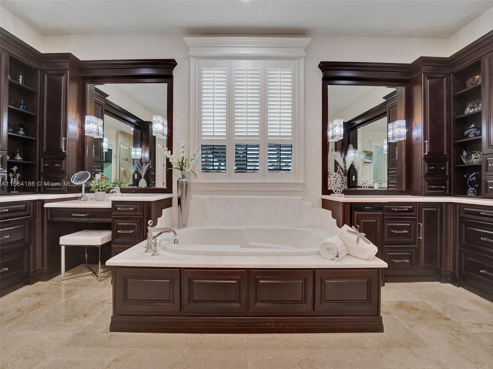 Discover the exclusive residence in the Laurels at Weston Hills CC, showcasing sophistication with golf course and water views. This luxurious home spans 8,303 sq ft on a 25,706 sq ft lot, featuring 5 ensuite BD, 6 BA, 3 half baths, game room loft, gym with sauna, theater room, wine room, and yoga room. The primary suite on first floor includes a vast bathroom, spa, private laundry room, and grand walk-in closet. The renovated kitchen has Miele appliances. 123-inch Sony 4K projector in the theater room. Outside, enjoy a large heated pool with spa, putting green, and basketball court, all surrounded by private landscaping. Upgrades: New roof and impact windows. Unparalleled luxury in a serene cul-de-sac. Full details on features and upgrades are attached.