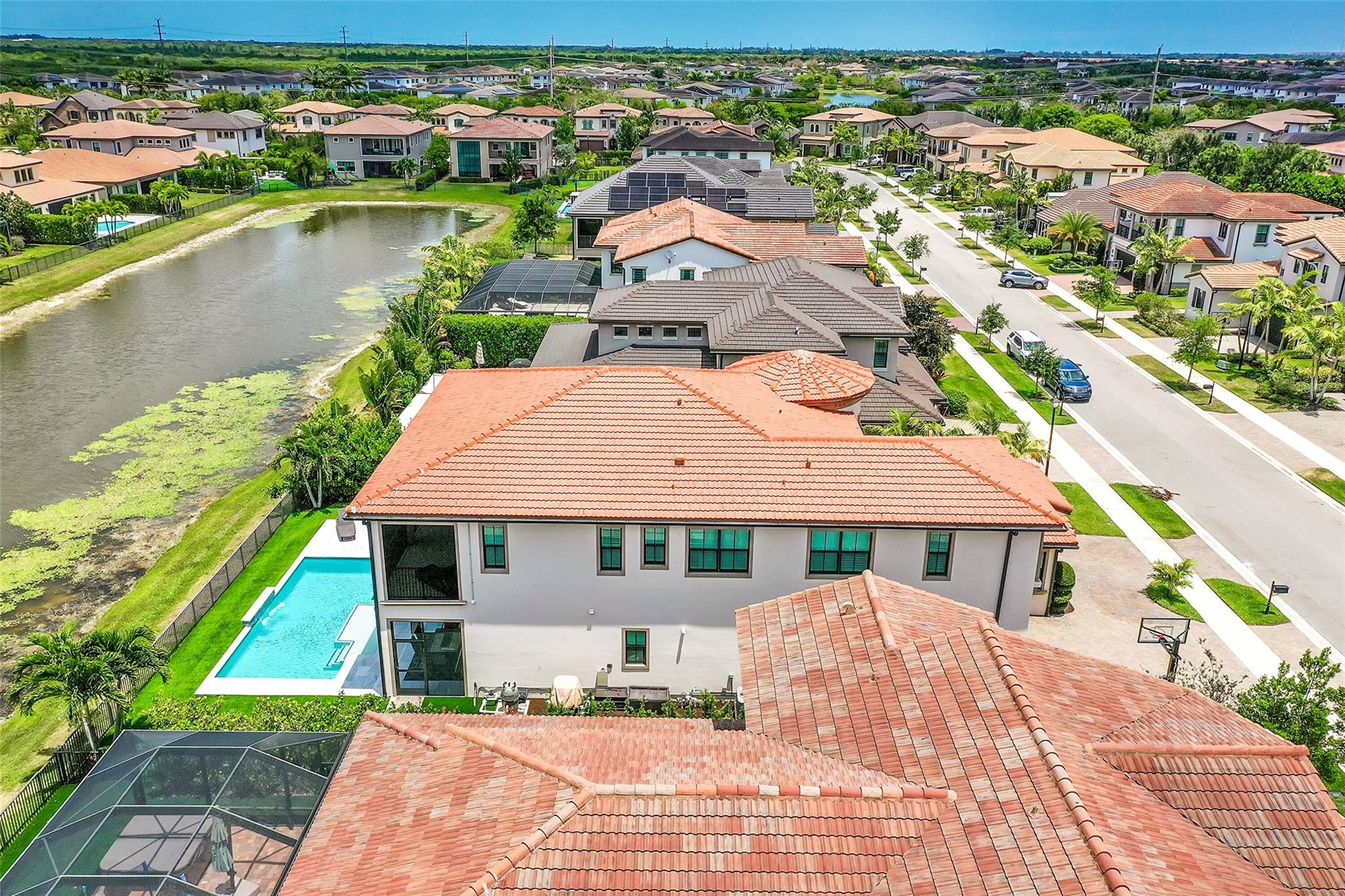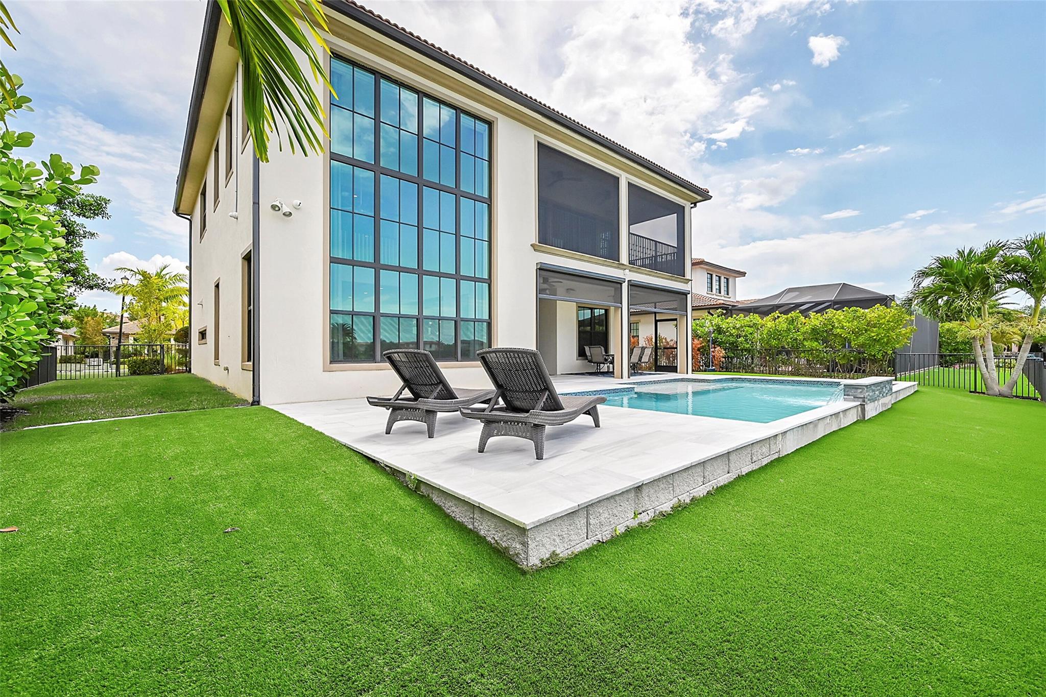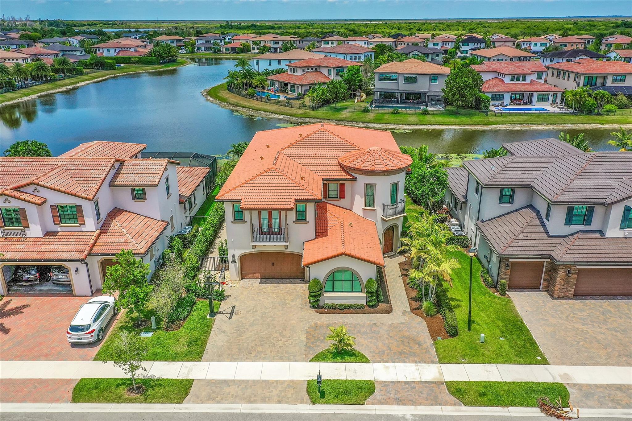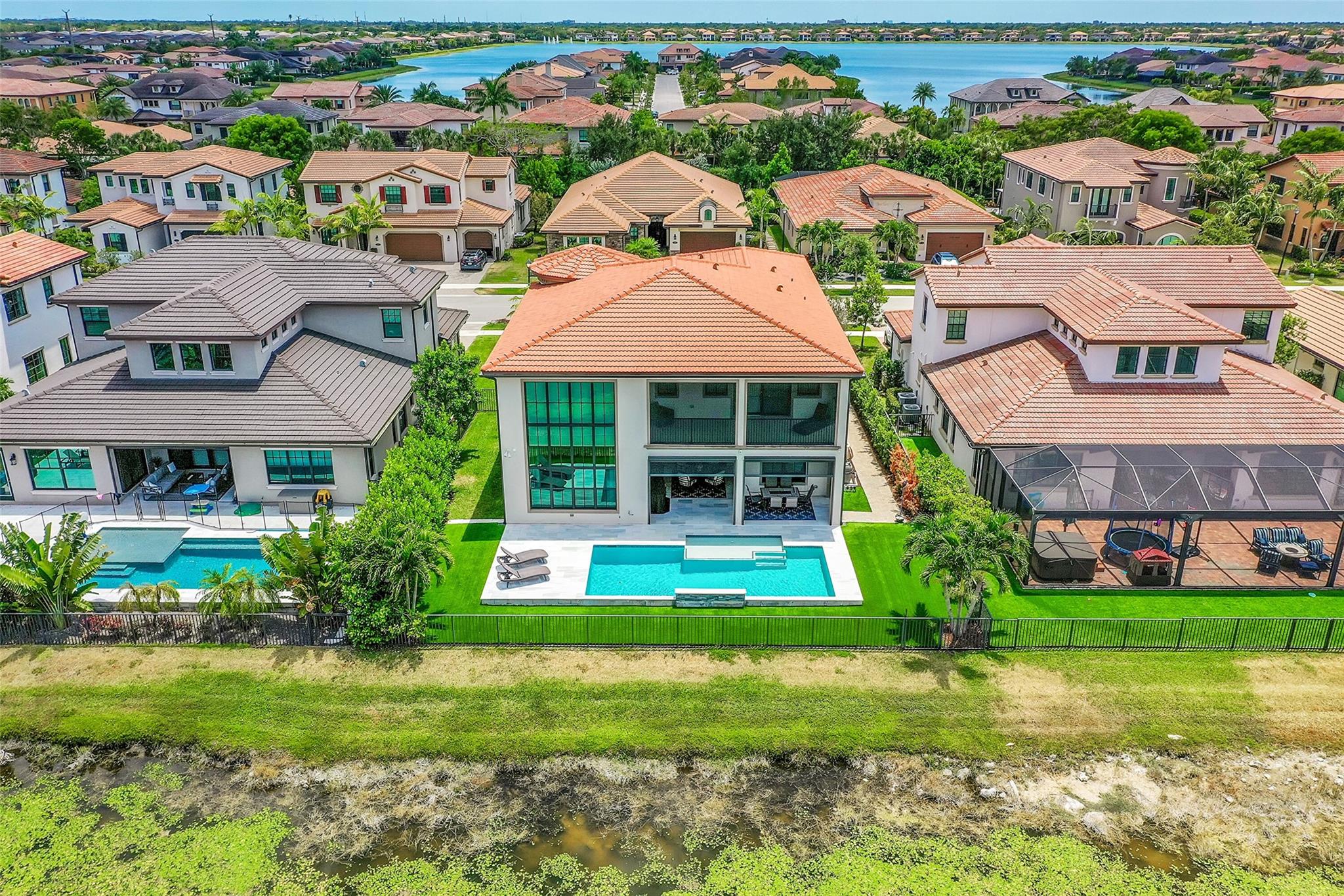 This luxurious 2 story home is nestled in the gated Watercrest community, boasting 5 bedrooms, 5 and a 1/2 baths, and loft. The newly installed heated pool is a standout, complete with a retractable screen for year-round enjoyment and sand blasted marble pavers/turf for easy maintenance. Wood flooring flows throughout majority of the house, adding warmth and elegance. The first floor includes 2 guest bedrooms with en suites and an additional 1/2 bath. The kitchen is straight out of a magazine and opens up to the family room with custom floor to ceiling windows. The primary room upstairs offers a screened-in balcony with stunning water views. Generator that powers the complete home. Watercrest community amenities enhance this homes appeal, including a clubhouse, gym, tot lot, & pool/grills.