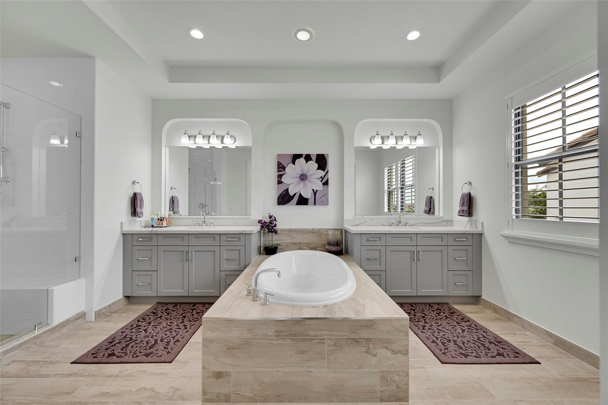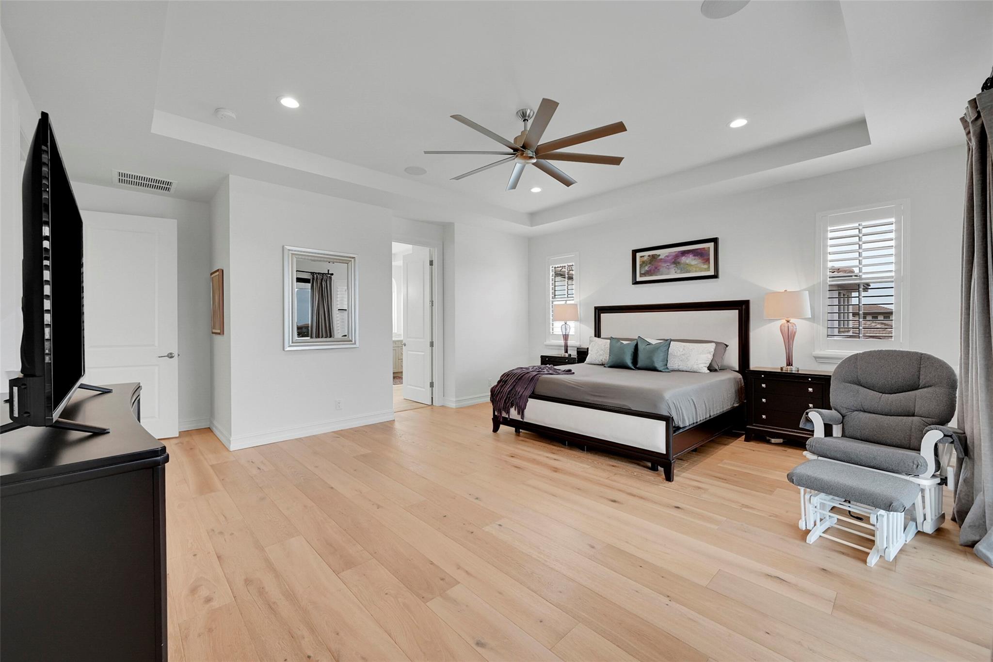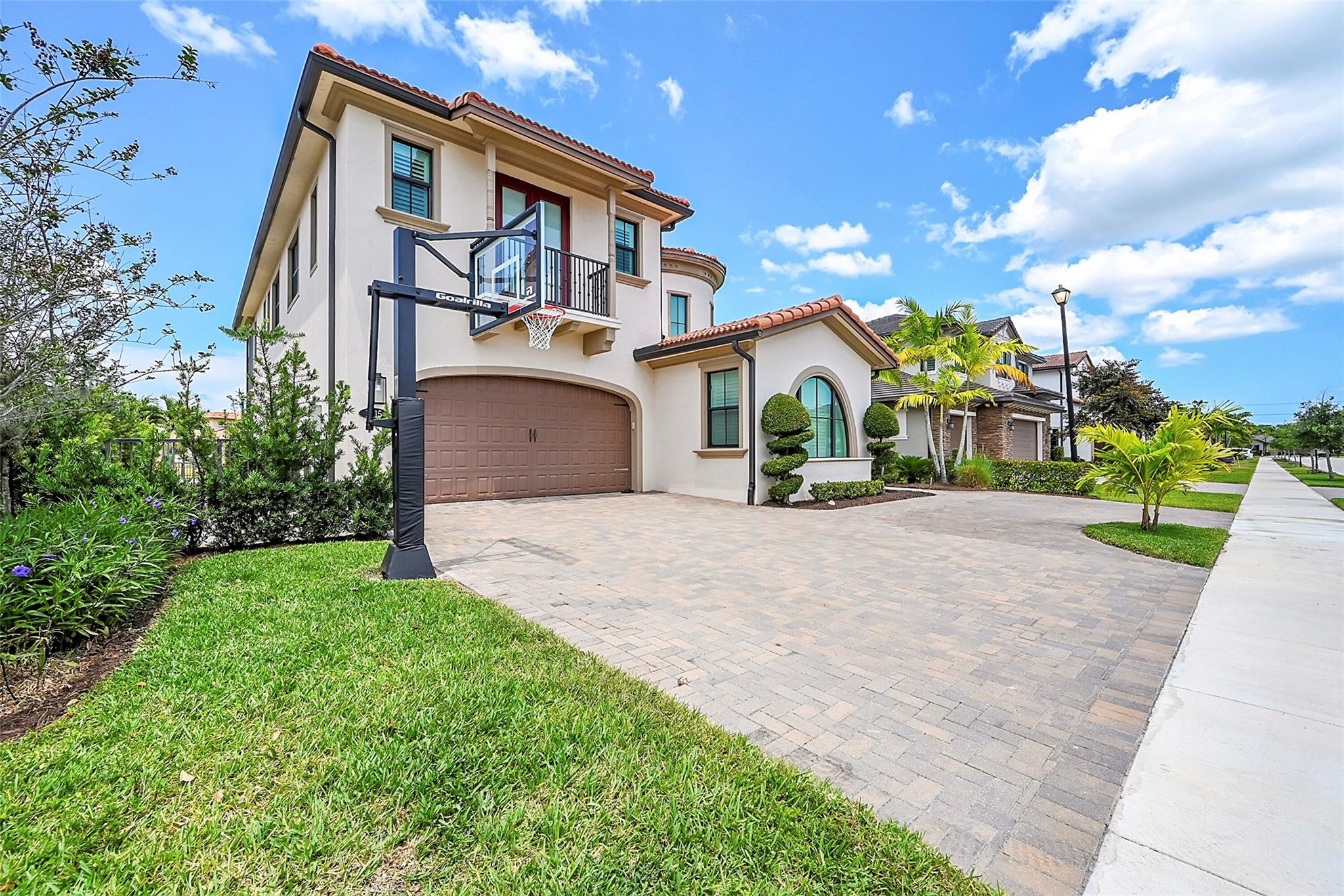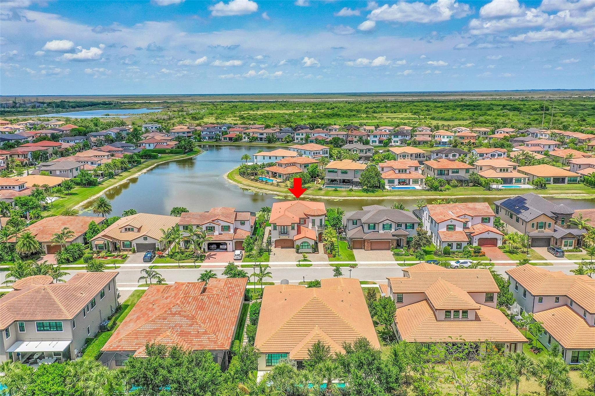 This luxurious 2 story home is nestled in the gated Watercrest community, boasting 5 bedrooms, 5 and a 1/2 baths, and loft. The newly installed heated pool is a standout, complete with a retractable screen for year-round enjoyment and sand blasted marble pavers/turf for easy maintenance. Wood flooring flows throughout majority of the house, adding warmth and elegance. The first floor includes 2 guest bedrooms with en suites and an additional 1/2 bath. The kitchen is straight out of a magazine and opens up to the family room with custom floor to ceiling windows. The primary room upstairs offers a screened-in balcony with stunning water views. Generator that powers the complete home. Watercrest community amenities enhance this homes appeal, including a clubhouse, gym, tot lot, & pool/grills.
