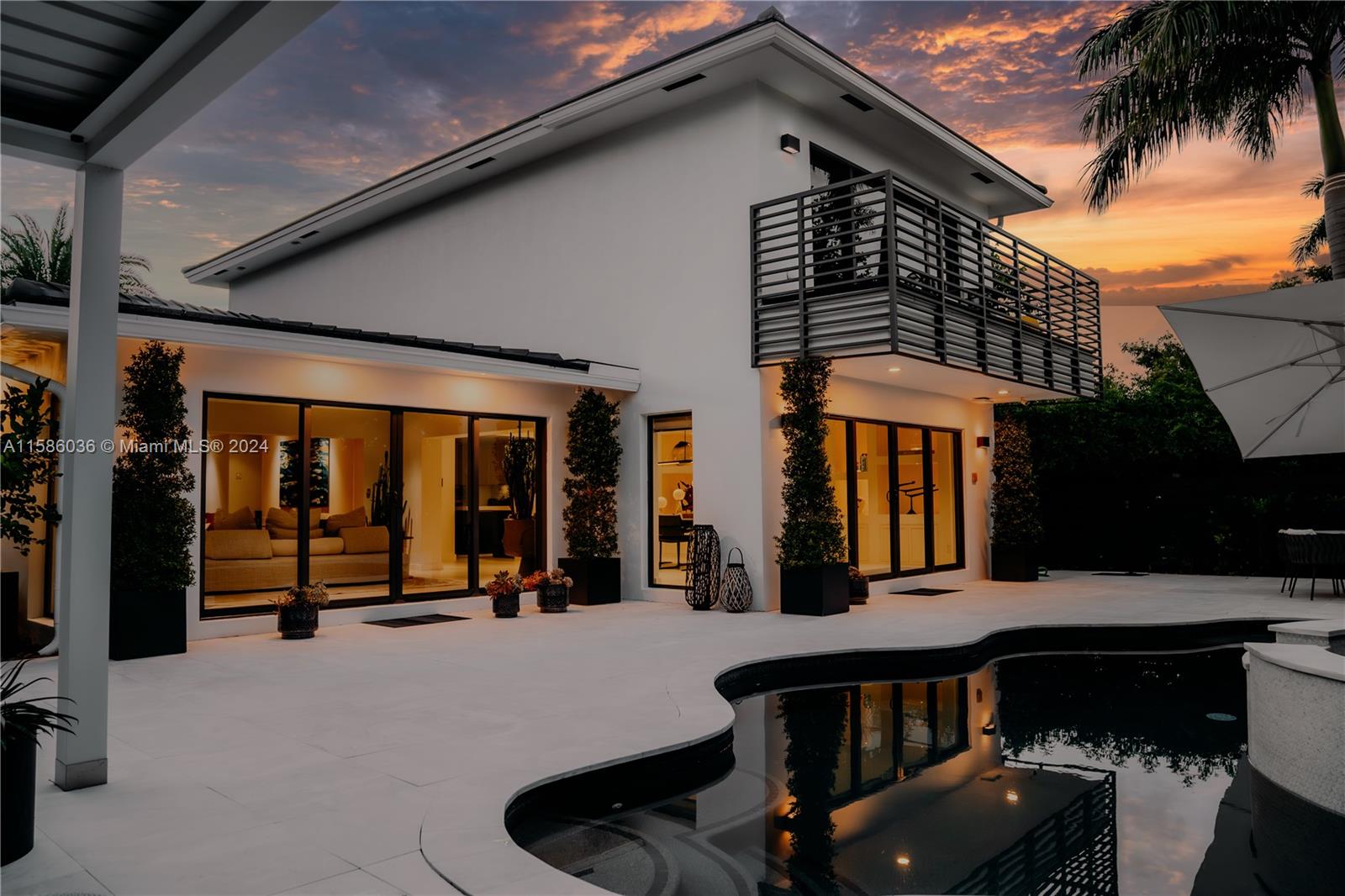 Welcome to the exclusive Seven Isles neighborhood. This home has been designed w/ the utmost attention to detail & a focus on providing a luxurious and comfortable living experience. From the curated design by a noted NYC Design group to the top-of-the-line kitchen appliances & Control4 home automation system, every aspect has been carefully crafted to enhance convenience & modern living.The outdoor space w/ Cararra Marble pool decking & a powered louvered shade structure sounds like an oasis where one can unwind & entertain guests in style. Primary bedroom features vaulted ceilings, custom Poliform Italian closet, balcony overlooking the pool offers a private sanctuary within the home. This residence embodies luxury, sophistication & tranquility, making it a truly desirable haven