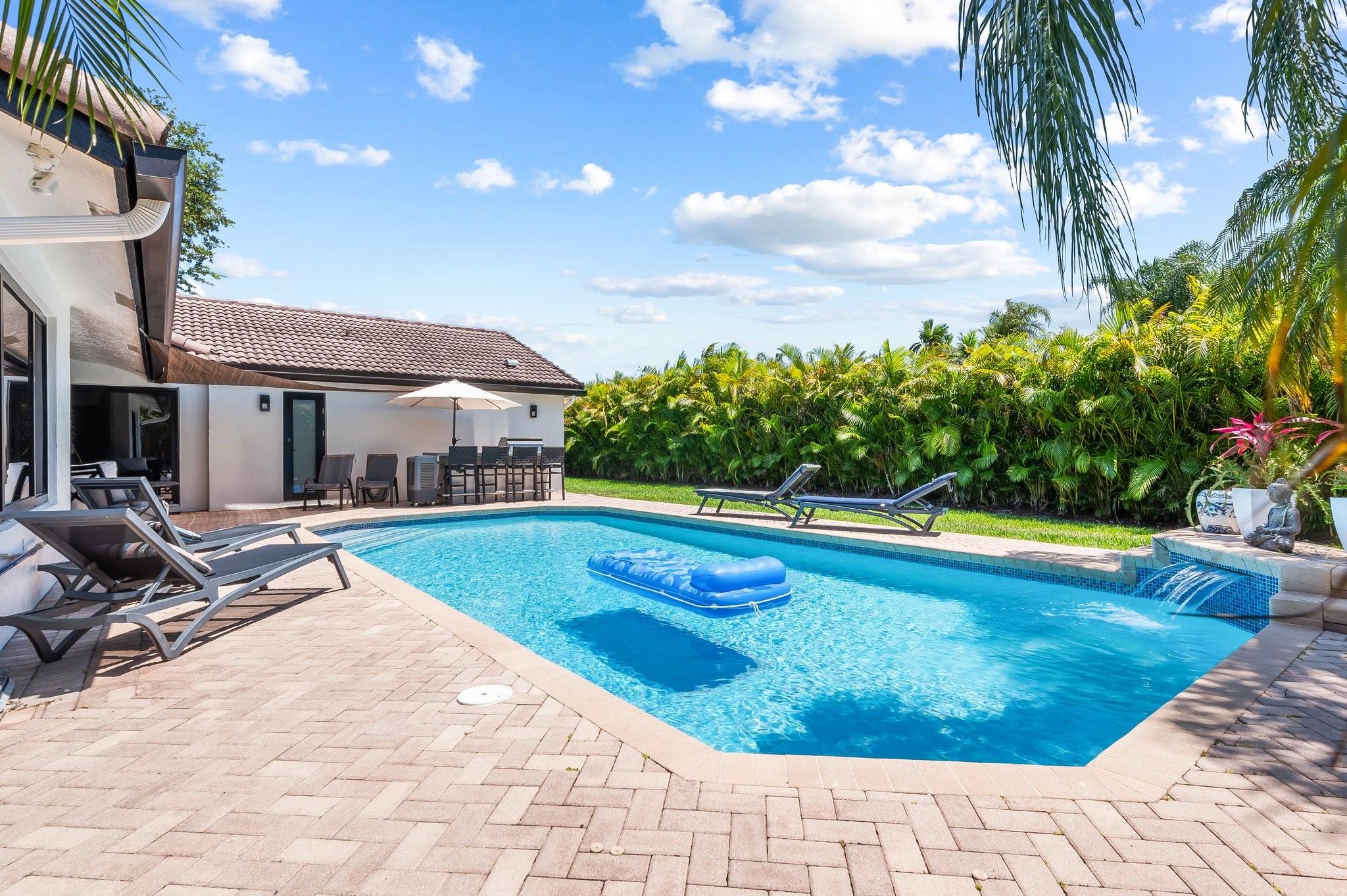 Nestled on an oversized 14,000 square foot corner lot, this 4 bedroom, 2.5-bathroom home with heated saltwater pool in Westport has been completely renovated. A circular drive dominates the front yard. Walk into the living room through the custom 11 ft impact glass front door. A beautiful wet bar with quartz counters and black granite sink is the focal point of the living room. The master suite boasts two walk-in closets, steam shower with smart controls, and a freestanding jacuzzi tub. Home has the additional advantage of being a split plan. The kitchen is a culinary delight, with quartz counters, stainless steel appliances, and custom wood cabinetry and a breakfast bar in addition to a breakfast nook. Impact windows and doors throughout. Temperature-controlled garage with an epoxy floor.
