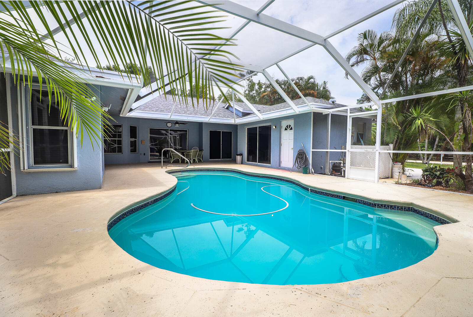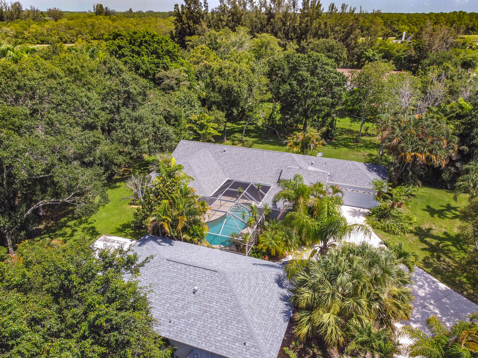 This courtyard-style CBS home on a 1.17-acre lot in Palm Beach Country Estates features a 3BR/3.5BA/2-car garage main house and additional detached 1BR/1BA/1-car garage guest house that was newly-remodeled in June 2025. There aren't many opportunities to own a property like this one. In addition to being in an area of PBCE that is extra peaceful - far from the highway - it is located just steps away from the spectacular Riverbend Park - featuring many miles of tree-shaded hiking, biking, and horse trails. The full-featured guest home is perfect for in-laws or possible short/long-term rental income - with 700sf of living area (included in the total) and its own screened porch and garage. Newer roof on the main house (2018) and brand-new roof on the guest house (June 2025).