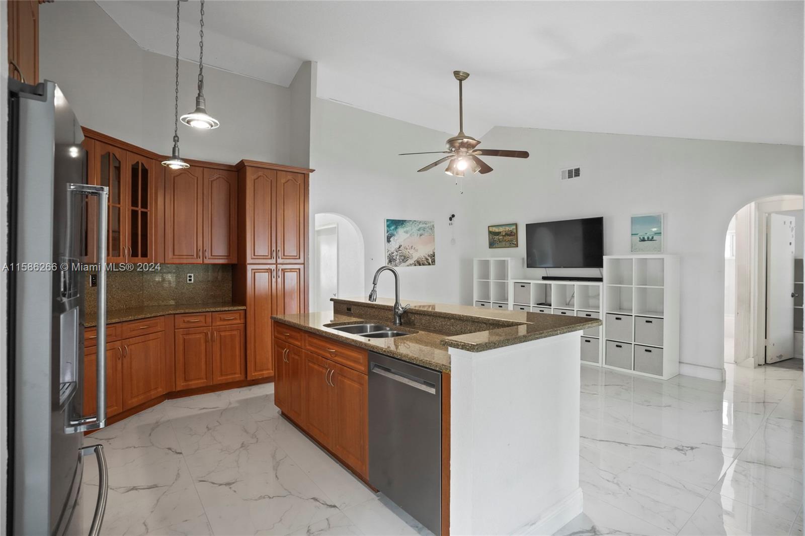 Run don't walk to this delightful recently upgraded 3 Bedroom 2 Baths Single Family Home located in the desirable Turtle Bay community in central Miramar. Thoughtfully updated with modern finishings such as knockdown texture walls, 24x24 porcelain tiles in the main living areas, laminate flooring in the bedrooms, spa like bathrooms, a/c and water heater are 2018, no poly pipes. Enjoy the benefits of impact windows and solar panels, ensuring both safety and energy efficiency. The property boasts a beautiful landscape with fruit trees, creating a serene environment. This home is upgraded and ready for you to move in and enjoy!