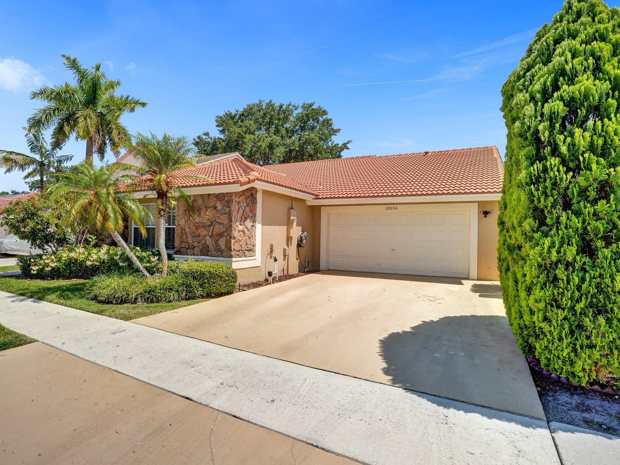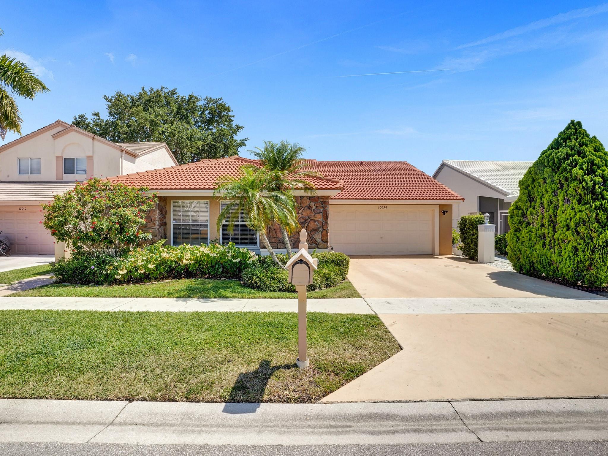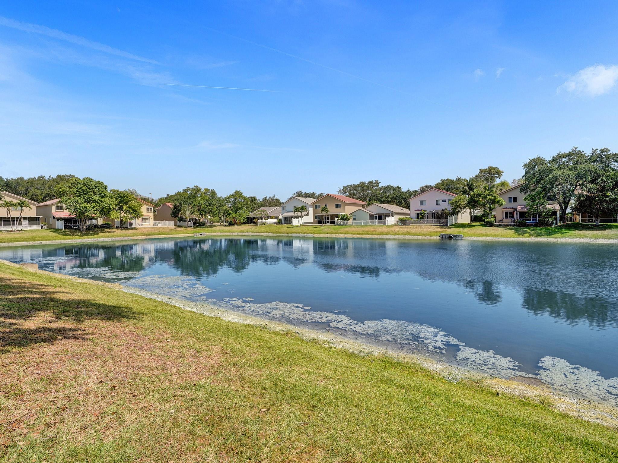 AMAZING WATERFRONT Home in Boca Springs Features 3 Bedrooms, 2 Bathrooms, a 2 Car Garage and Barrel Tile Roof. Step Inside the Living Room with an Open Floor Plan and Lots of Natural Light Featuring Tile Floors and Ample Space for Relaxing or Entertaining. Kitchen Features Large Counter with Breakfast Bar, Passthrough to Dining Room and Plenty of Cabinets. Primary Bedroom has Laminate Floors, Large Walk-In Closet, En Suite Bathroom with Dual Sinks, Vanity and Tub/Shower Combo. Backyard has Tiled Patio Surrounded by Lush Greenery, South Facing where Skies Reflect Beautifully on the Water's Surface. This Home Features a Laundry Room with Side by Side Washer and Dryer, Window Blinds and Plenty of Storage. Boca Springs has a Community Pool, Playground, Tennis, Basketball and Volleyball Courts.