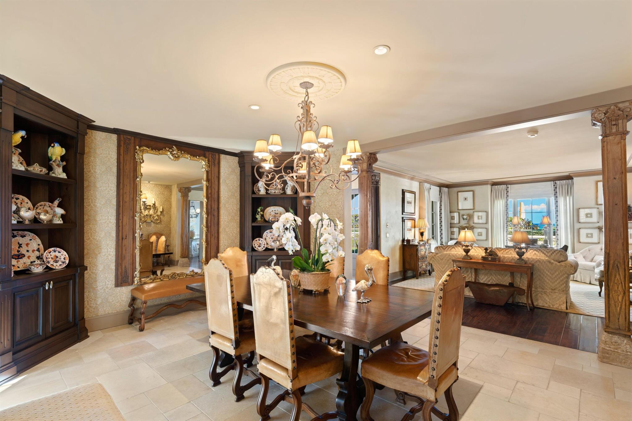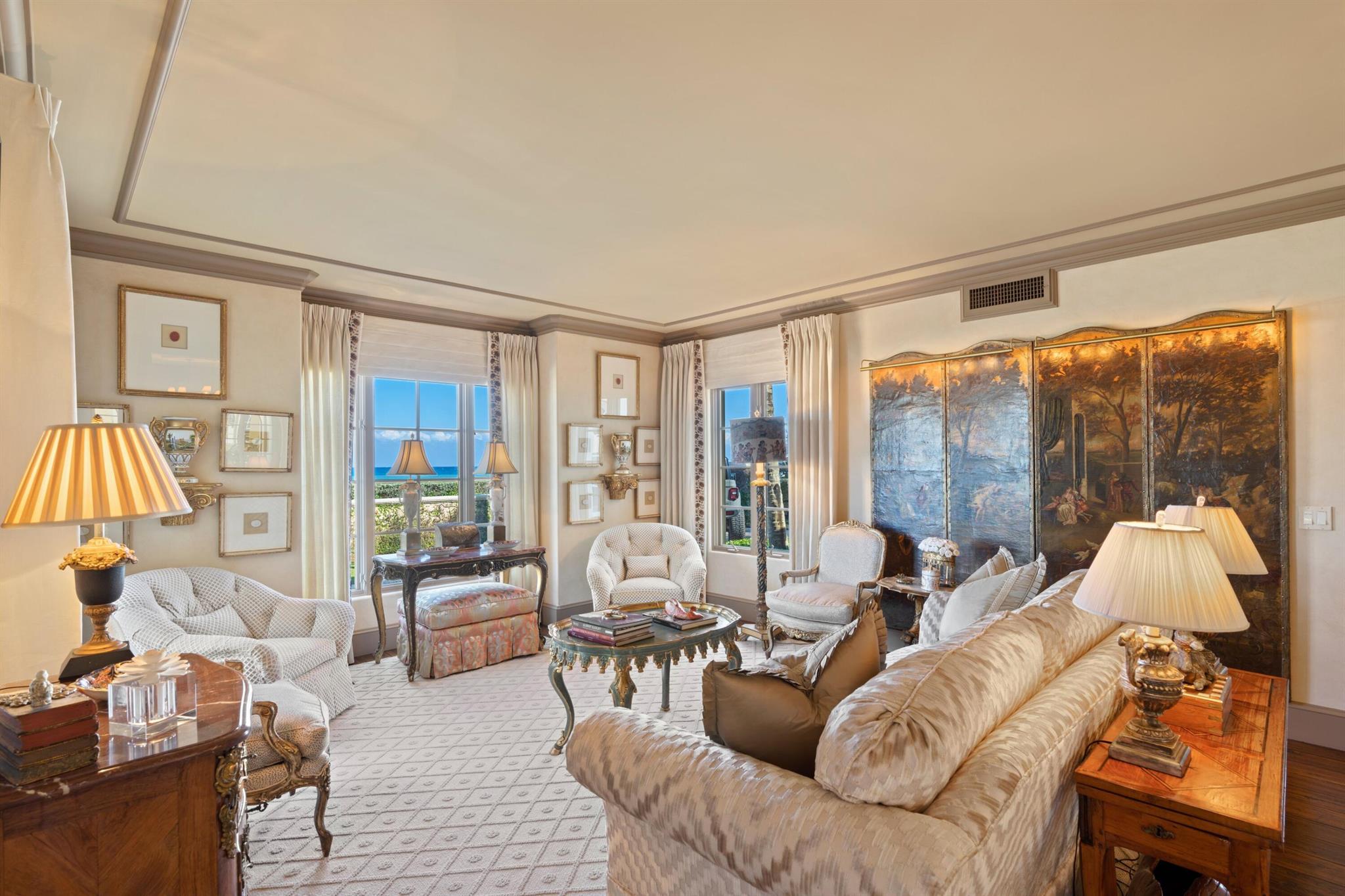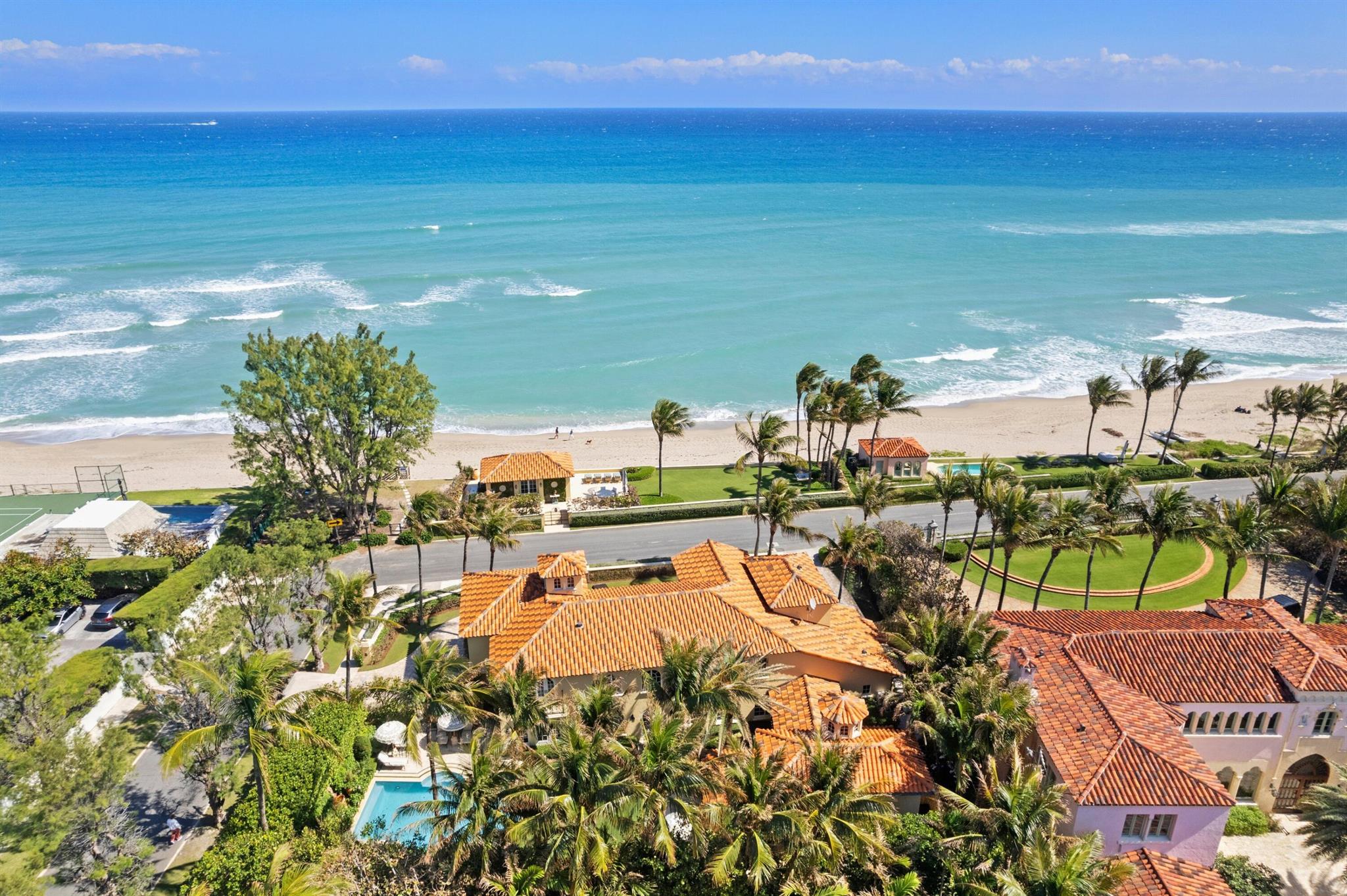 Beautiful Ocean Front home that has been lovingly cared for with exquisite details of the highest finishes. This 5 bedroom, 6 bath, 2 half bath home features a formal living room, formal dining room, eat in kitchen with 2 powder rooms, a family room with wet bar and powder room. Down the long-vaulted ceiling hallway across the back of the home there is another wet bar, a formal living room and formal dining room. The kitchen features a Wolf stove, two Miele dishwashers, Sub Zero refrigerator, a Fisher Pykel refrigerator drawer, a laundry room and pantry and the second powder room up the grand staircase to the second floor where there is a large Master Bedroom with incredible ocean views and a large bath with dual closets and sinks, water closet, a soaking tub and large shower: SEE MORE