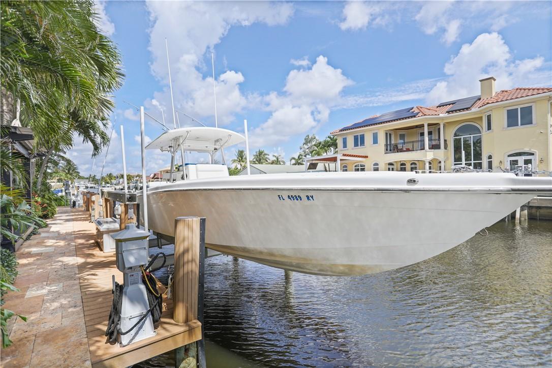 Welcome to Paradise! Completely remodeled and furnished stunning home ready to entertain! This home sits on a 90-foot-wide canal only 5 homes away from the intracoastal. This home offers a chef's gourmet kitchen with natural gas range, Bosch dishwasher, custom built refrigerator, custom cabinets, and a large quartz countertop, not to mention a natural gas generator for the entire home. This house consist of hurricane impact windows with a new metal roof installed in 2018. The Tropical oasis surrounding the pool and spa overlooks the canal with custom outdoor lighting, stone marble deck, and a mosquito control system. Park your boat on the new 85ft Boat Dock, with 16,000 lb cradle boat lift, and covered sitting area overlooking entire backyard.