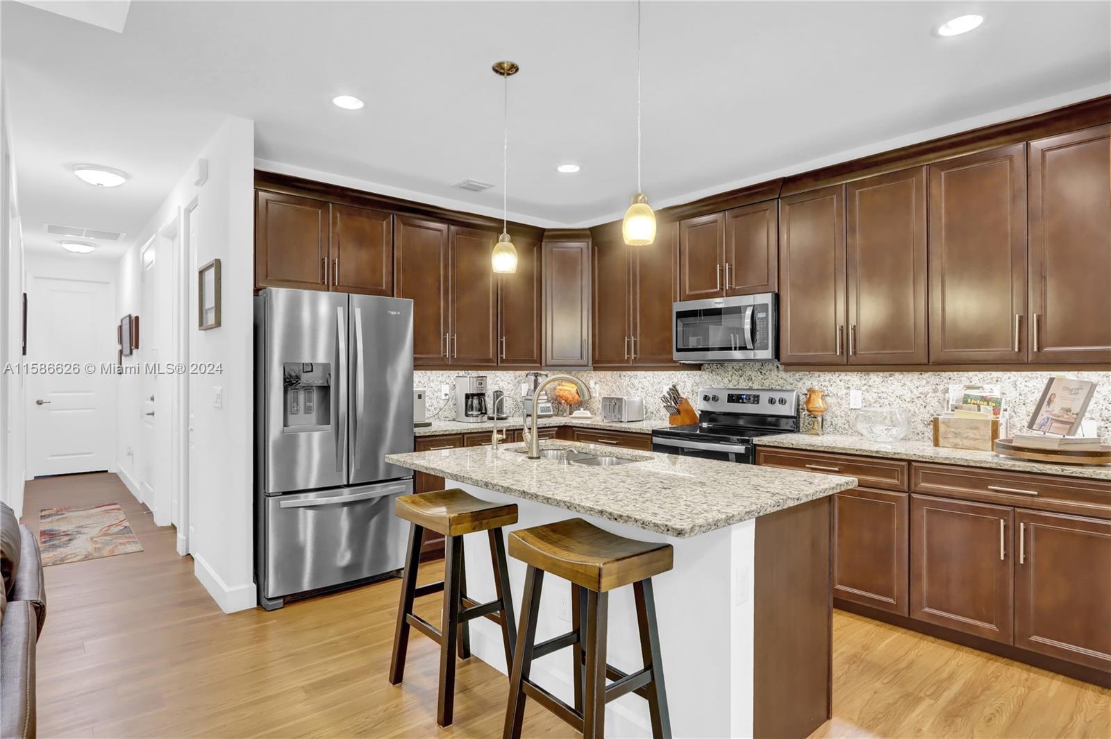Gorgeous home built in 2020 with over 30K in upgrades, located in an end lot, 3 bedroom and 2-bathroom, laminate floors throughout, owner's bedroom with walk-in custom closet, kitchen features upgraded cabinets with pullout shelving, granite countertop and stainless-steel appliances, water filtration system for cooking, hurricane impact glass, plantation shutters, freshly sealed driveway and exterior painting. Gated community with swimming pool, Hoa fee includes, water, cable, internet, lawn maintenance, (ring alarm is included). Excellent location near highways and close to the beach. Don't miss it!