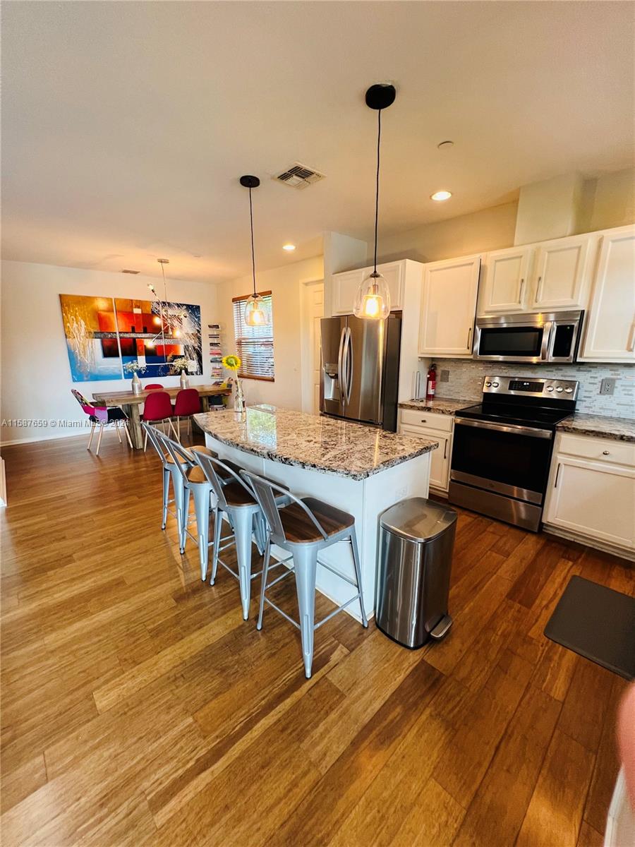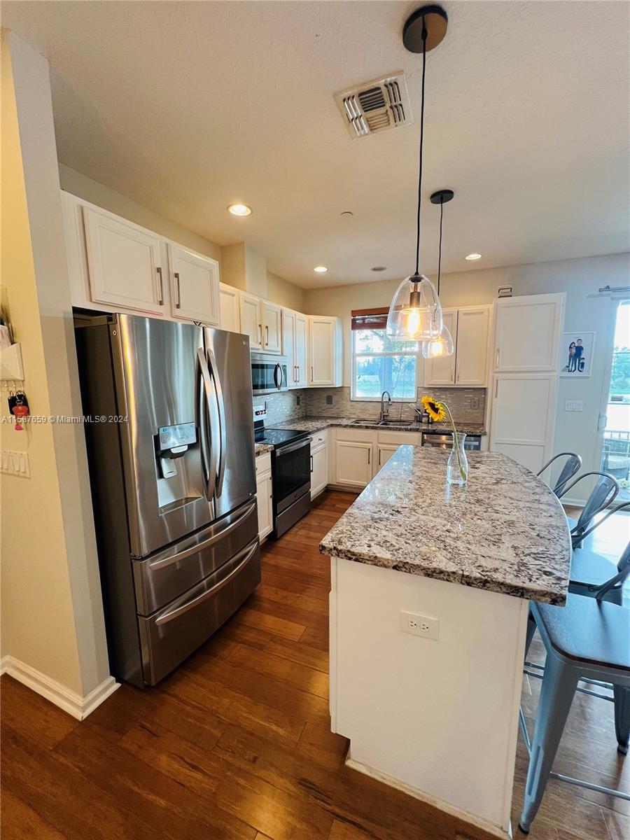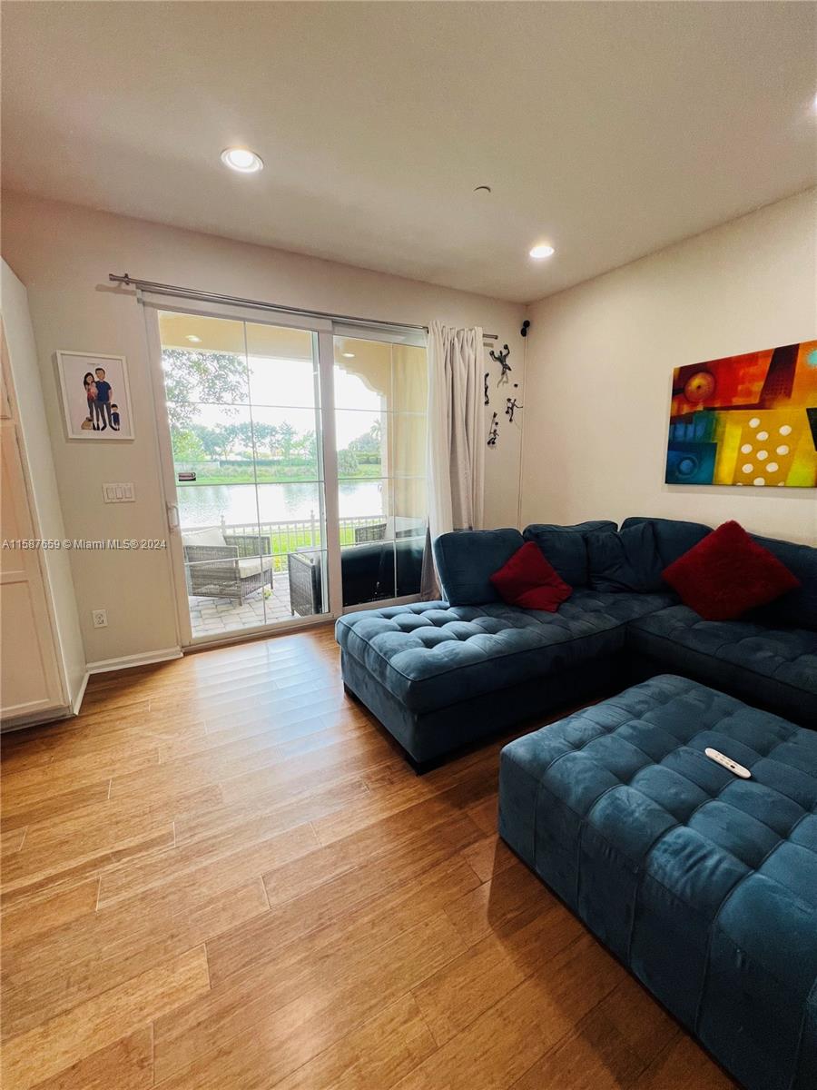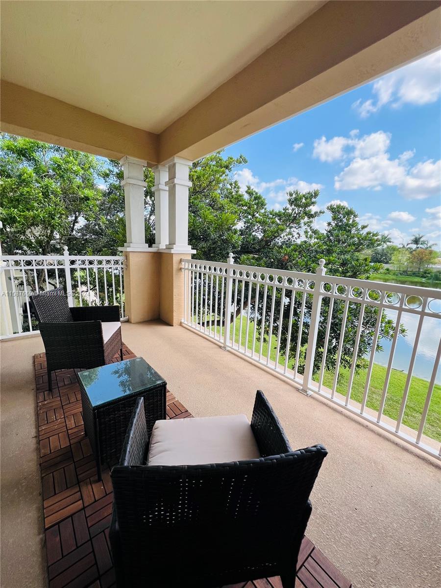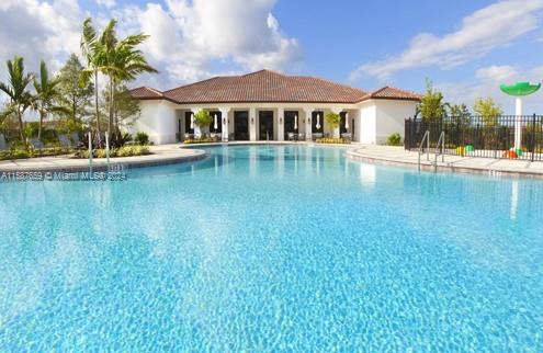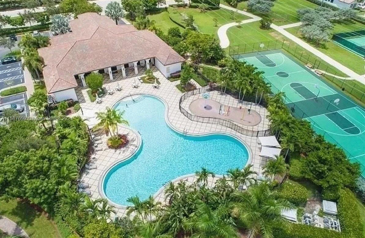 Discover refined living in this 1450 sqft townhouse, beautifully renovated with an open-concept kitchen, laminate flooring throughout, and impact windows. Features include integrated CCTV, infrared AC system, three bedrooms upstairs with a spacious master suite, balcony with lake views, and upper-floor laundry. Includes two parking spaces. Enjoy community amenities like a timed pool, clubhouse, gym, large pool, splash park, tennis, and basketball courts. Excellently maintained with paths connecting to Monterra.