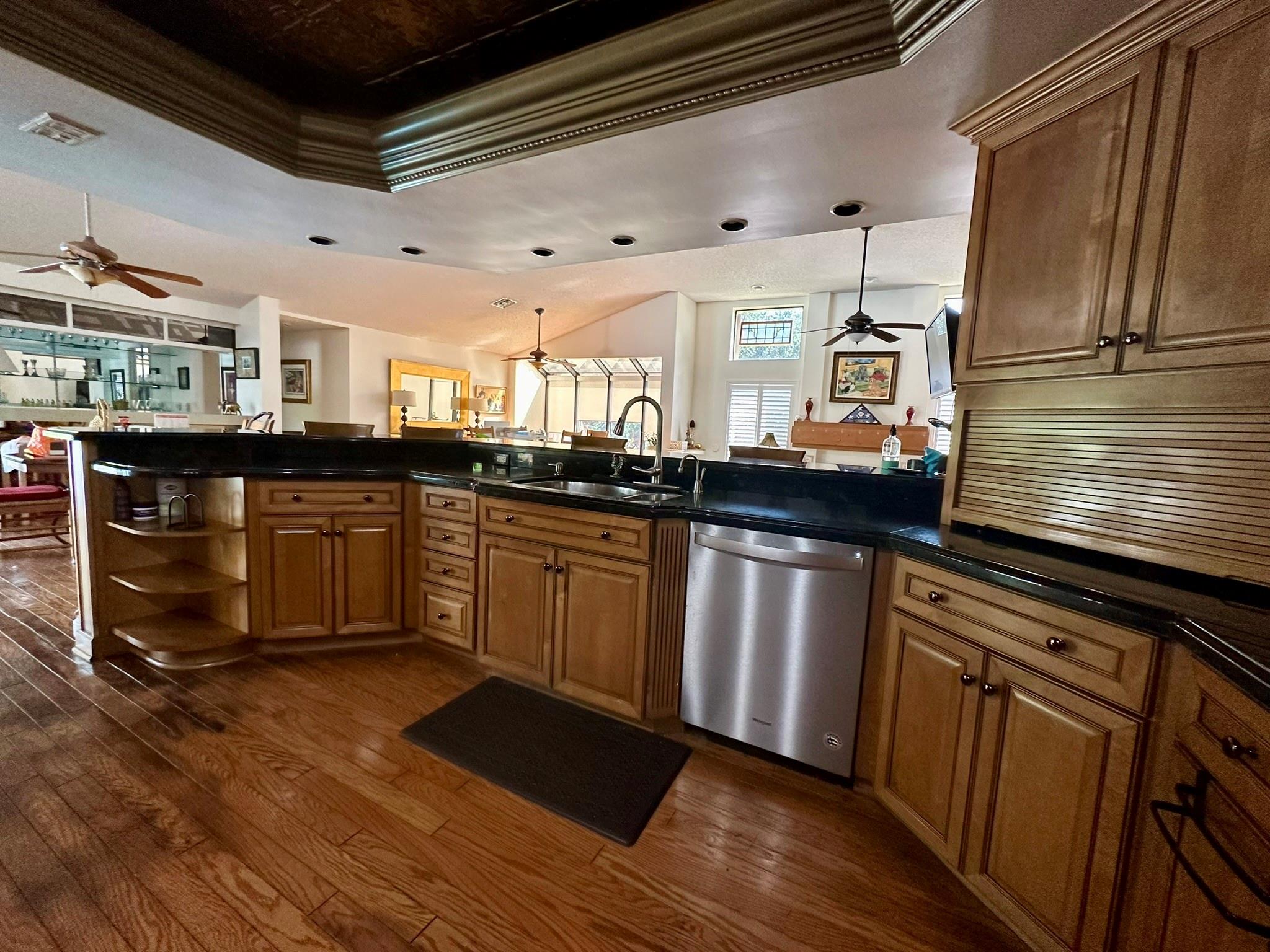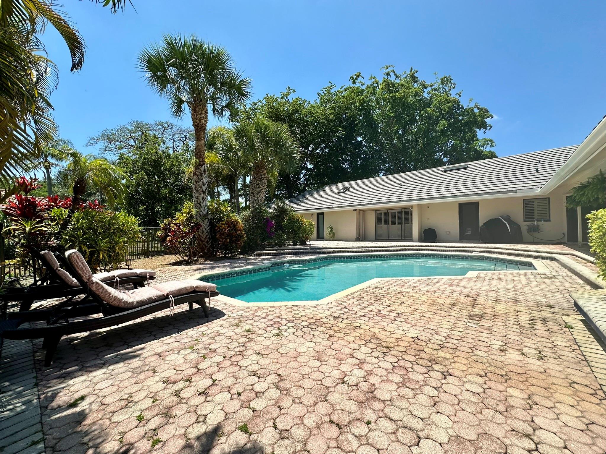 Situated on the corner of a cul-de-sac, this .8 acre estate boasts an expanded version of the desirable Kingston model--1700+ SF addition incl. bedroom, full bath, large FR/kitchenette and separate entrance, as well as access to original home--perfect for parents, au pair, or older children! Home features split plan w/office adjacent to MBR & 3 BR/2BA in children's wing. Outstanding features incl: expanded, upgraded kitchen w/granite counters & stainless steel appliances; full wet bar; greenhouse window; area designed for pool table; wood-burning fireplace; spacious master suite w/gorgeous, updated MBA; plantation shutters for entire home; impact glass & accordion shutters; full house generator; 4 CAR GARAGE; large lanai, beautiful pool and expansive patio!