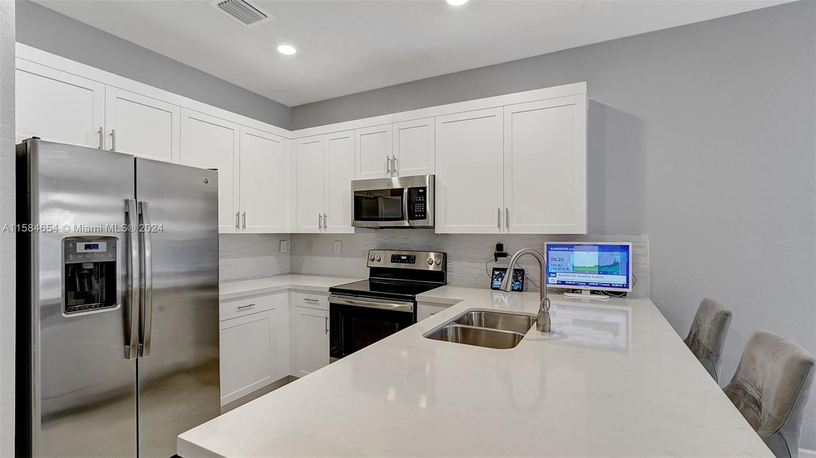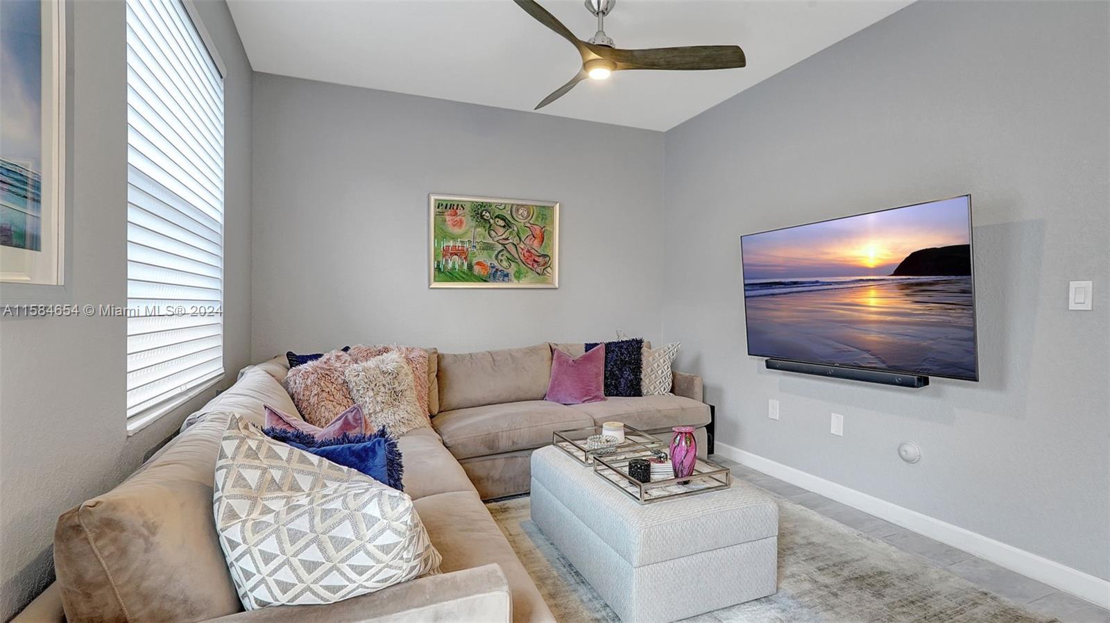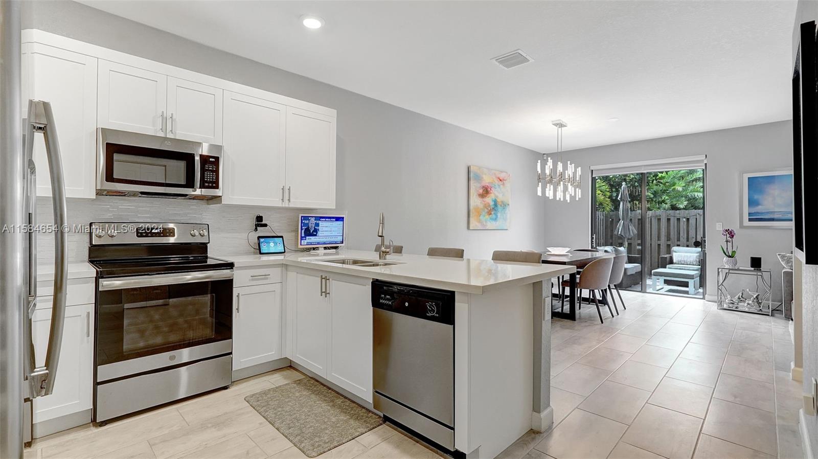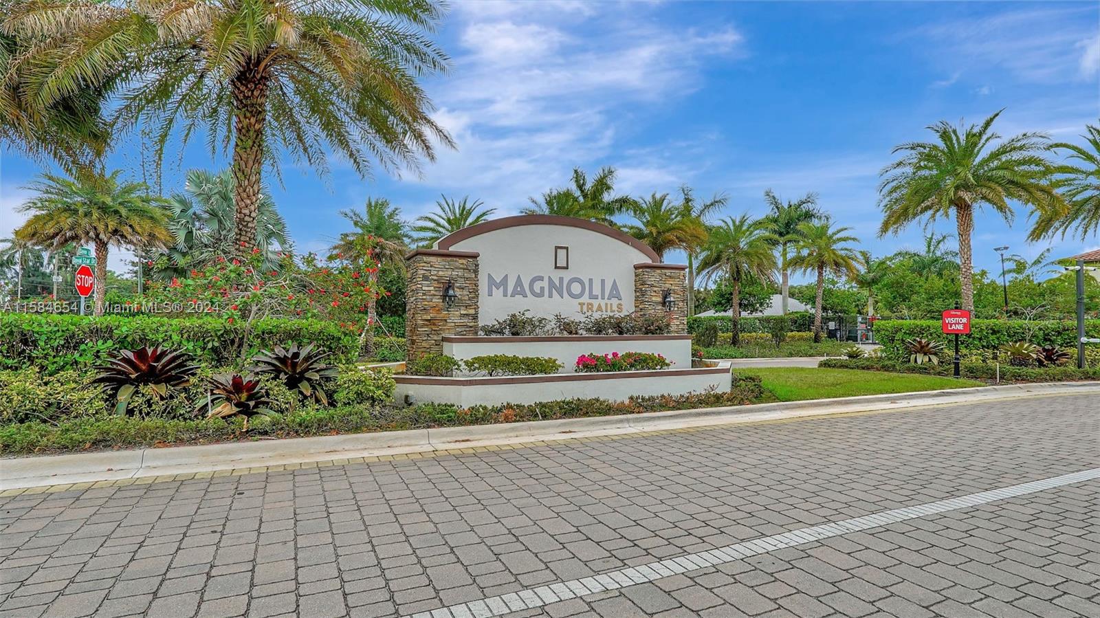 Stunning 3 bed 3 full bath townhome, 1 car garage in gated Magnolia Trails! Built in 2018 - Every upgrade imaginable! Open kitchen w/ wood cabinetry & molding, SS appliances, Quartz countertops & upgraded backsplash. Rectified tile downstairs & Mohawk pet & stain resistant carpet with upgraded padding upstairs (installed 2023). Primary bath has custom cabinets & drawers. Quartz countertops & upgraded hardware in all baths. Closets completely customized w/ built ins! Master closet is customized with built in drawers, valet hooks, hanging rack and movable shelving to fit your desired needs. High end, lighted ceiling fans in the office, guest bedroom, bathrooms & family room. Private, fenced in backyard w/ pavers. Smart home w/ Ring alarm system. Accordion hurricane shutters. Community pool!