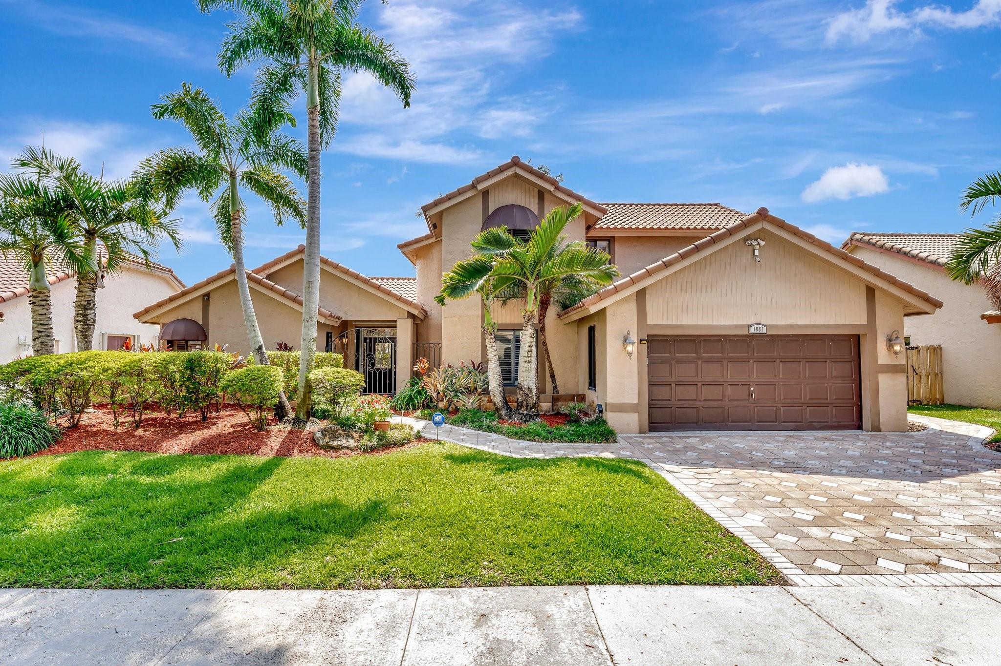 Incredible opportunity to own in the prestigious community of Fox Run at Jacaranda. Centrally located in the heart of West Plantation with beautiful tree lined streets. As you enter you will find a spacious 4 bedroom, 3 bath , 2 car garage, open floor plan with wide views of the serene lake, pool area and outdoor kitchen for lounging and entertaining. Vaulted ceilings to enhance feeling of space, large primary bedroom plus 2nd bedroom and full bath on first level. Prepare meals in your gourmet kitchen with views of your pool and lake. Upstairs you will find 2 additional bedrooms and a full bath. Low HOA, ROOF 2011, AC 2021 and IMPACT WINDOWS and DOORS. Close to all shopping, restaurants and Ft. Lauderdale International airport.