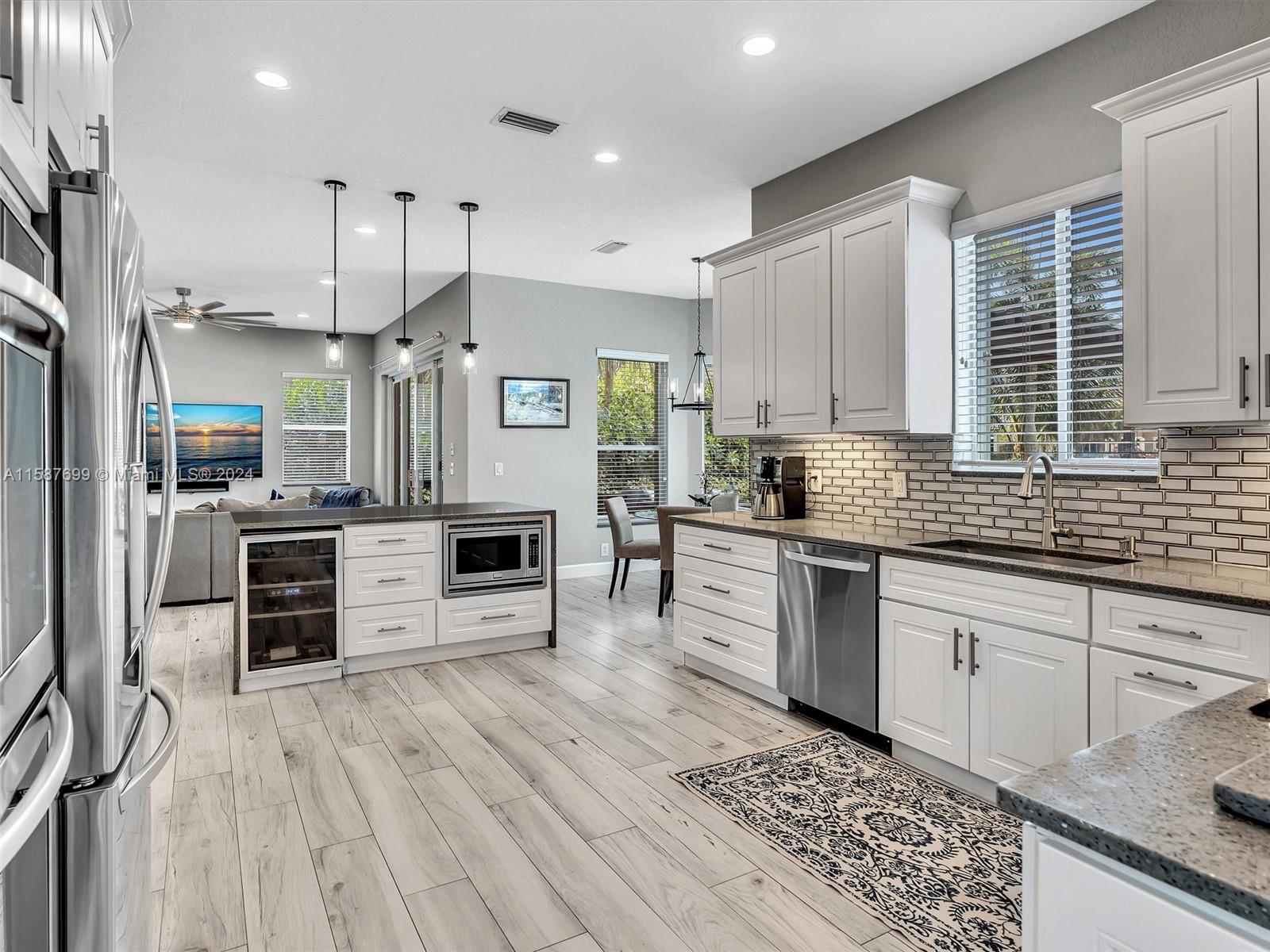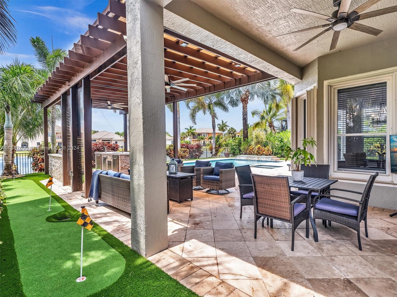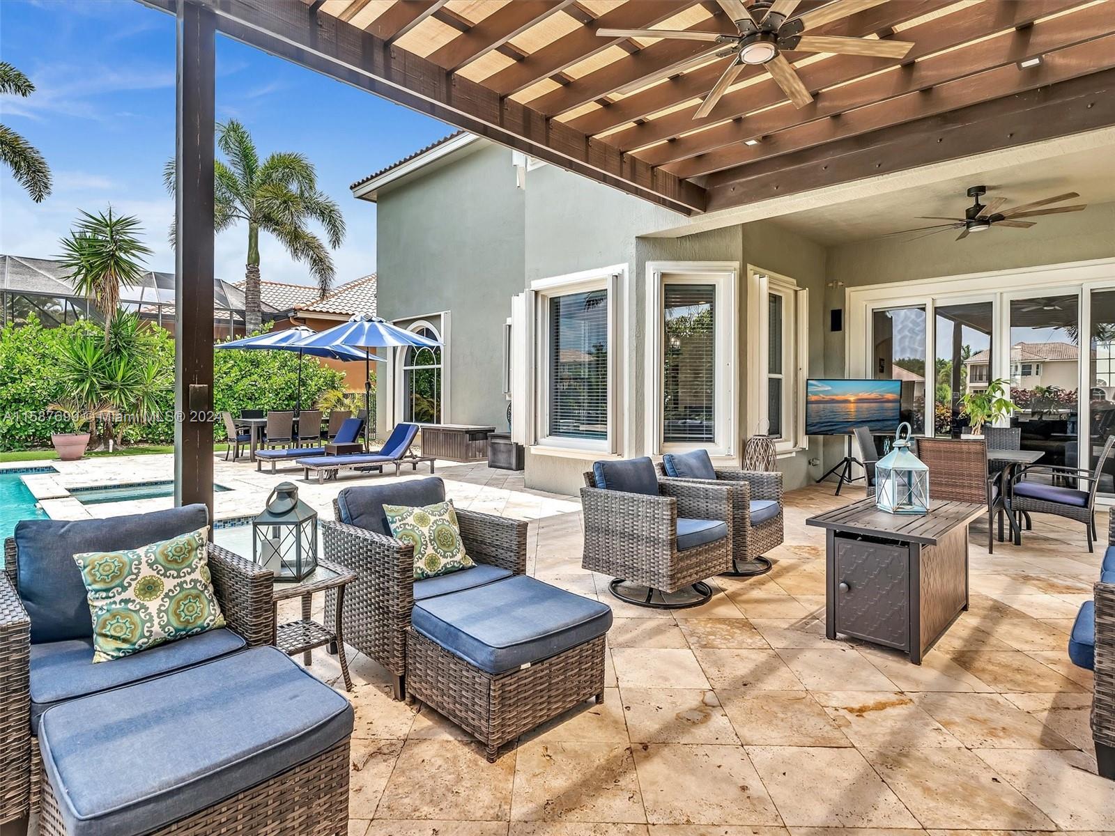 As close to perfection as you can get, this home is a TRUE SHOW STOPPER! From the circular driveway to the most EPIC BACKYARD EVER, you will be stunned w/ this LUXURY ESTATE. The reconfigured upgraded kitchen features shaker style cabinetry w/ Galaxy grey quartz counters & a custom island w/ built in wine cooler. All 4 bathrooms have been remodeled w/ stylish finishes. Step outside and have your breath taken away with the most incredible OUTDOOR OASIS featuring a travertine pool deck, heated salt water chlorinated pool, AstroTurf w/ a mini putting green, lush landscaping, peaceful lakeview . . . & what can only be described as the BEST outdoor living & summer kitchen ever seen!! This is a MUST SEE! Located in prestigious gated Heron Bay w/ highly ranked schools, this home truly has it all!