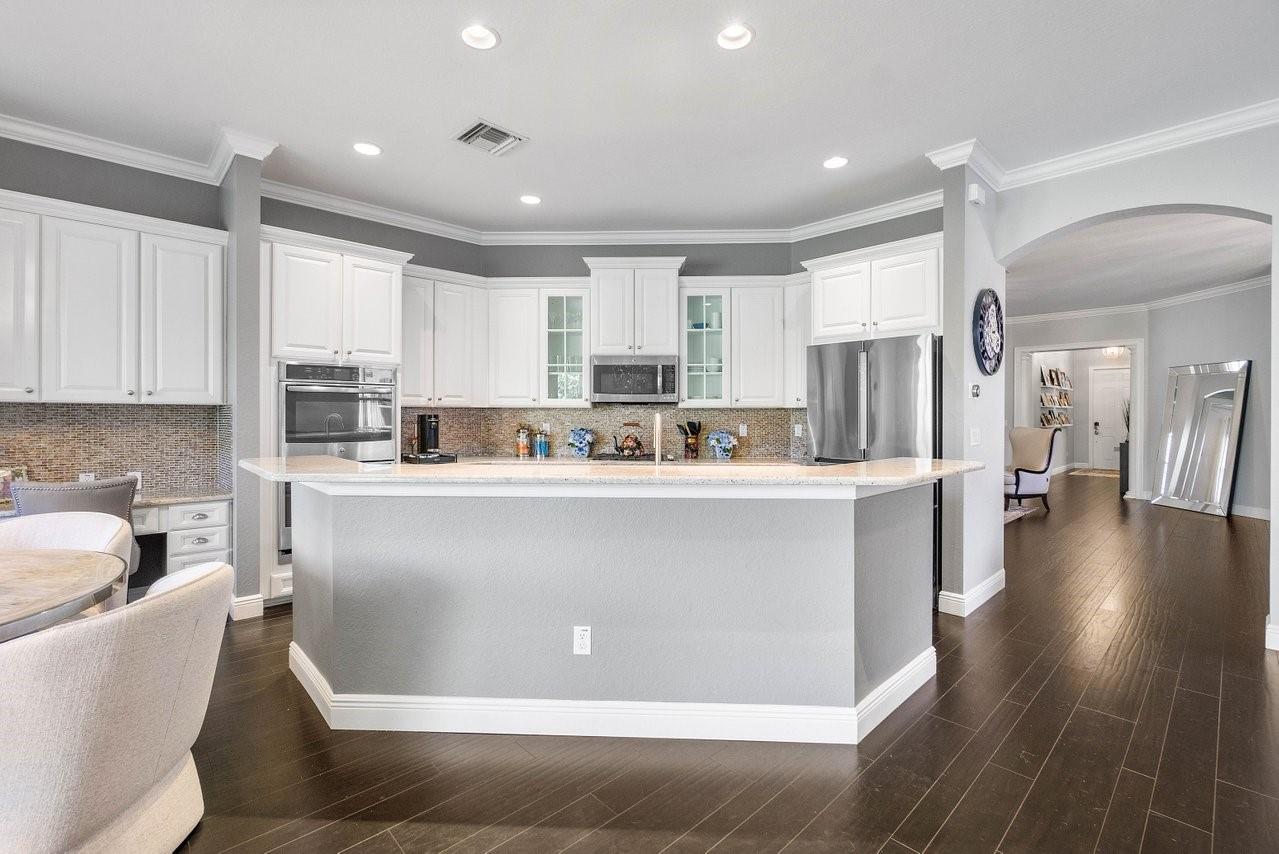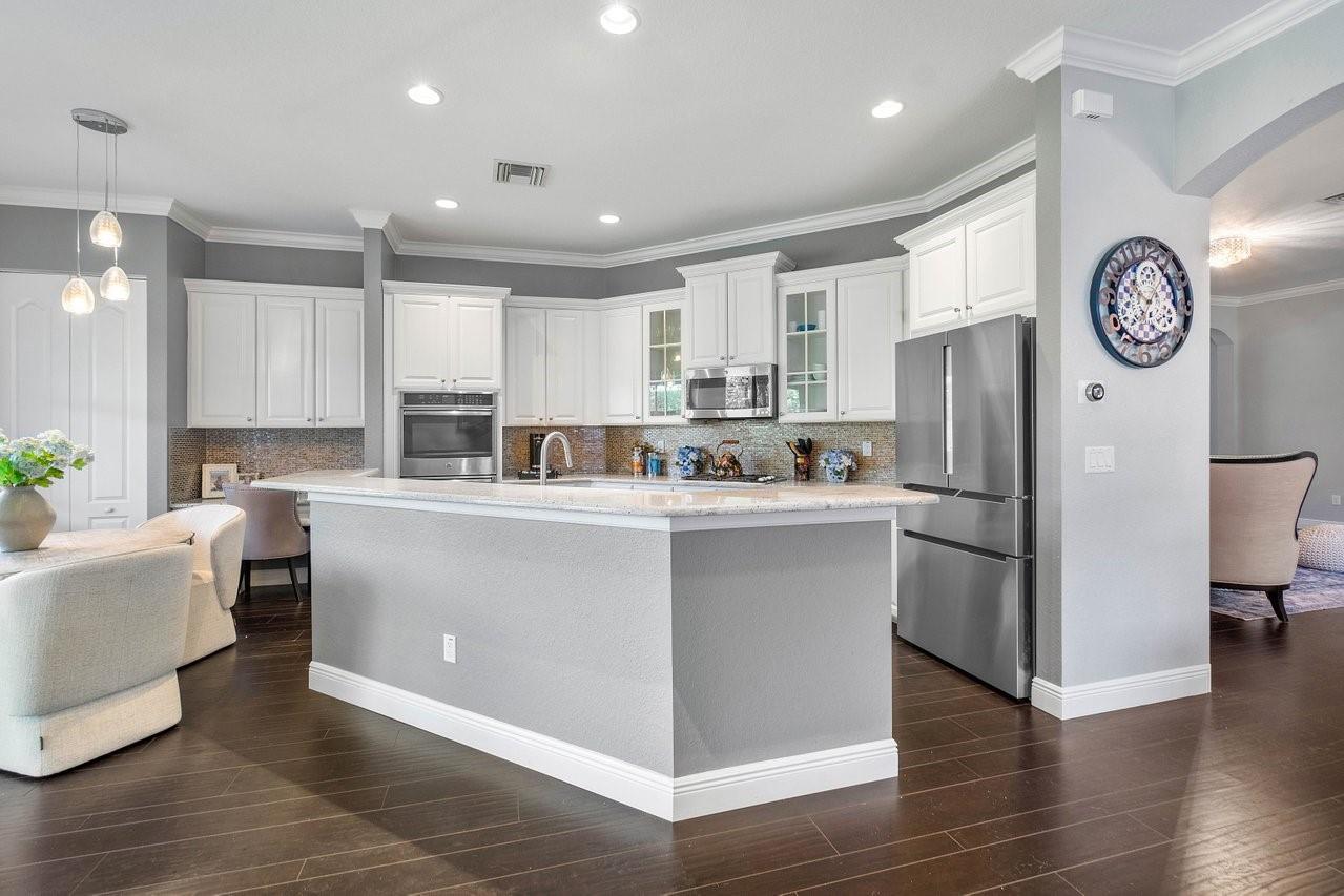Simply a beautiful one story home nestled in one of South Florida's most sought after "Resort Style" communities. Open living areas, a flexible design, gorgeous mill work & fabulous finishes have resulted in the perfect Florida home. A crisp white kitchen features a large island, fabulous granite counters, and SS appliances including a gas stove. The expansive fenced backyard is perfect for outdoor enjoyment, the pets and has plenty of room for a pool. World class amenities include clubhouses, fitness center, sauna, banquet facilities, billiards room, swimming pools, splash pads, playground, basketball and tennis courts. This extraordinary, gated community with Five Star amenities is the gold standard for upscale luxury living in South Florida. Other offerings include impact windows/doors.