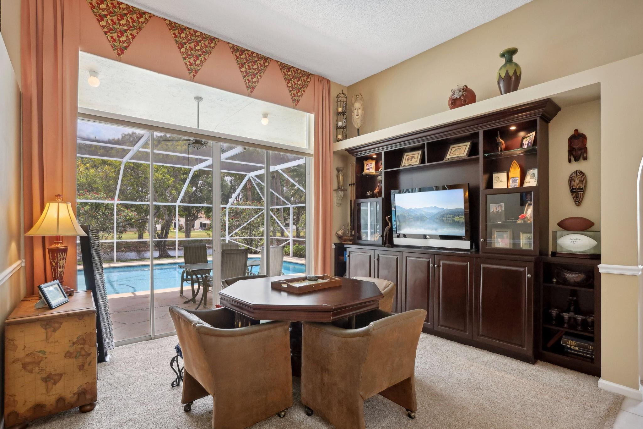 This IS it! Your Pristine single story 5 bedroom waterfront home with 3 car garage located in Much sought after Kensington Glen. Enjoy the Amazing & serene water views from your fully screened lanai or a spot near the shore. Triple split floorplan, Dual AC Zones, 2019 Roof, Volume ceilings, Euro tile entry and pool deck, Solar panel pool heater system, beautiful kitchen with stainless appliances, Plantation shutters, all large bedrooms, walk in closets, Gorgeous custom wall unit in living room just completed 2022. PHENOMENAL BACK YARD WITH THE MOST SERENE VIEWS THAT GO ON FOREVER. 5th bedroom is used as office. Tons of storage. Welcome Home !!!