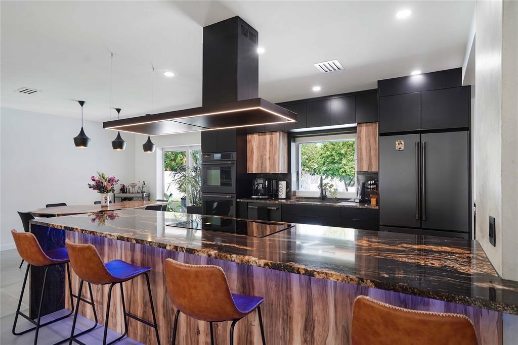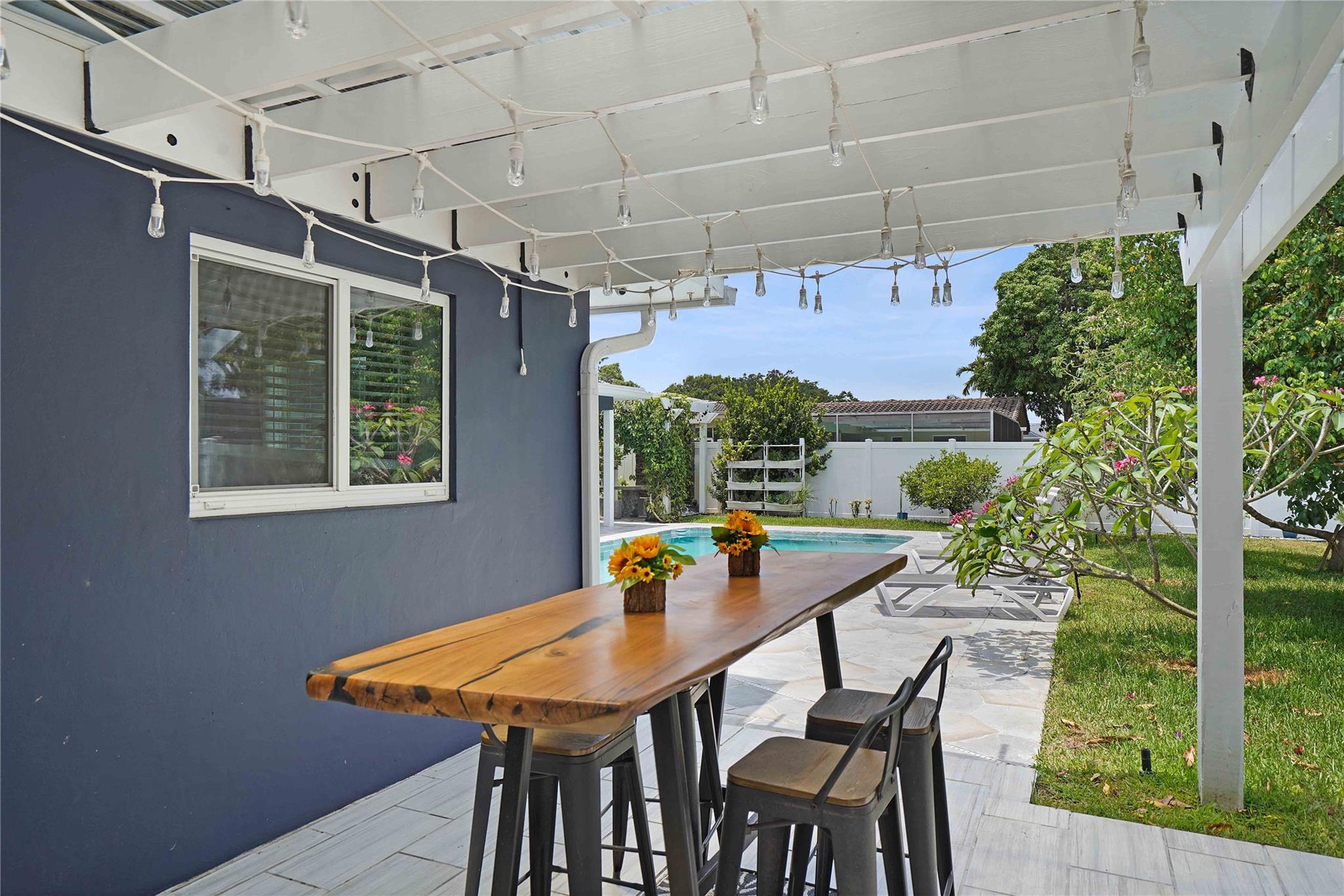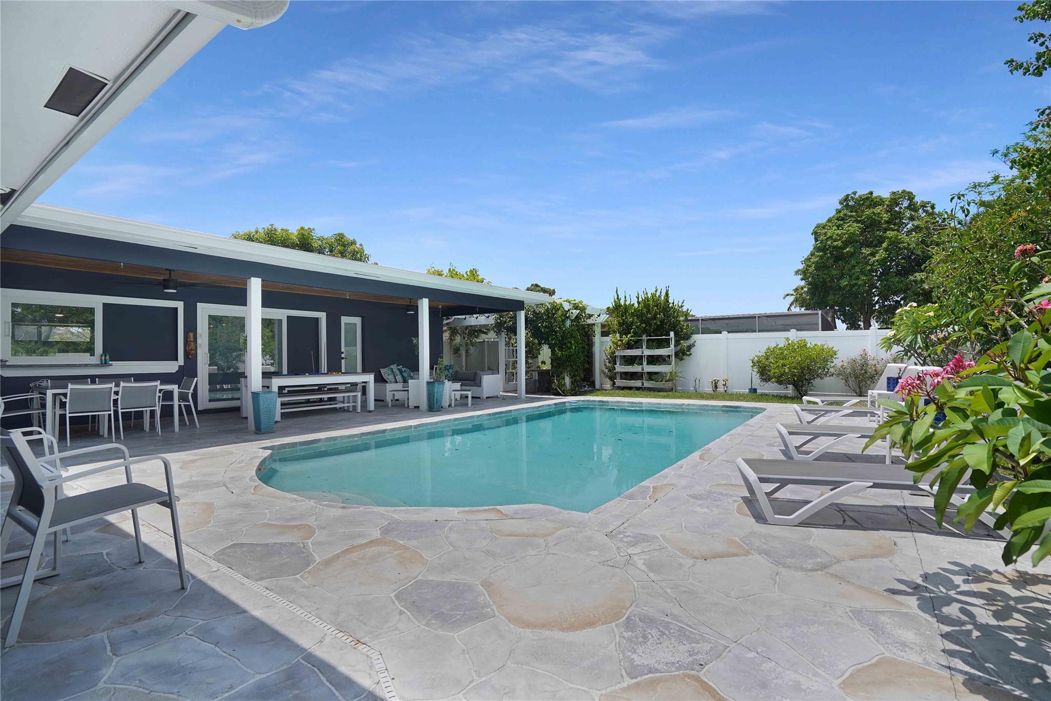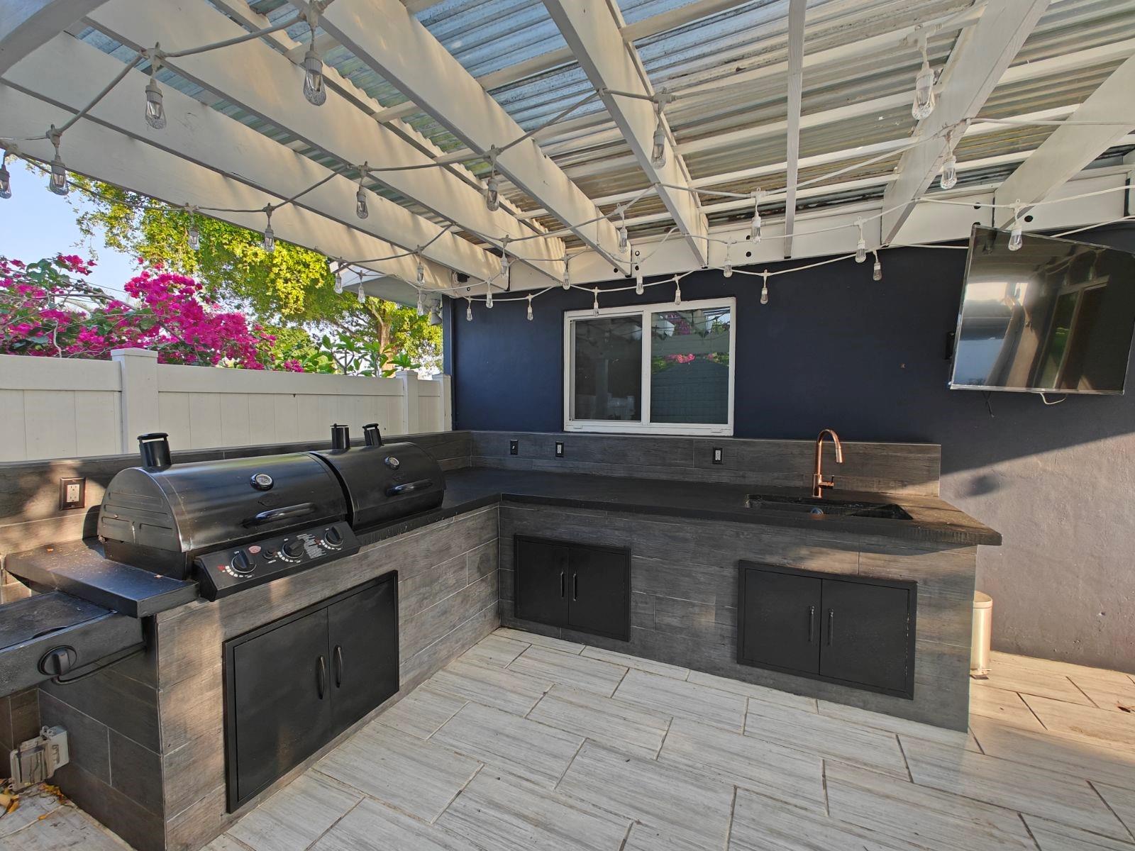Stunning 4/2 corner lot pool home that has been beautifully renovated & updated. The opened up kitchen features stunning granite counter tops & top of the line GE Cafe stainless appliances. Bathrooms have been beautifully done; the primary bath feels like a spa, with a glass enclosed gorgeous tub, shower area & rainfall shower. All underground plumbing was replaced 3 years ago. Impact windows & doors thru out. Tankless hot water heater. New a/c installed April 2024. New roof was done in June 2022. Two car garage. Stamped concrete driveway & pool deck. The backyard is fenced in & is a beautiful & private oasis, with an entertainment area, a heated pool, two custom pergolas, mature fruit trees, a vegetable garden area, water feature, a storage shed, & a separate area with an outdoor kitchen